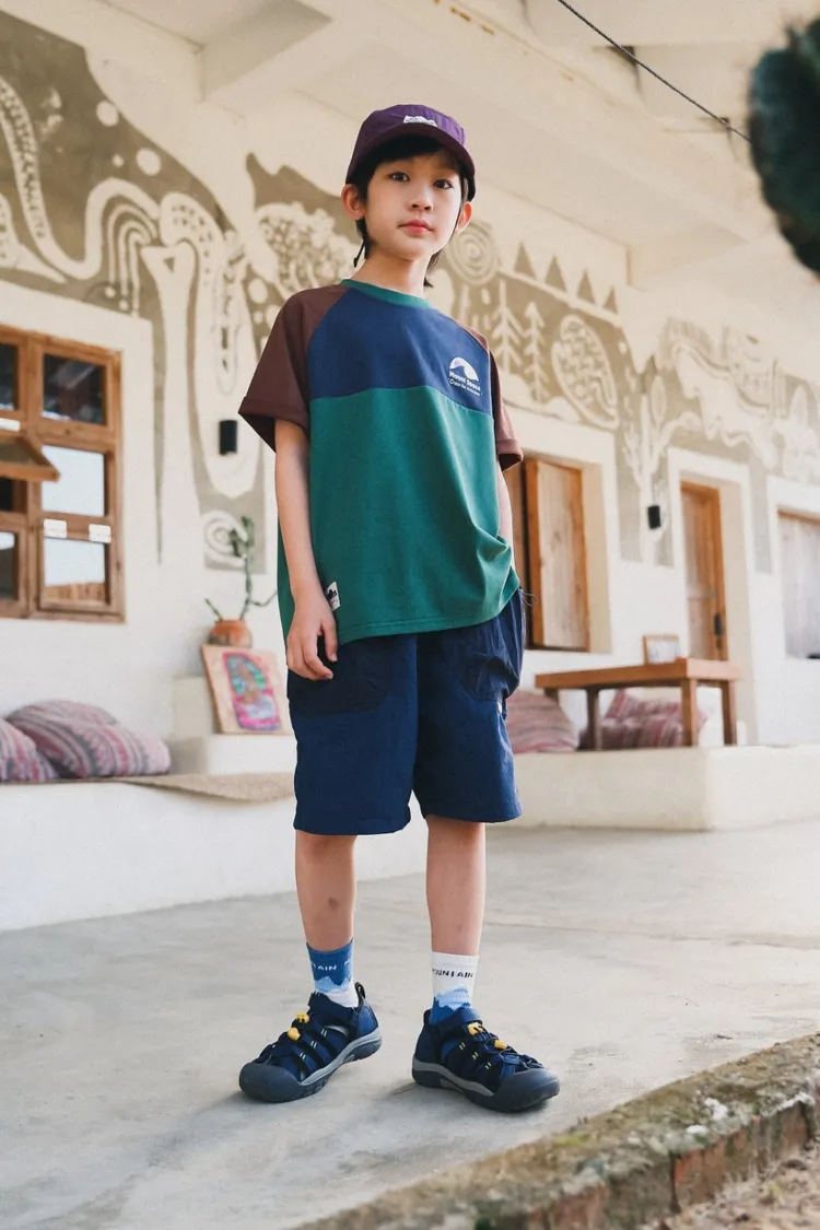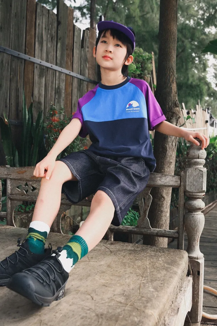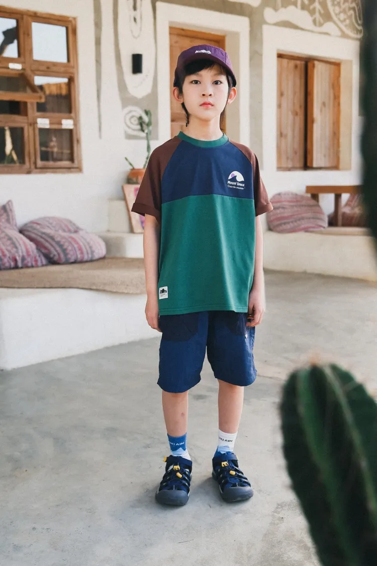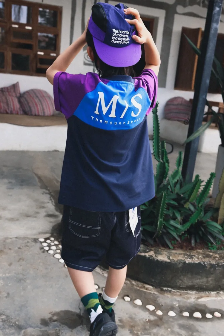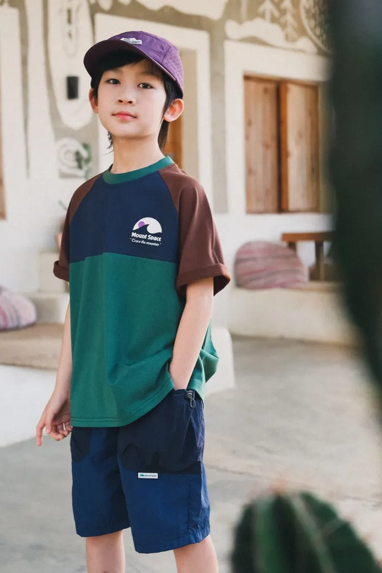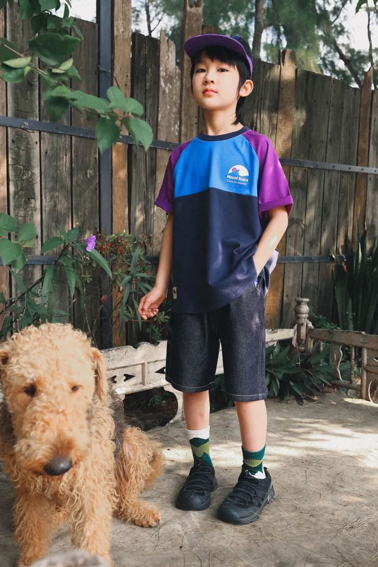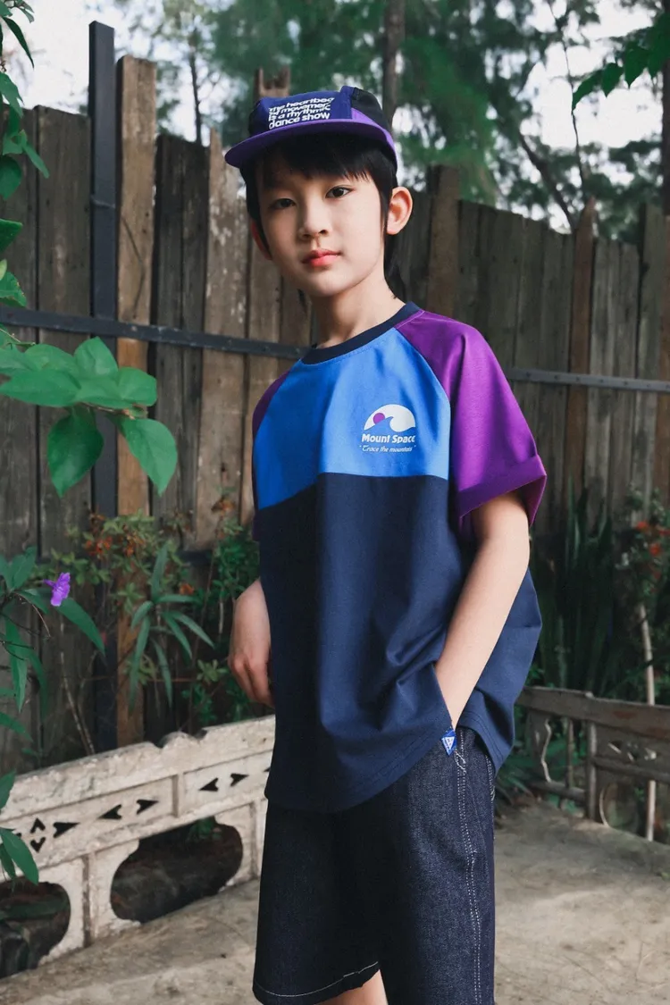撞色插肩袖全棉字母TEE