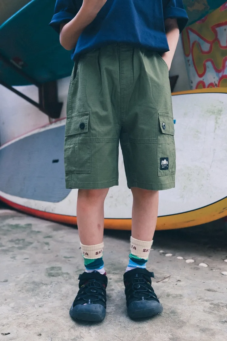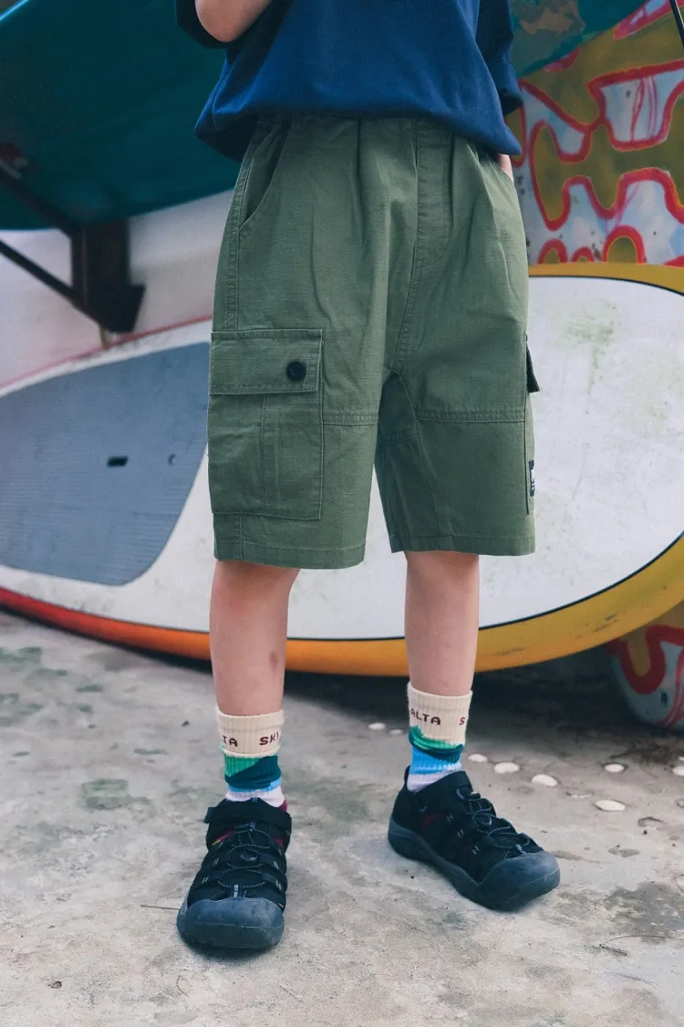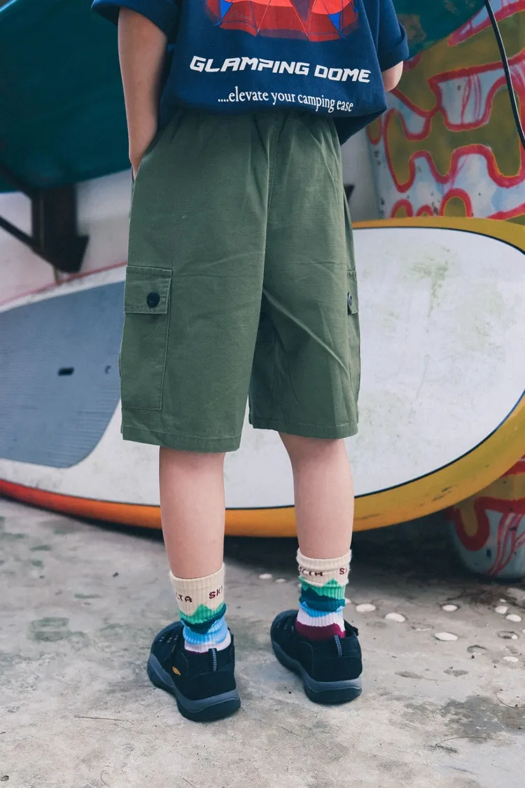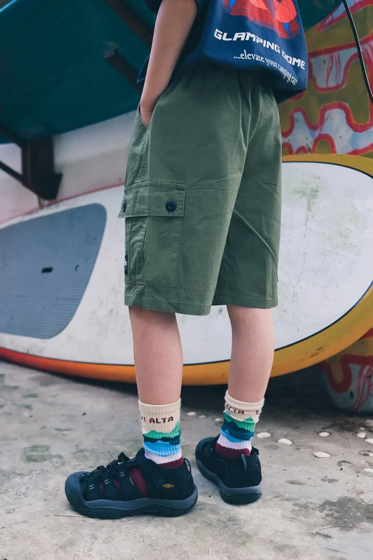 戶外風貼袋水洗棉工裝五分褲