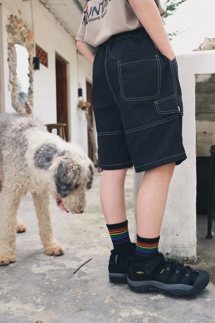 明線涼感工裝速乾五分褲