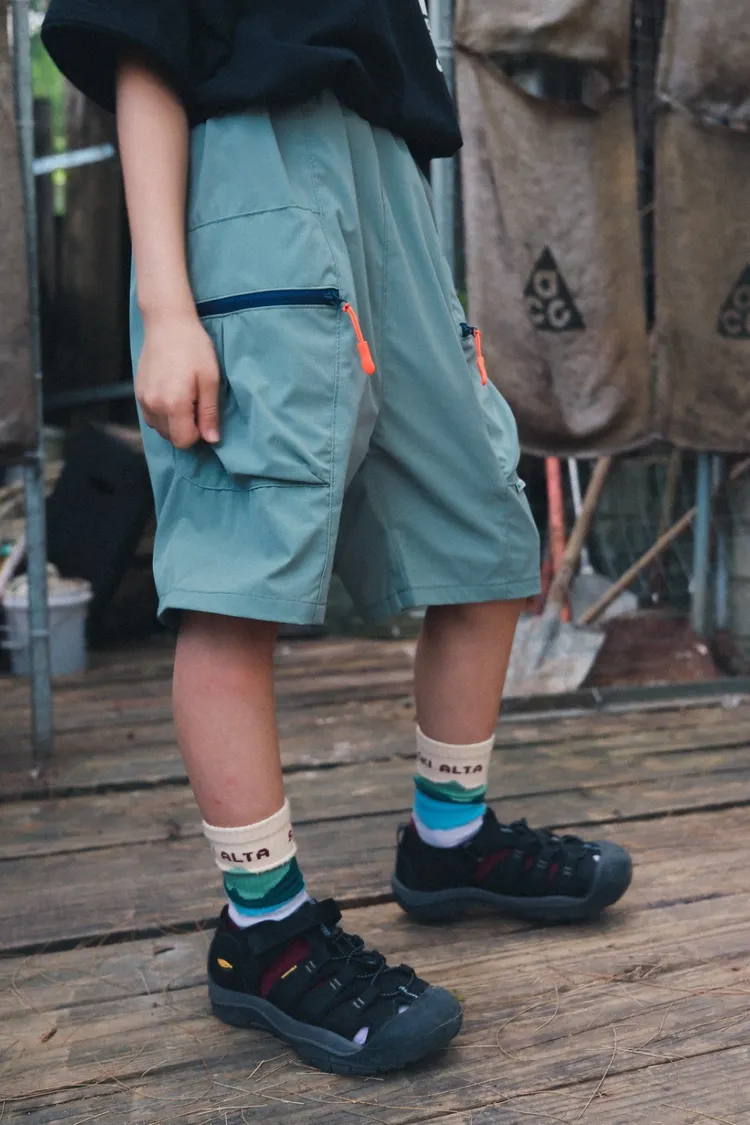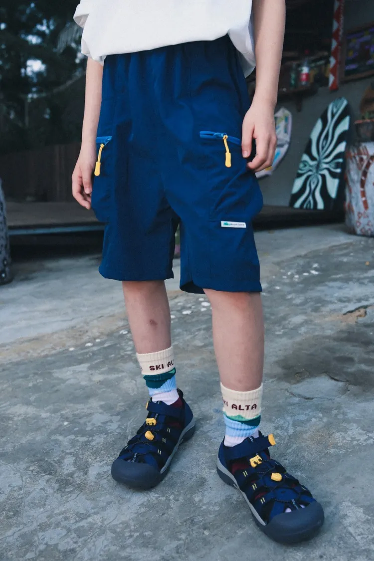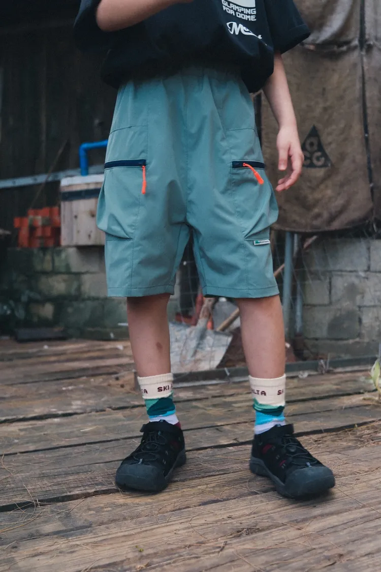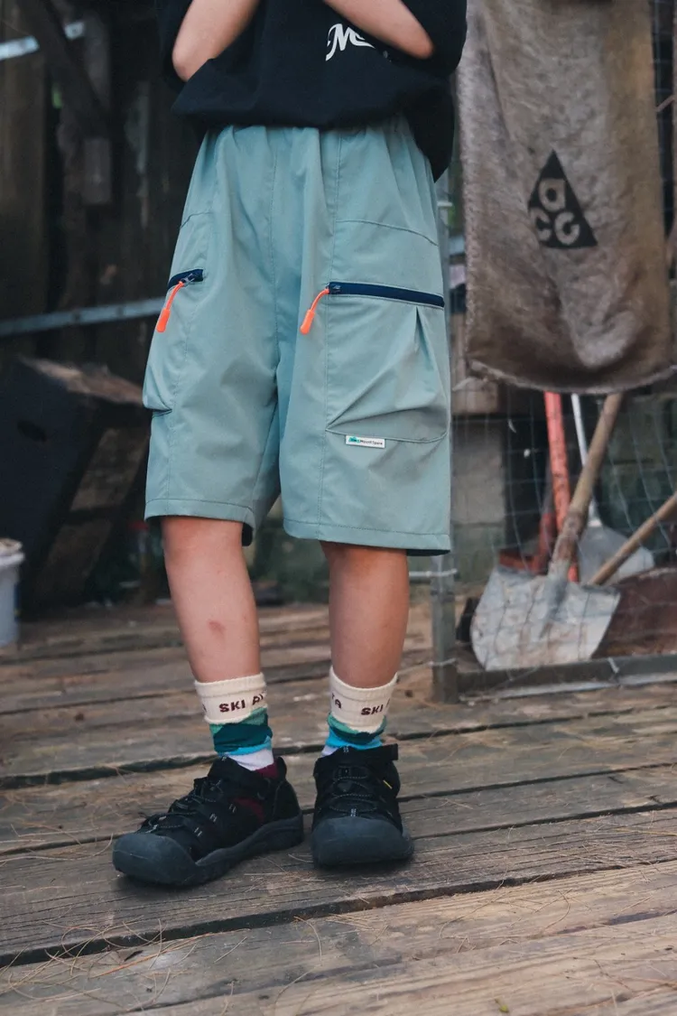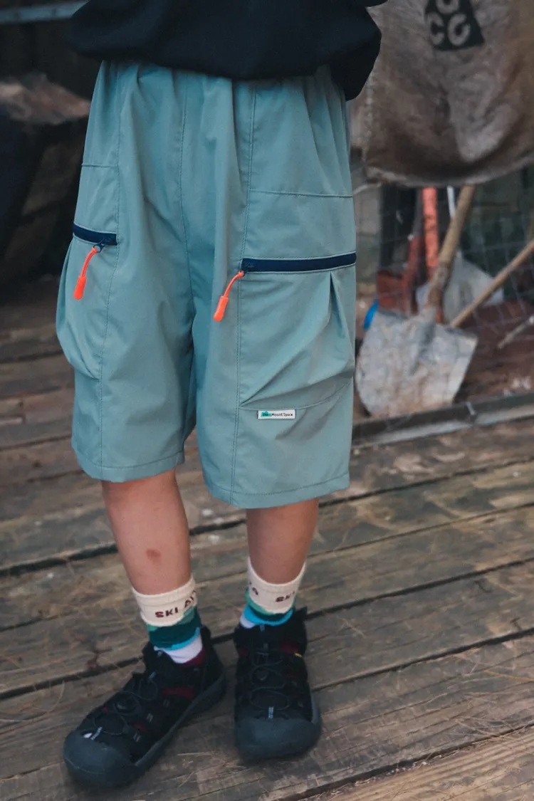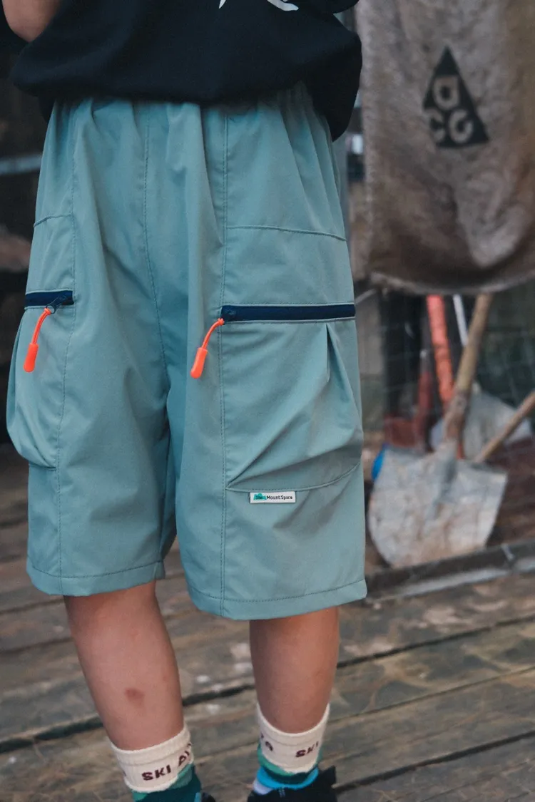 戶外風撞色拉鍊速乾工裝短褲
