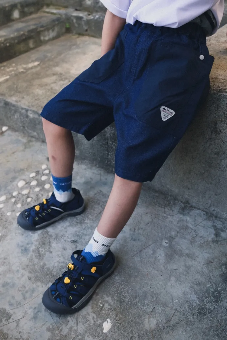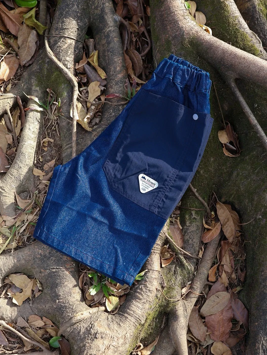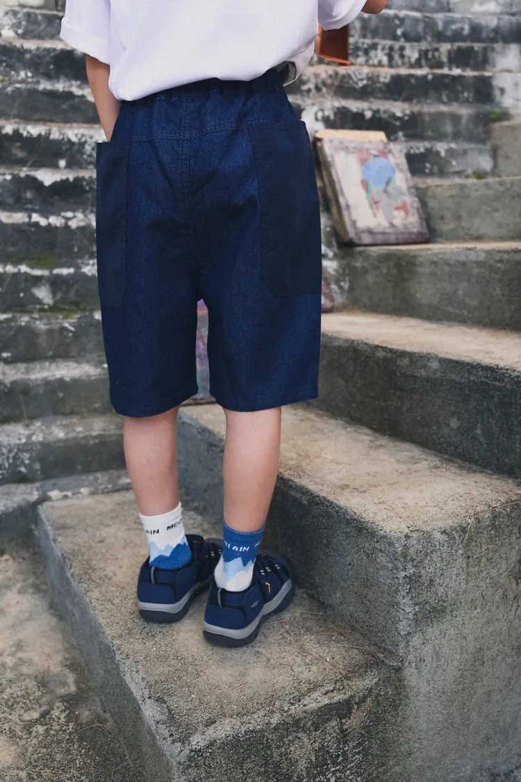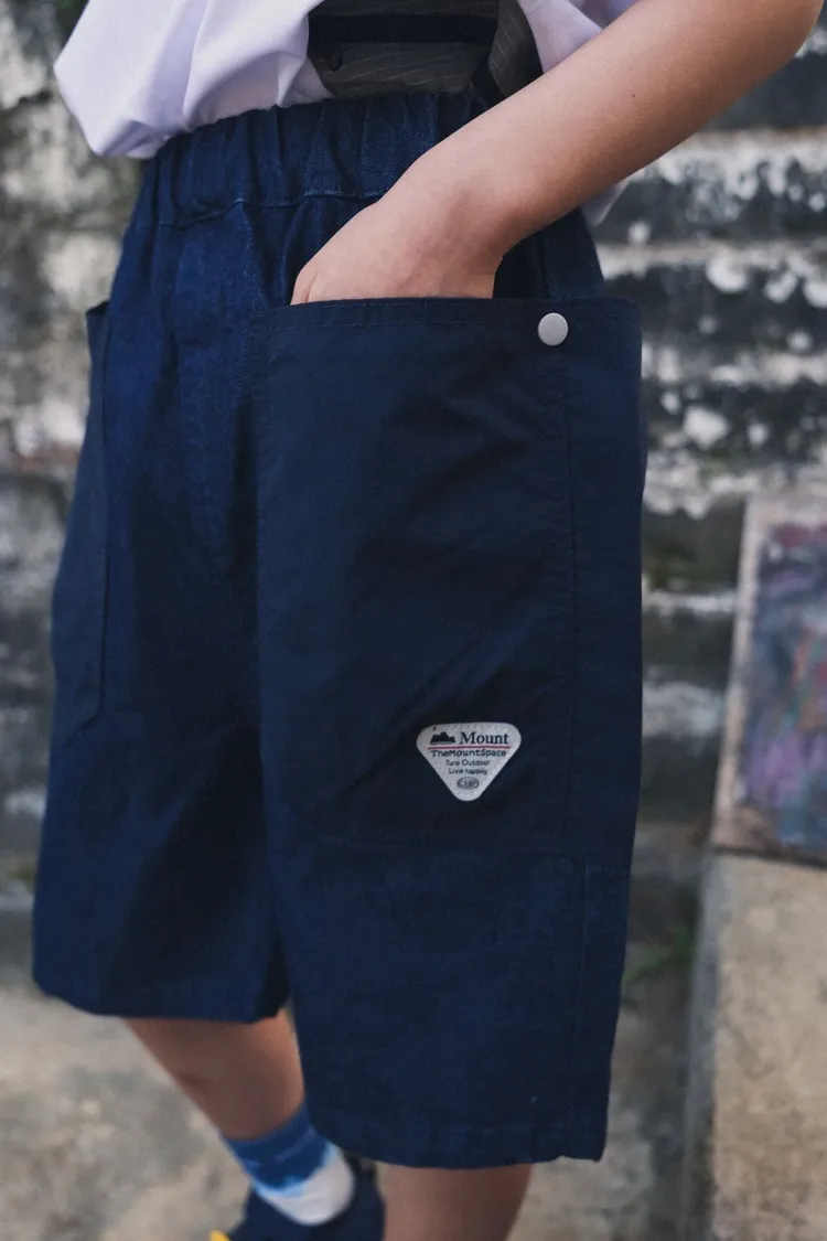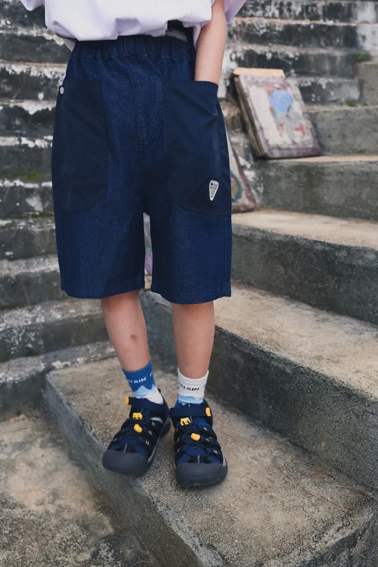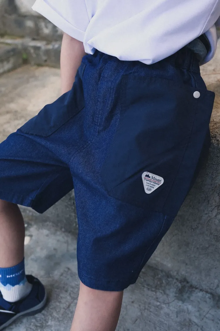 三角標復古拼接軟牛仔短褲