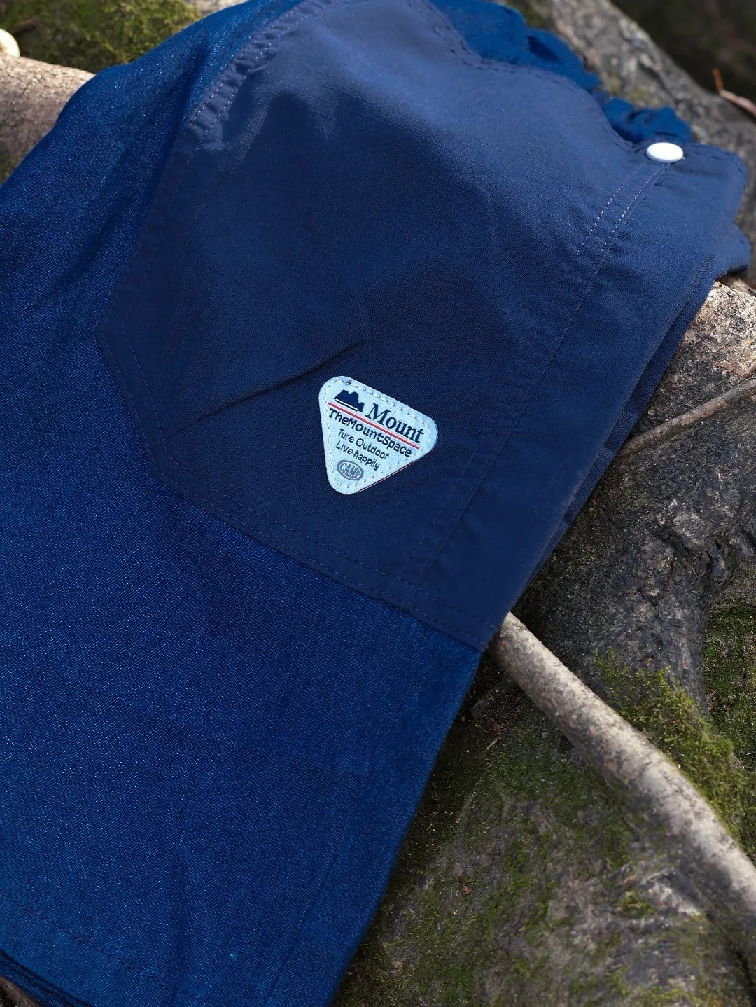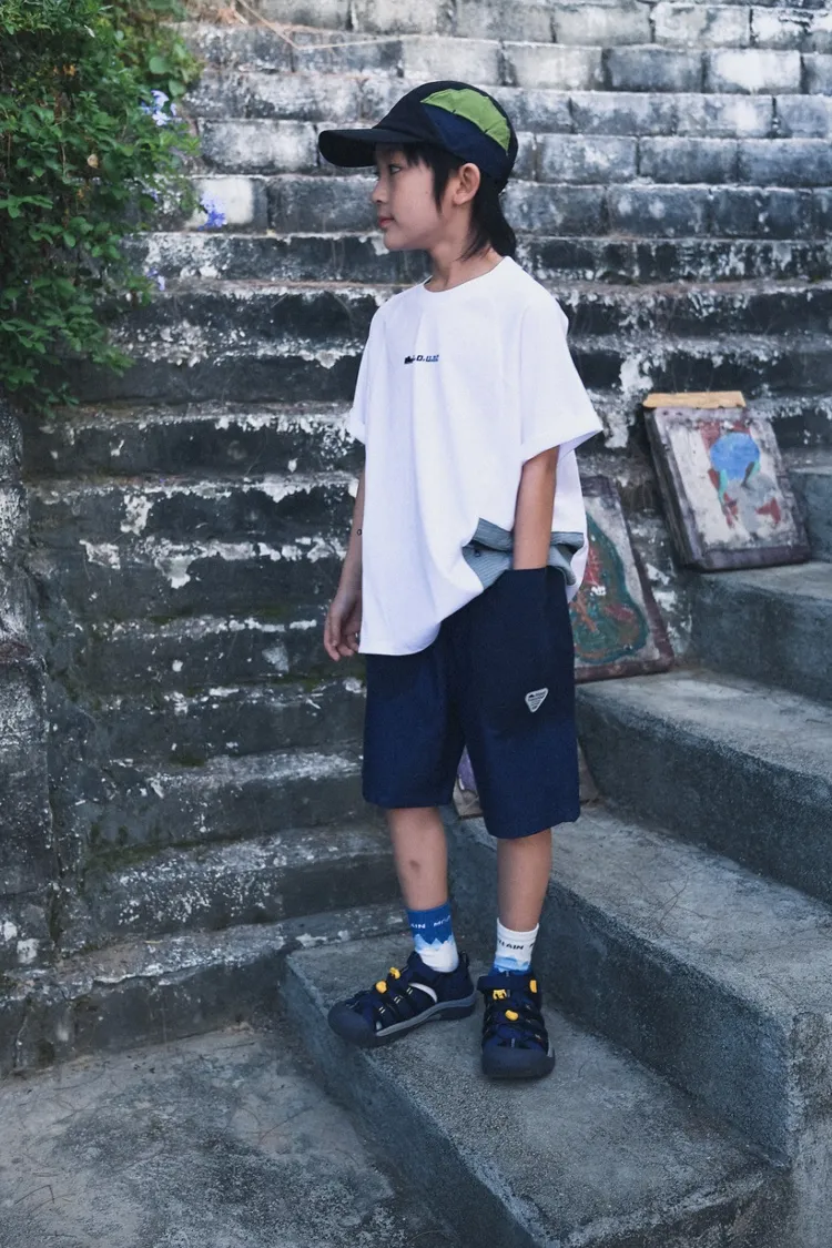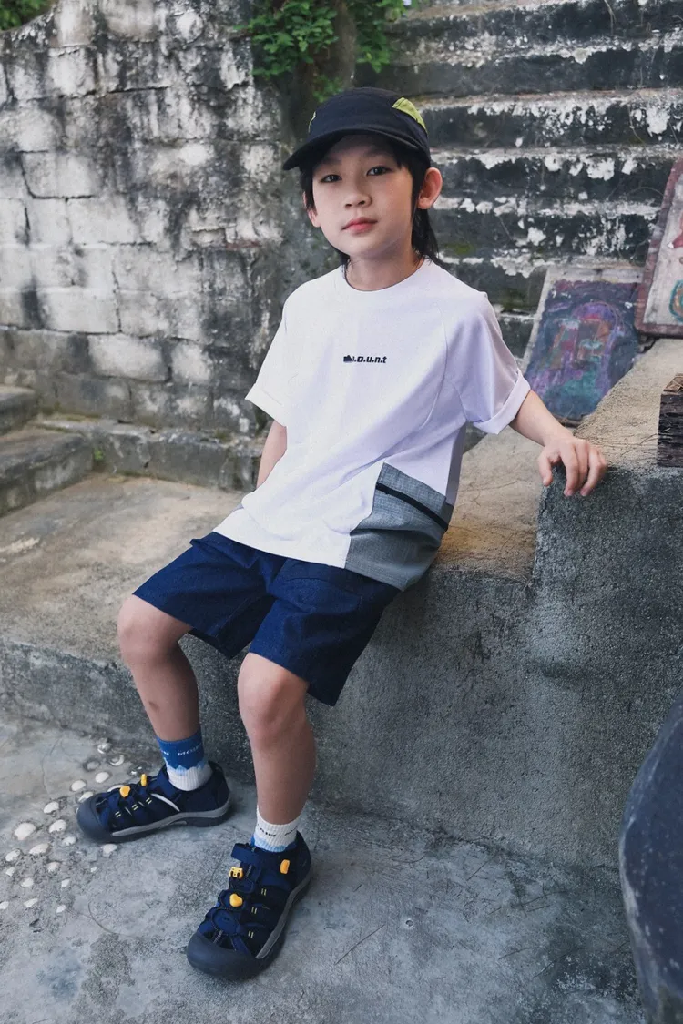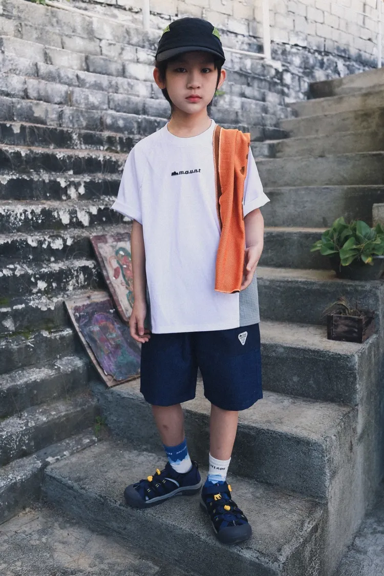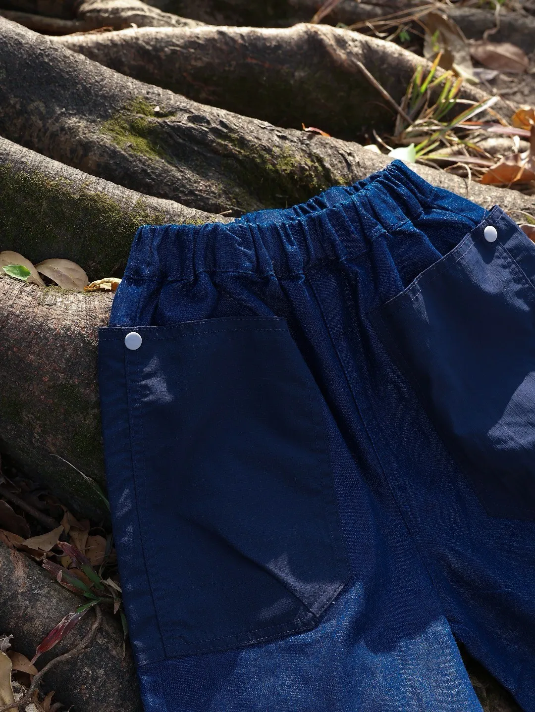 三角標復古拼接軟牛仔短褲