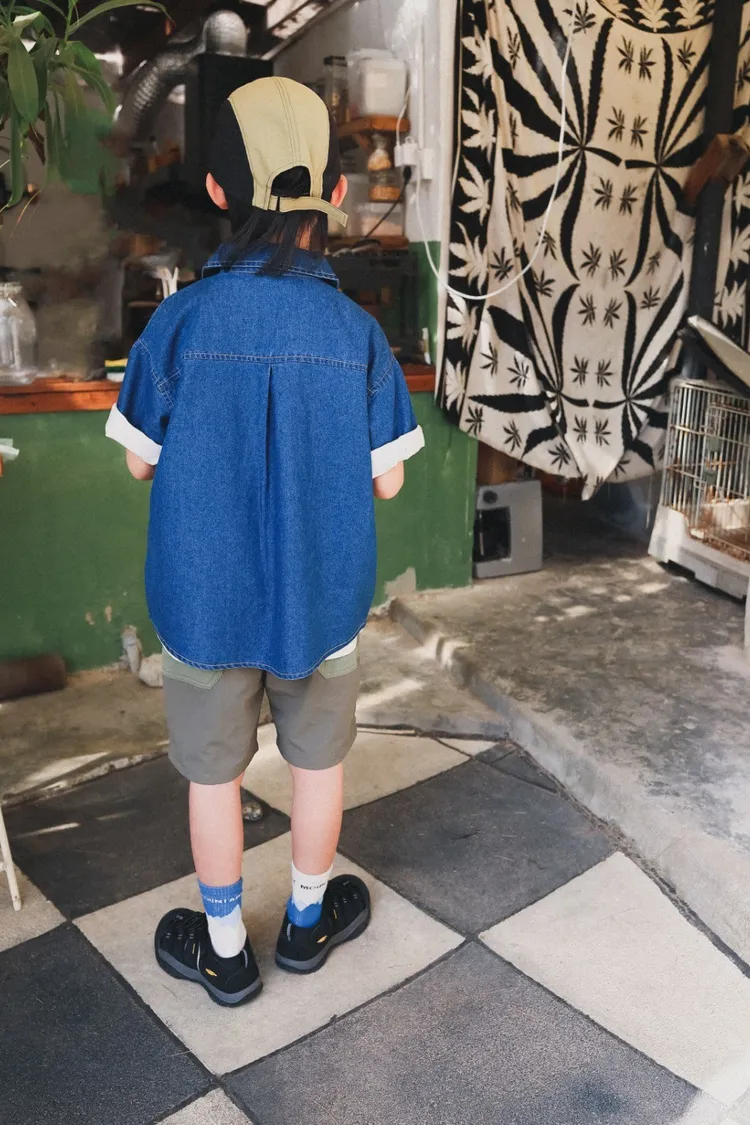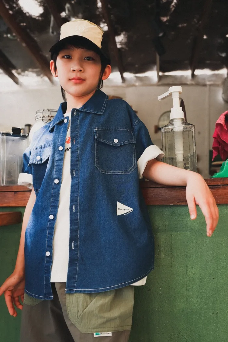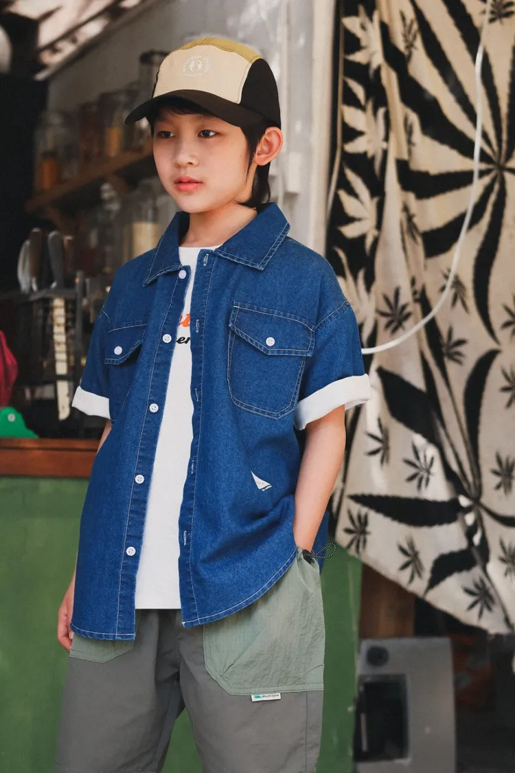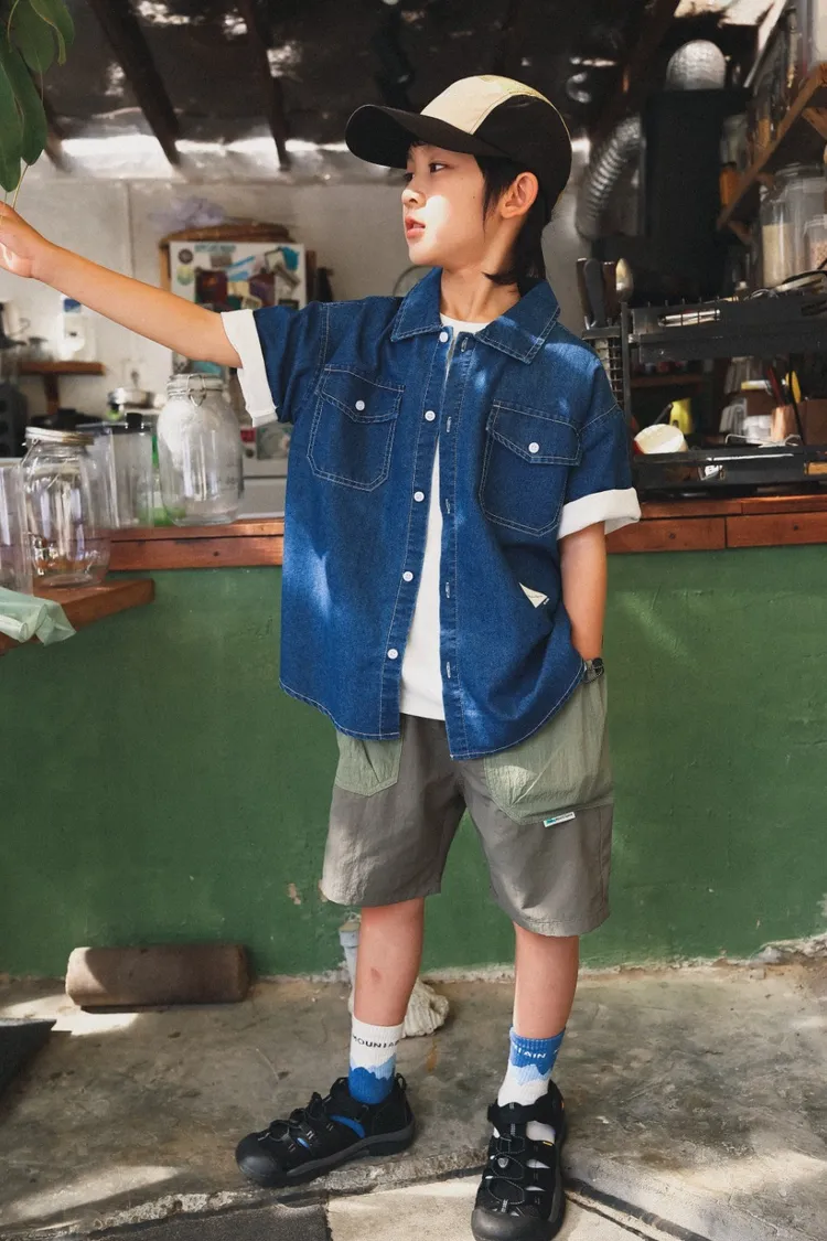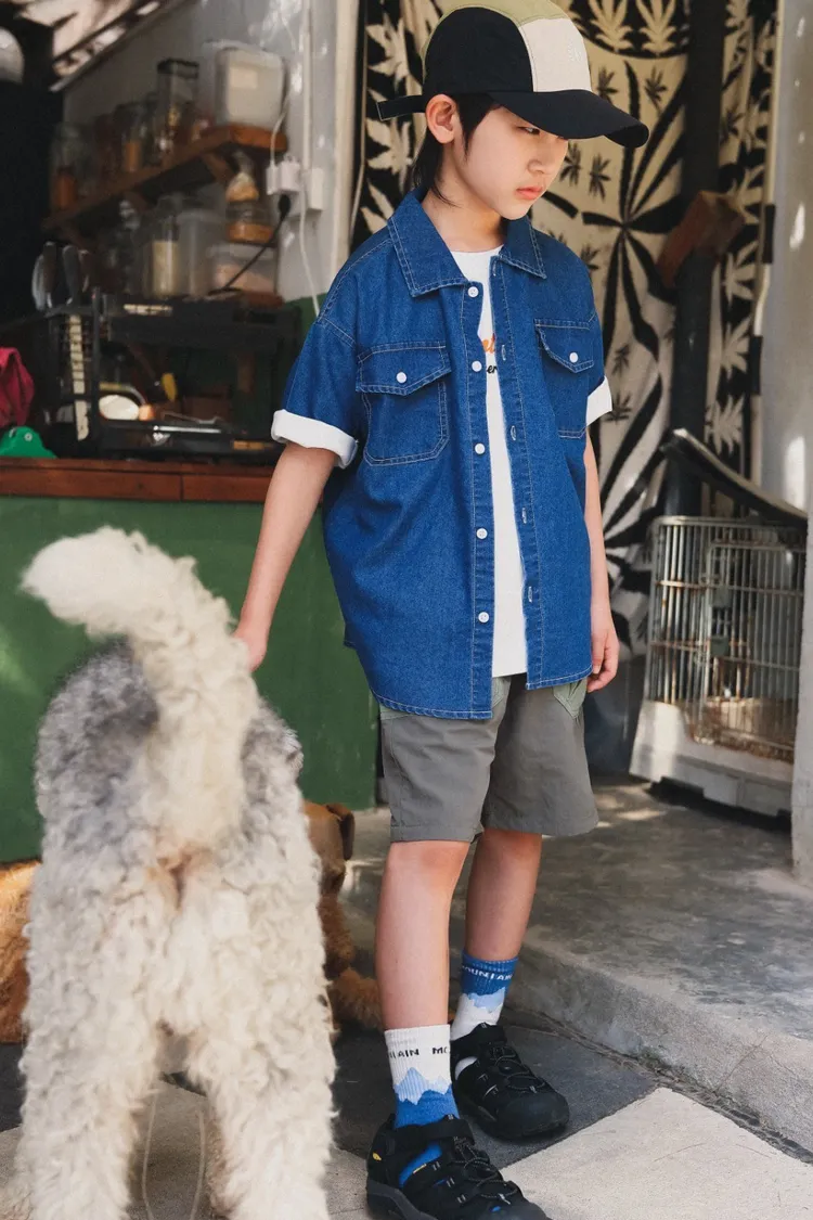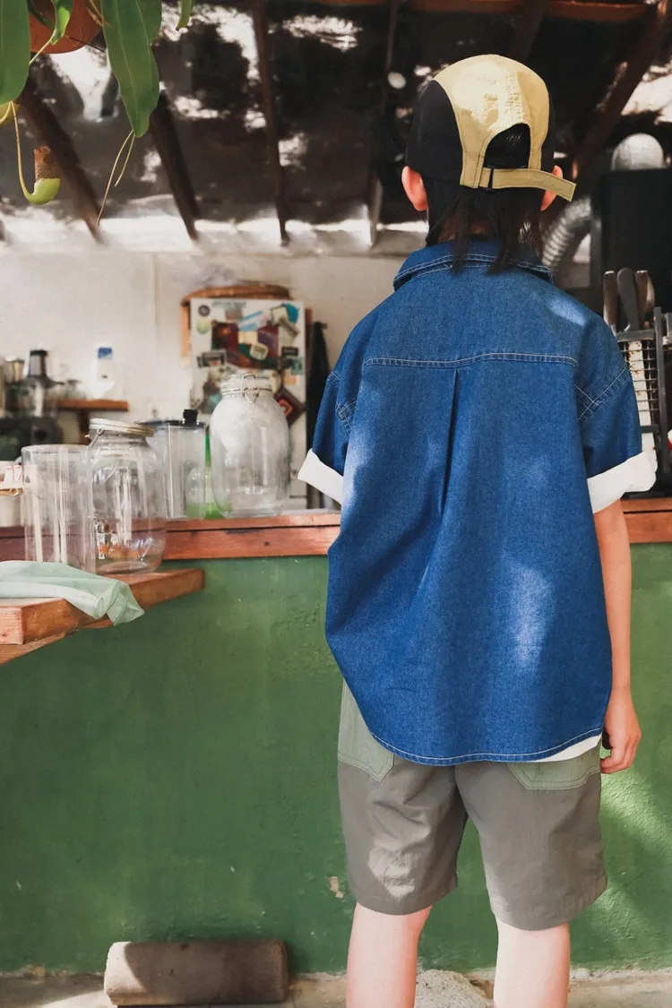 復古水洗棉工裝口袋牛仔襯衫