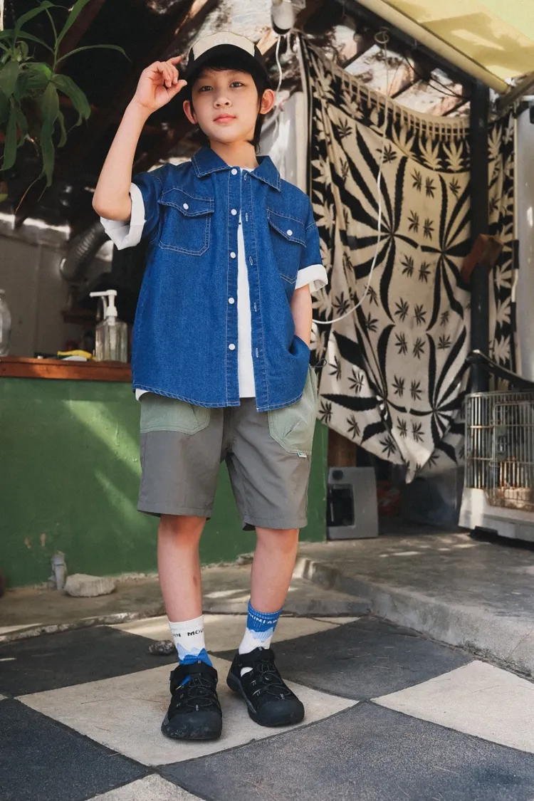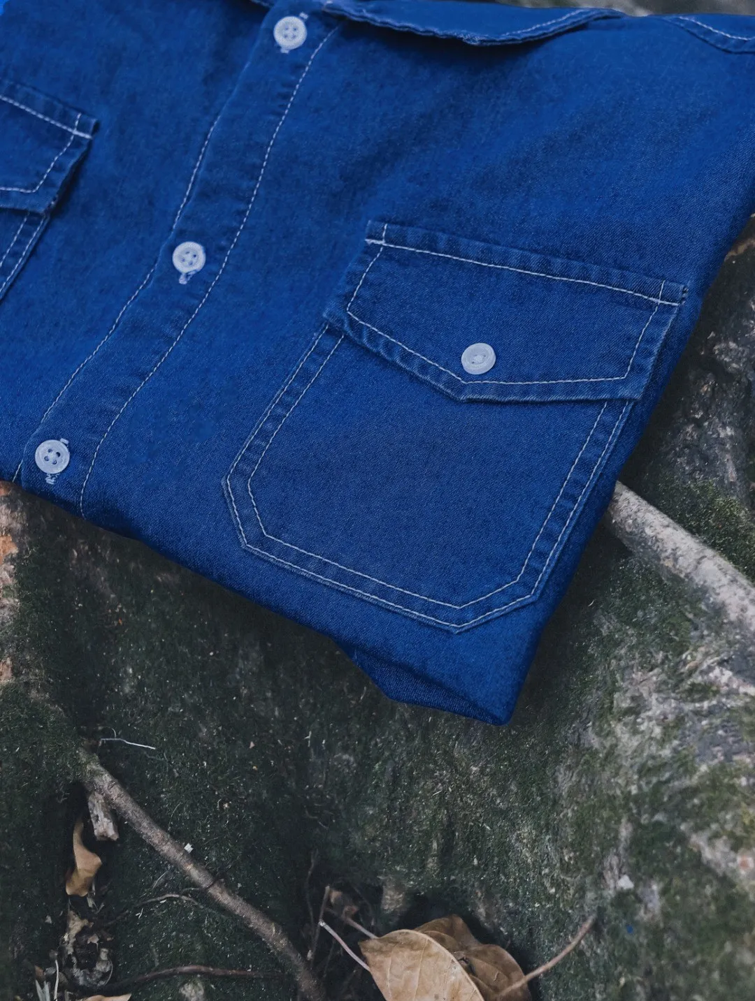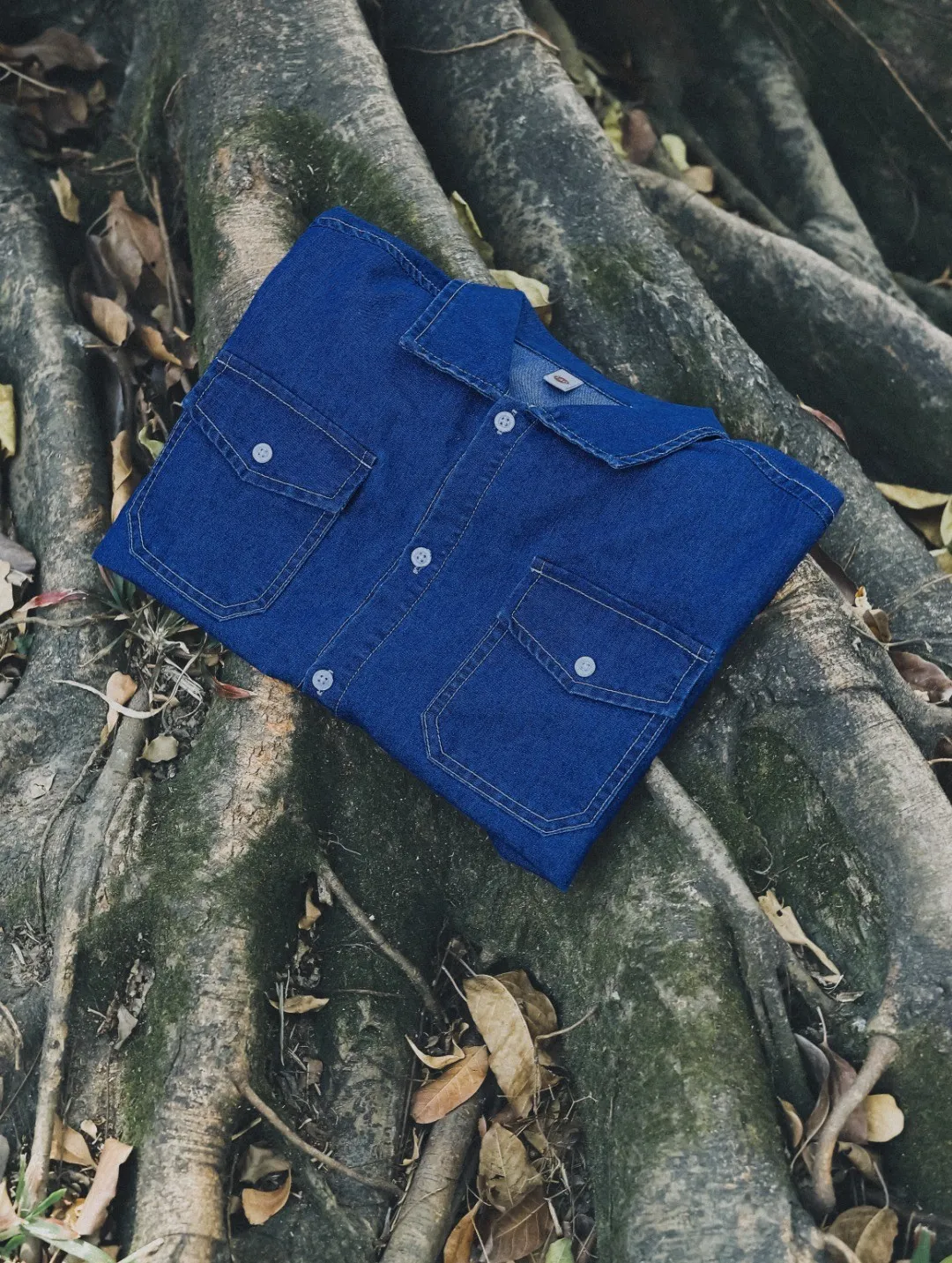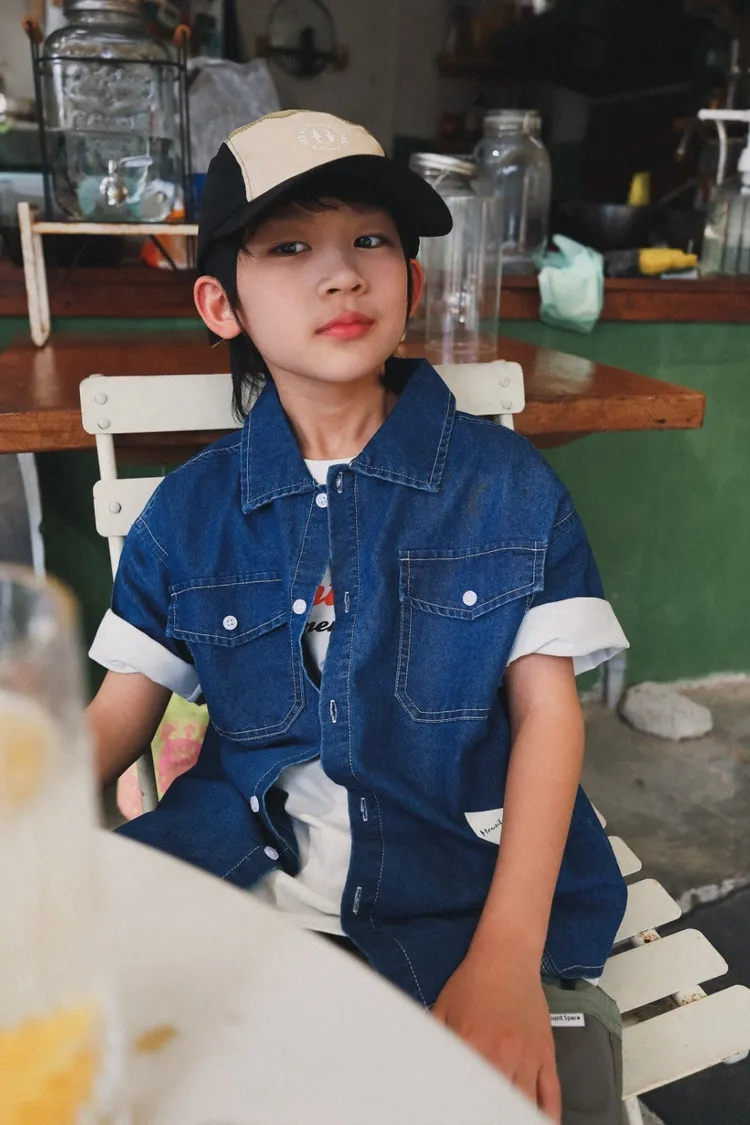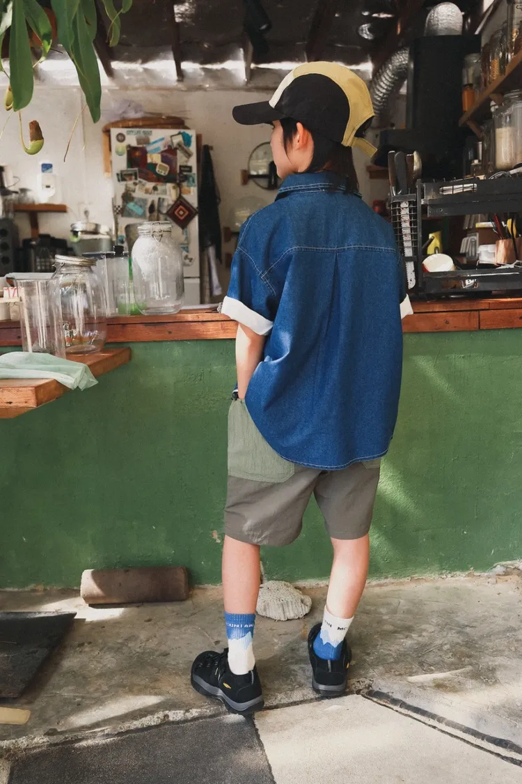 復古水洗棉工裝口袋牛仔襯衫