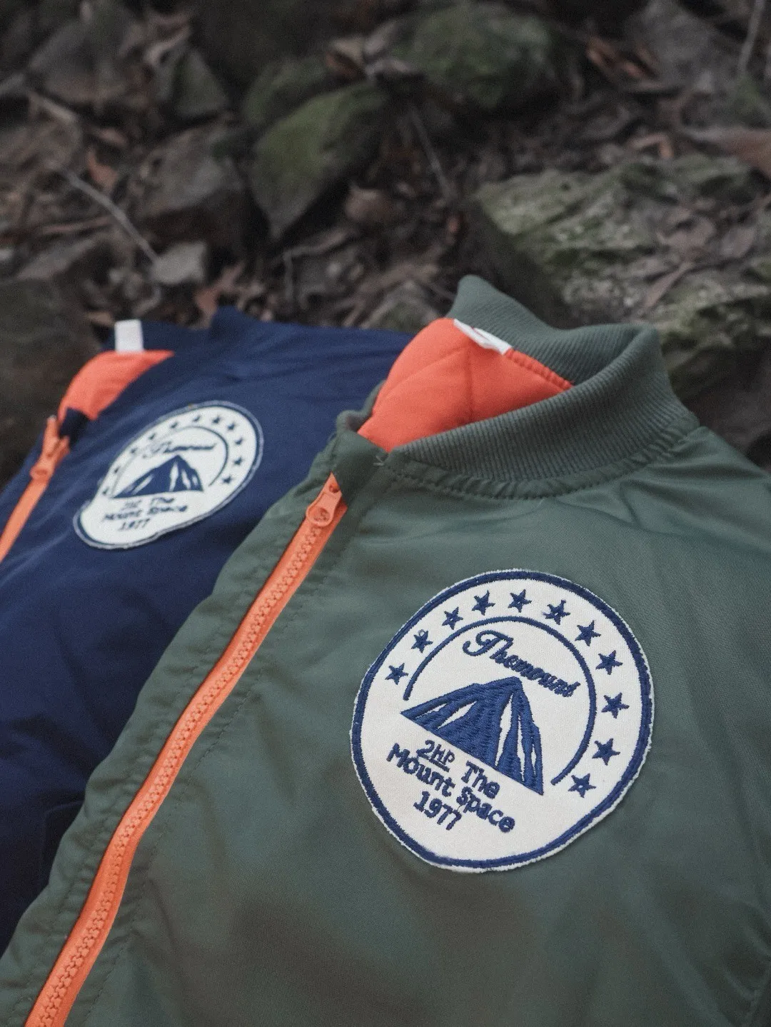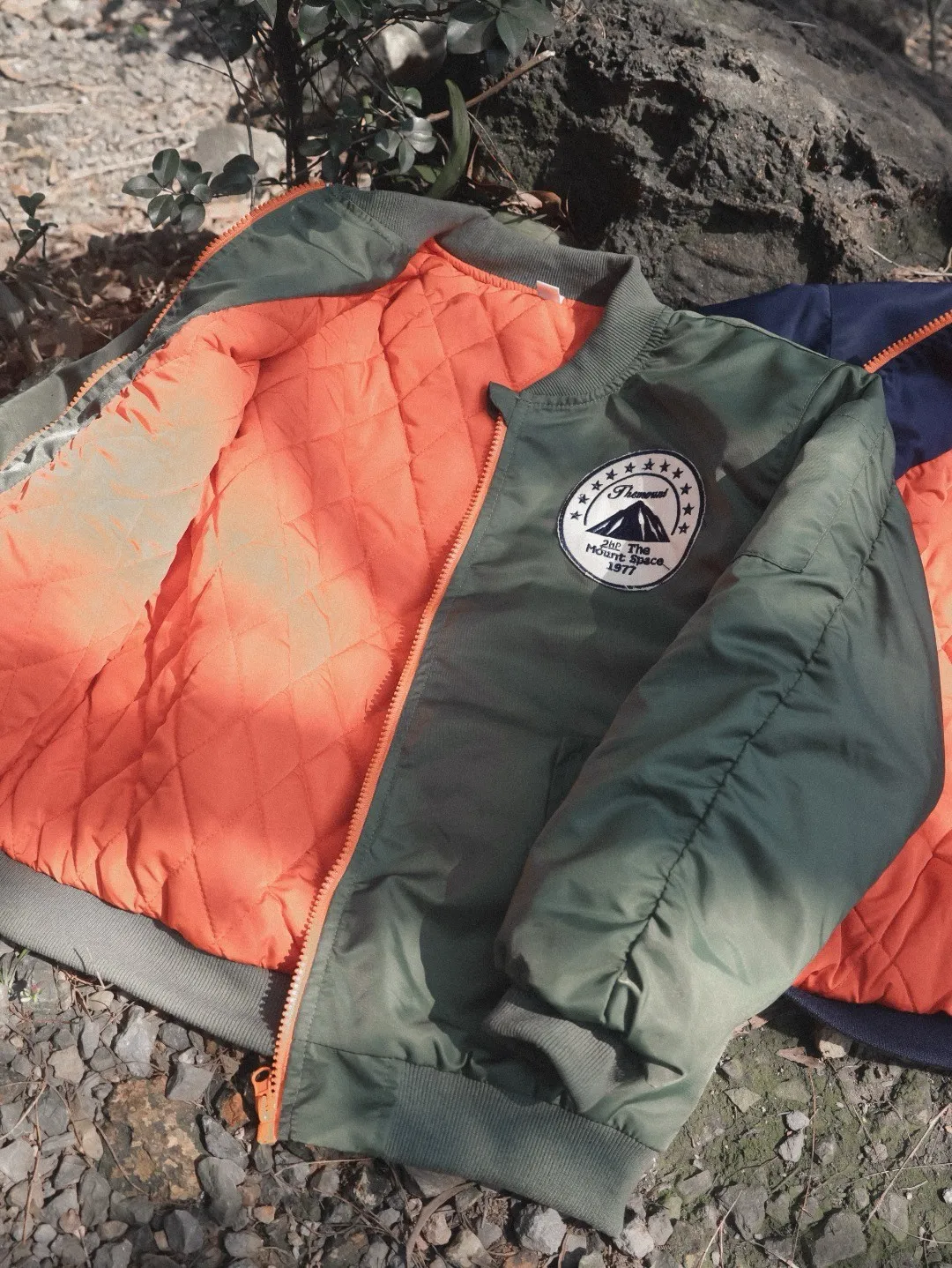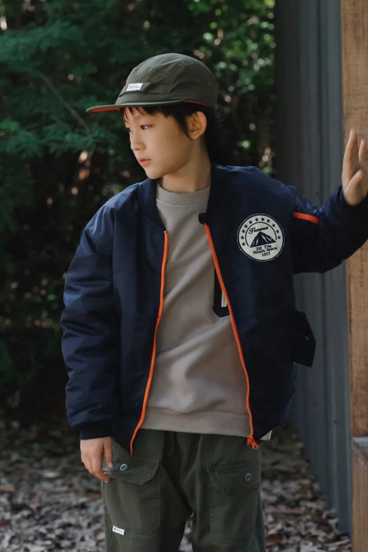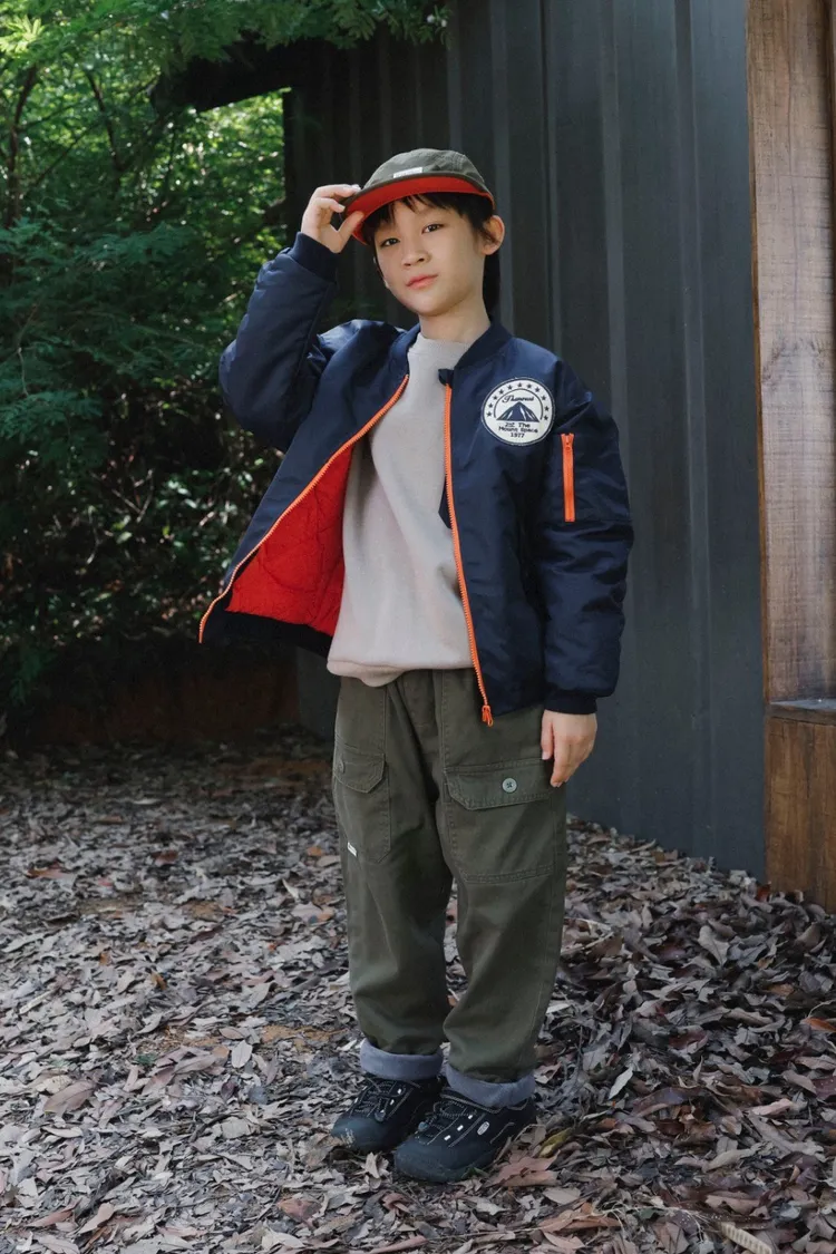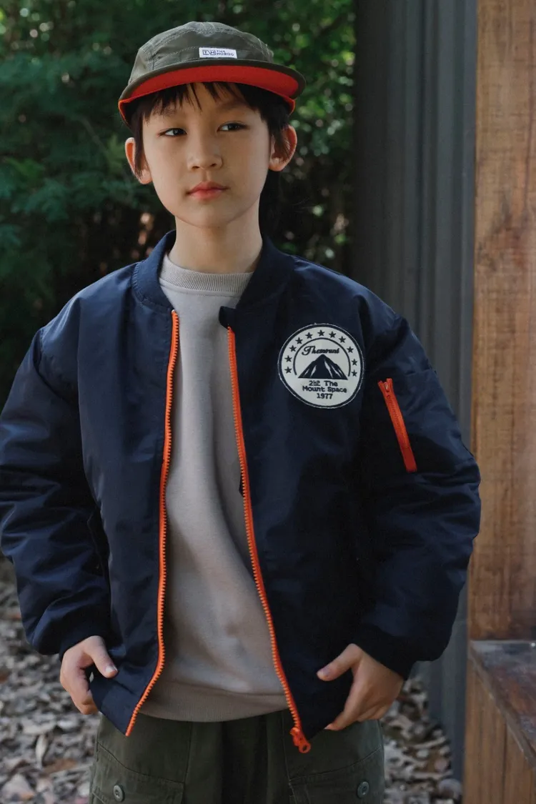 山系撞色拉鍊保暖夾棉外套