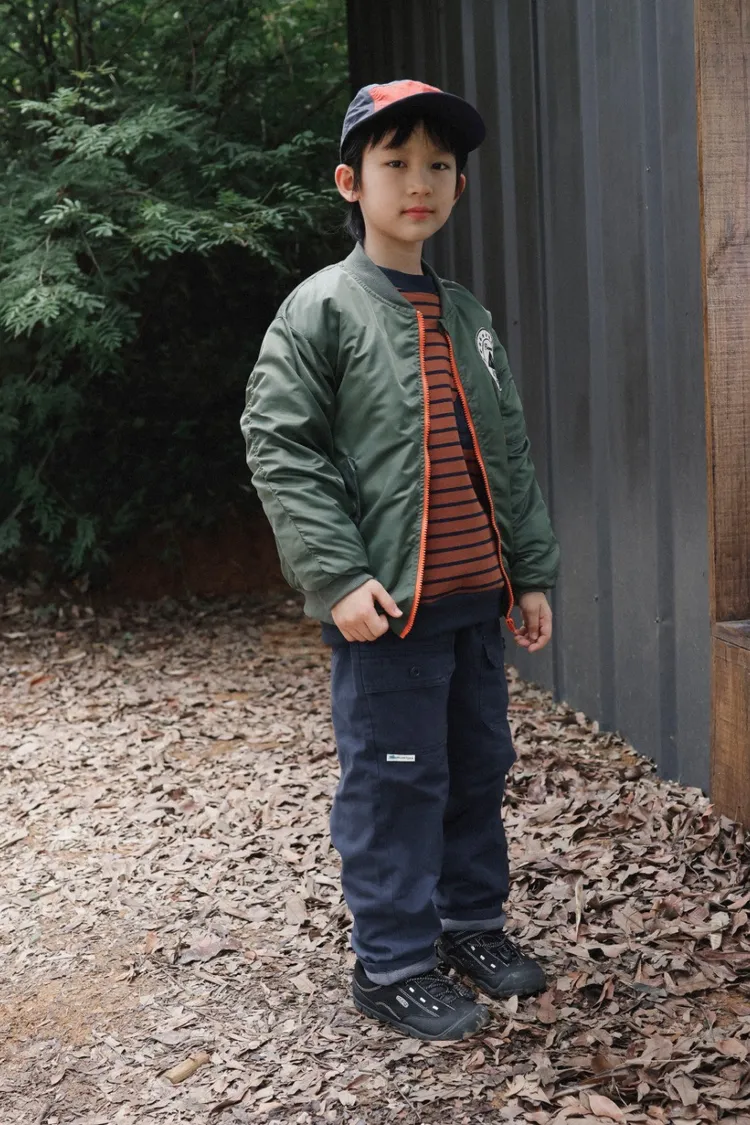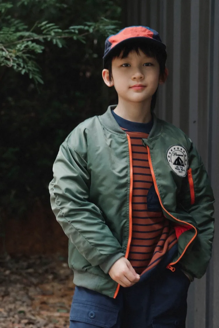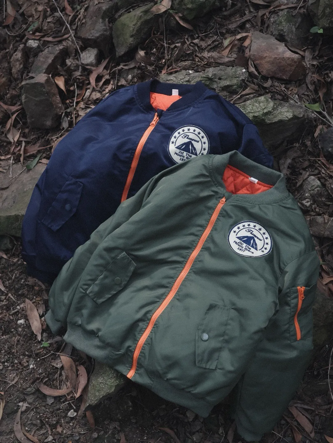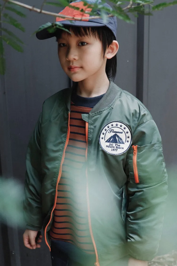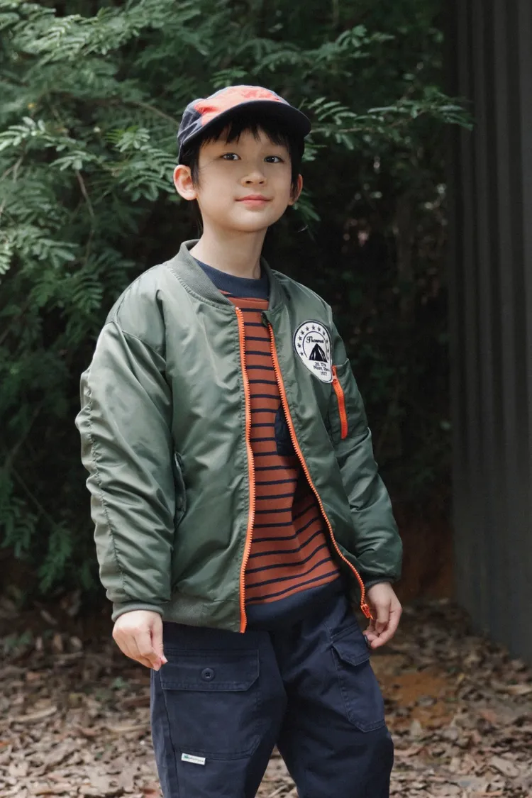 山系撞色拉鍊保暖夾棉外套
