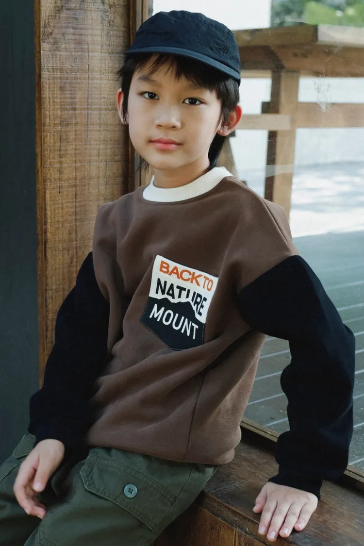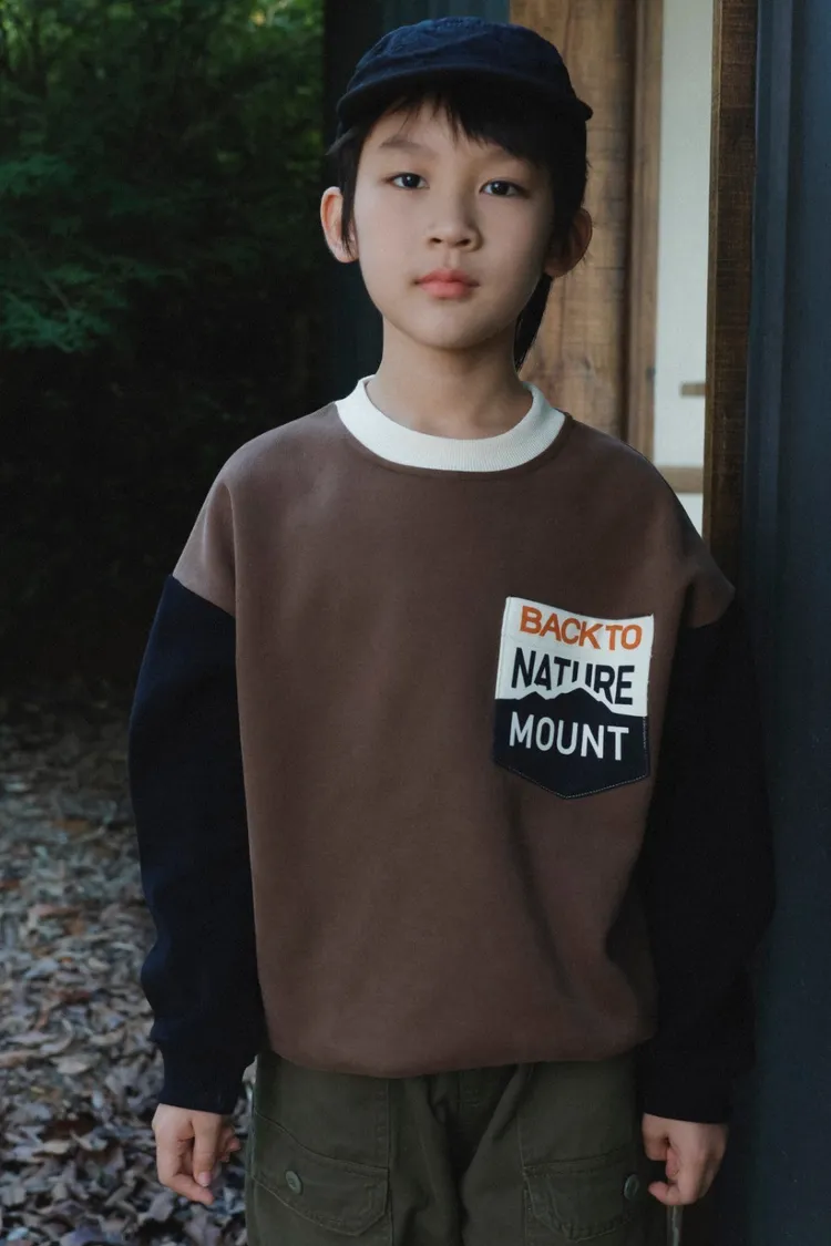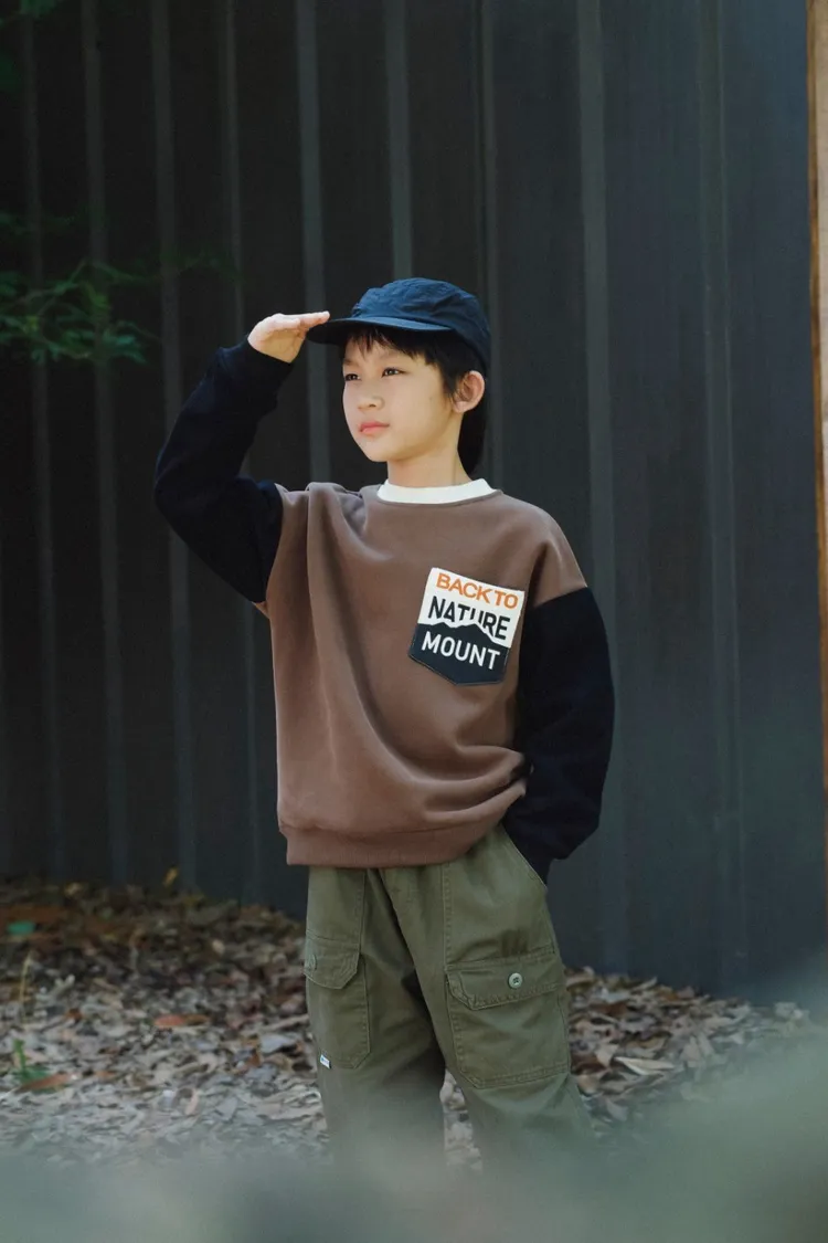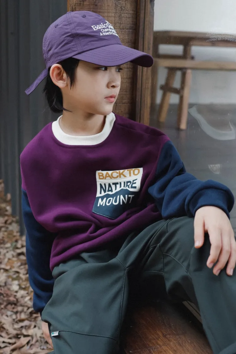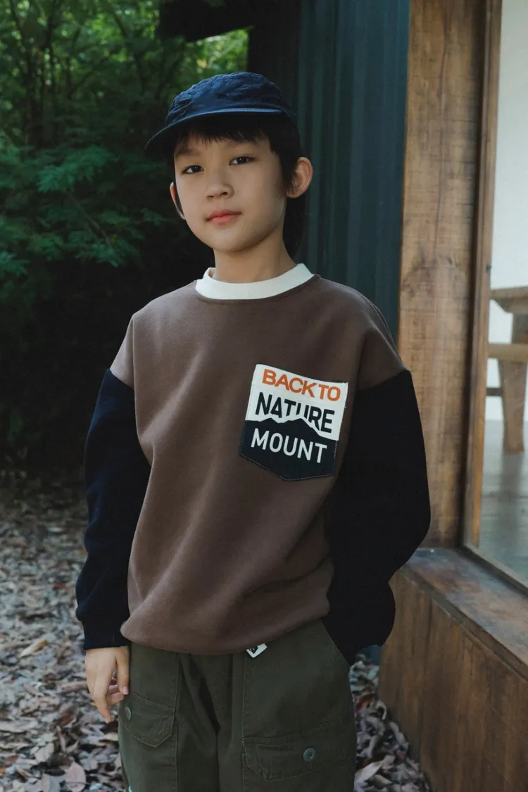 撞色拼接字母加絨大學TEE