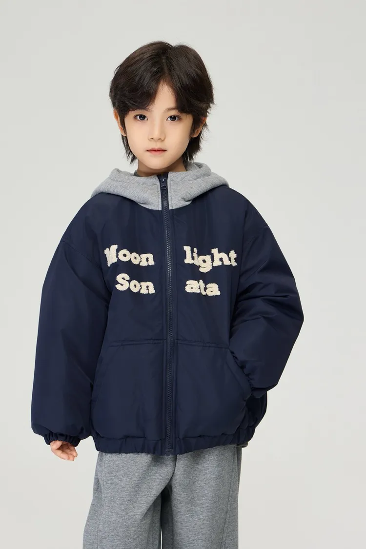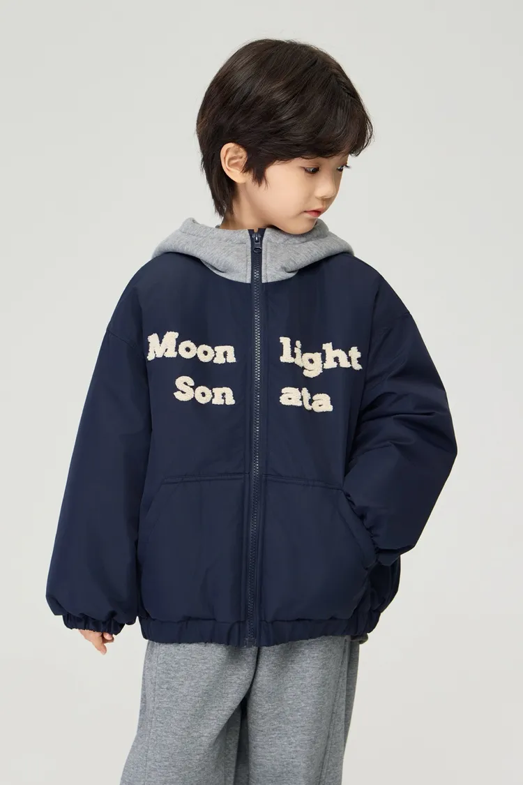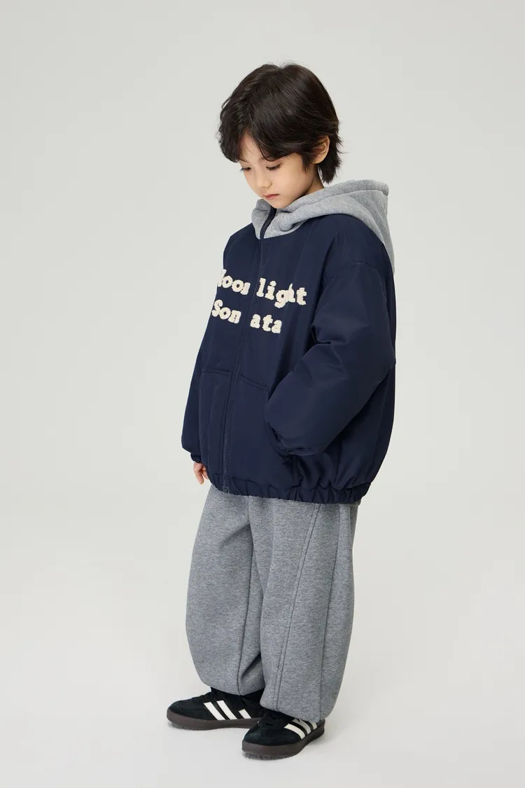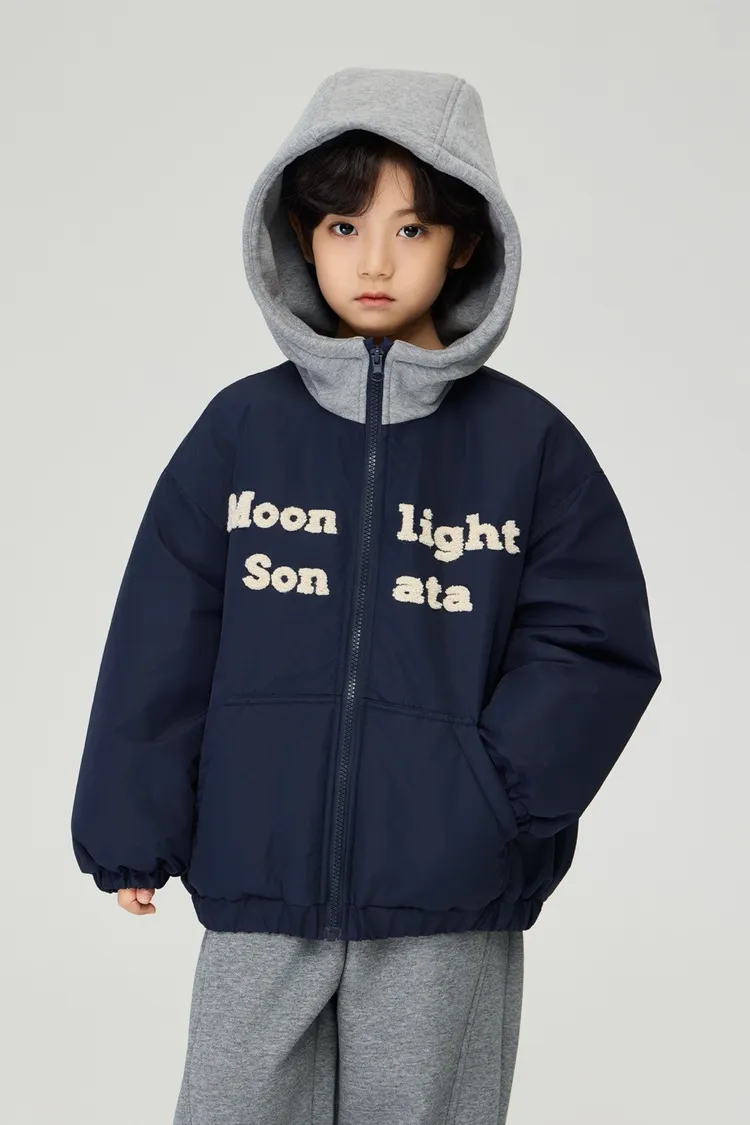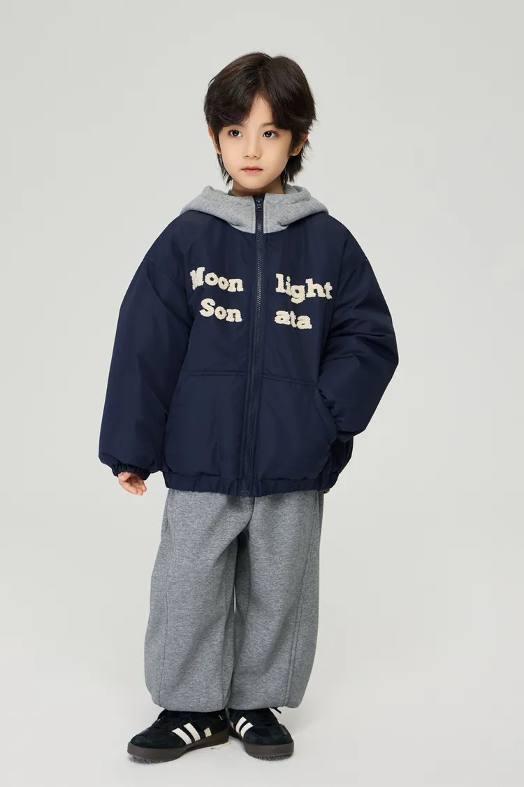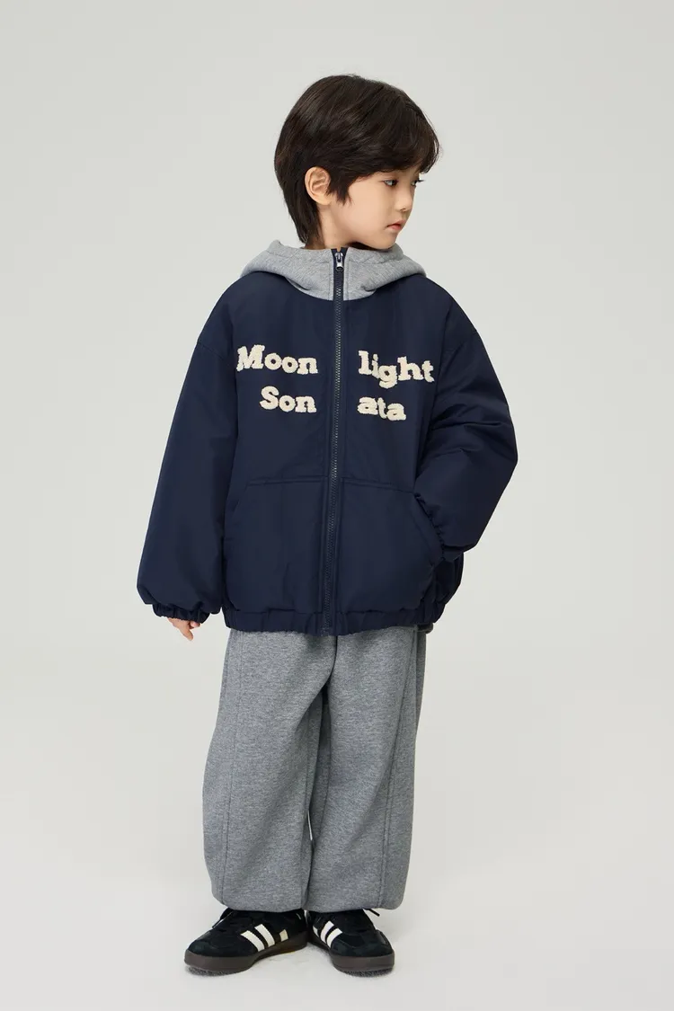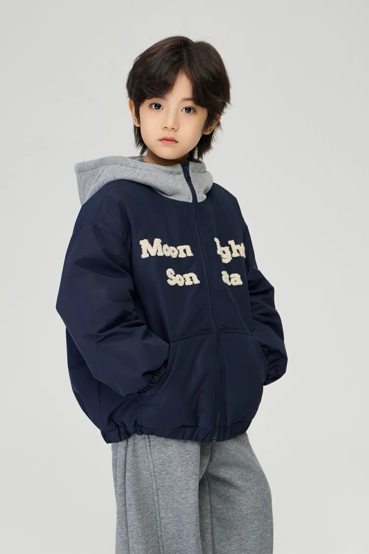 重工字母刺繡夾棉假兩件外套