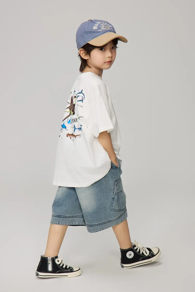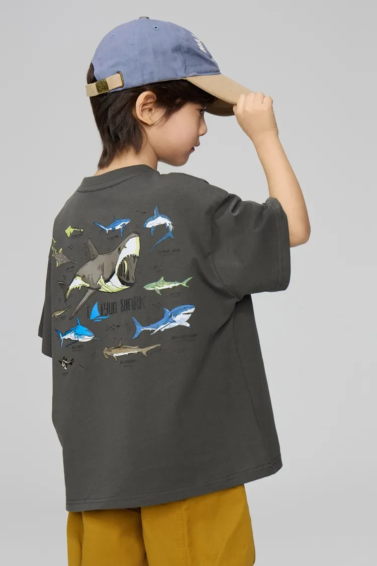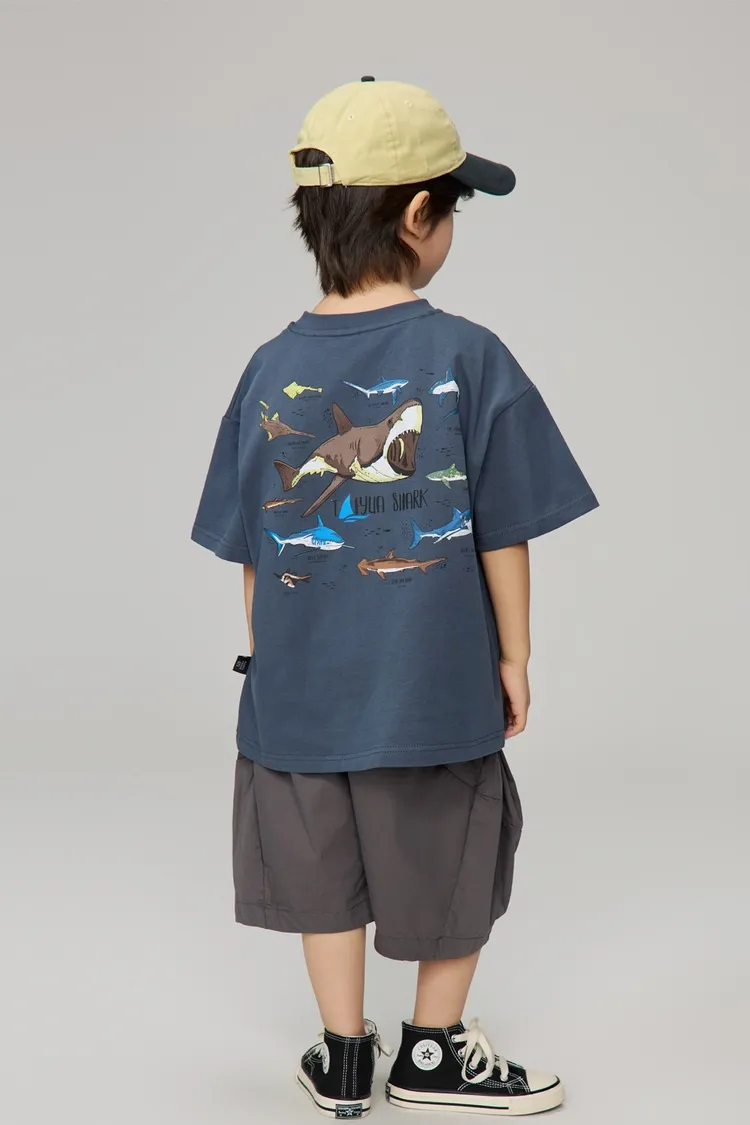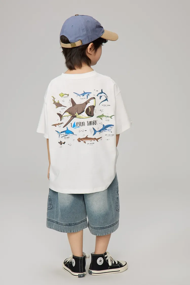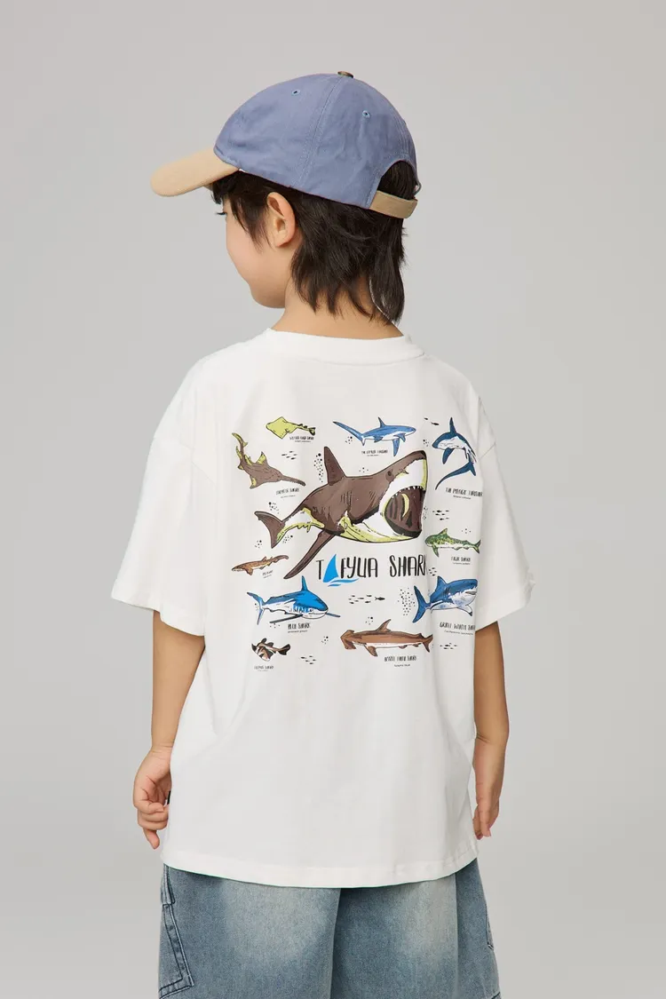 鯊魚彩色印花全棉TEE