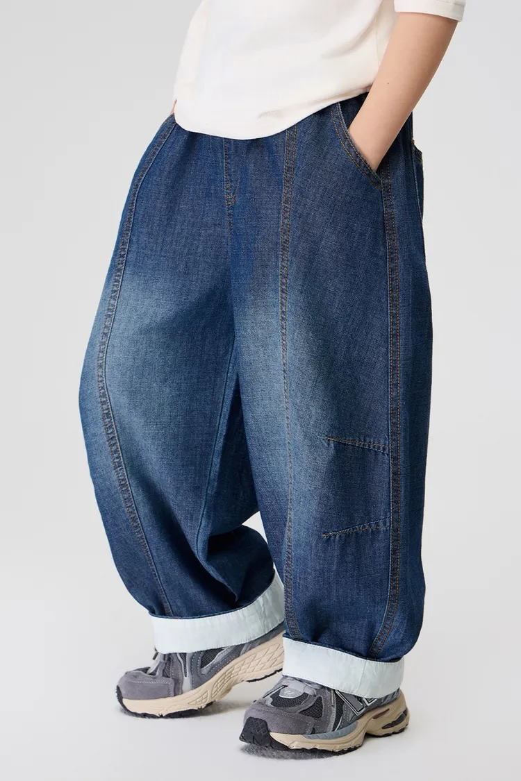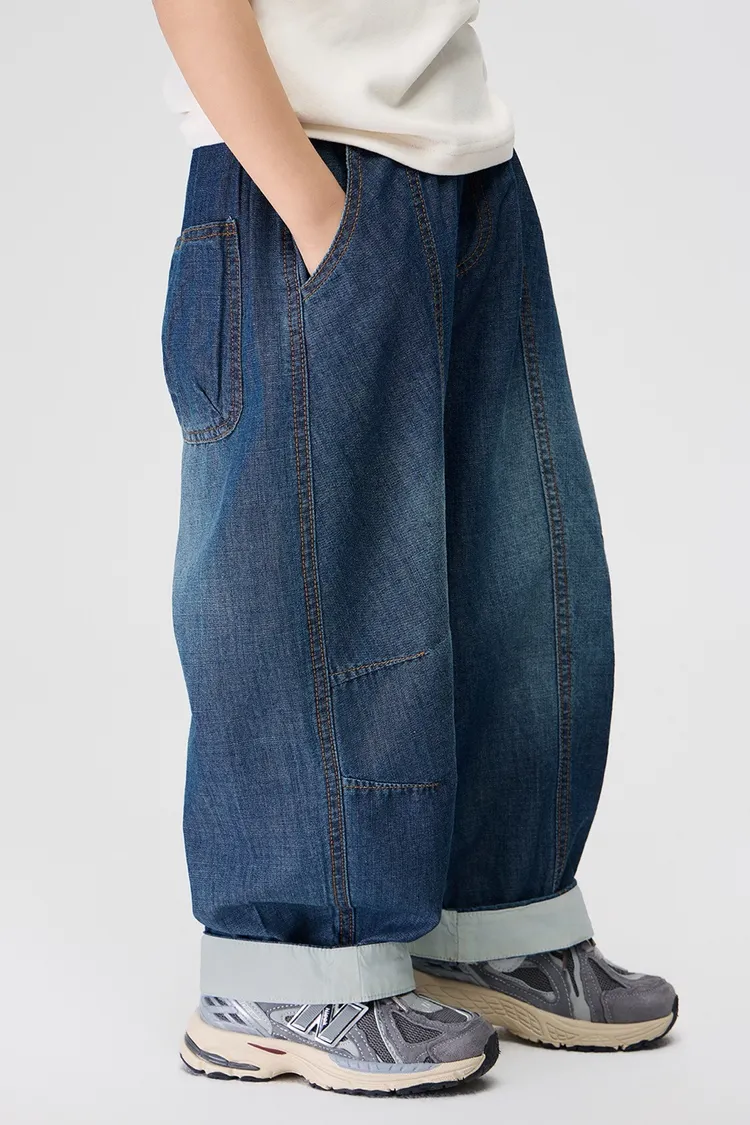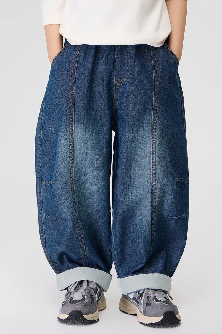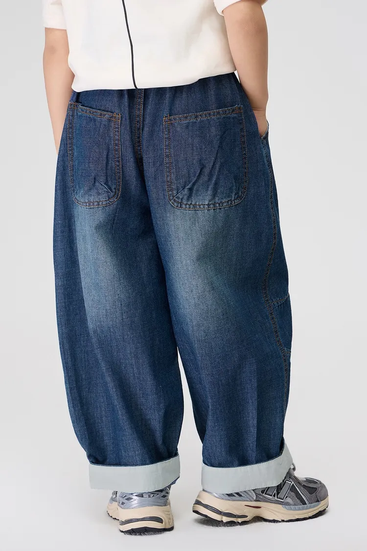 復古捲邊竹節棉牛仔防蚊褲