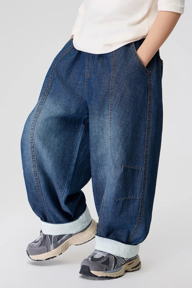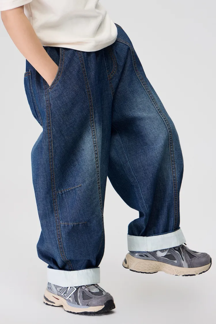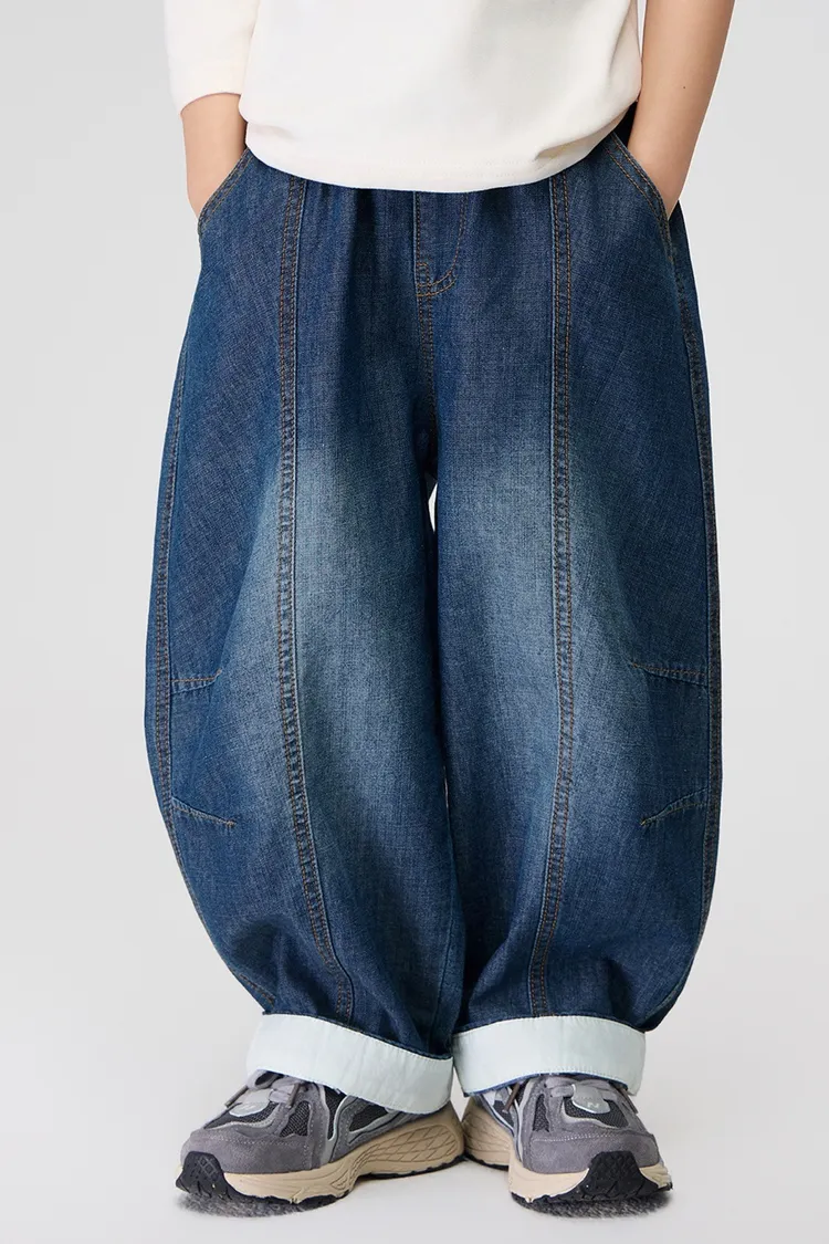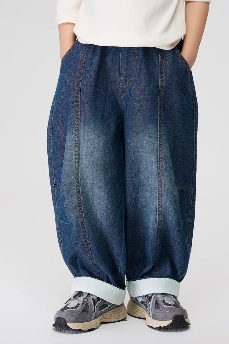 復古捲邊竹節棉牛仔防蚊褲