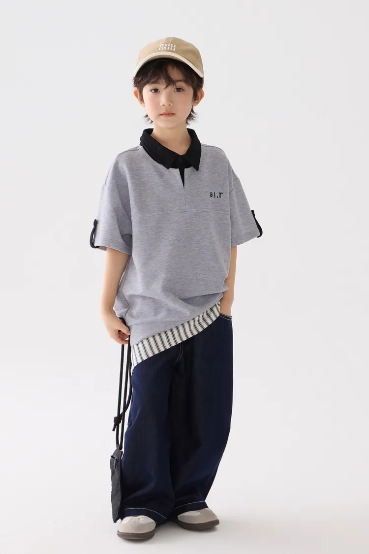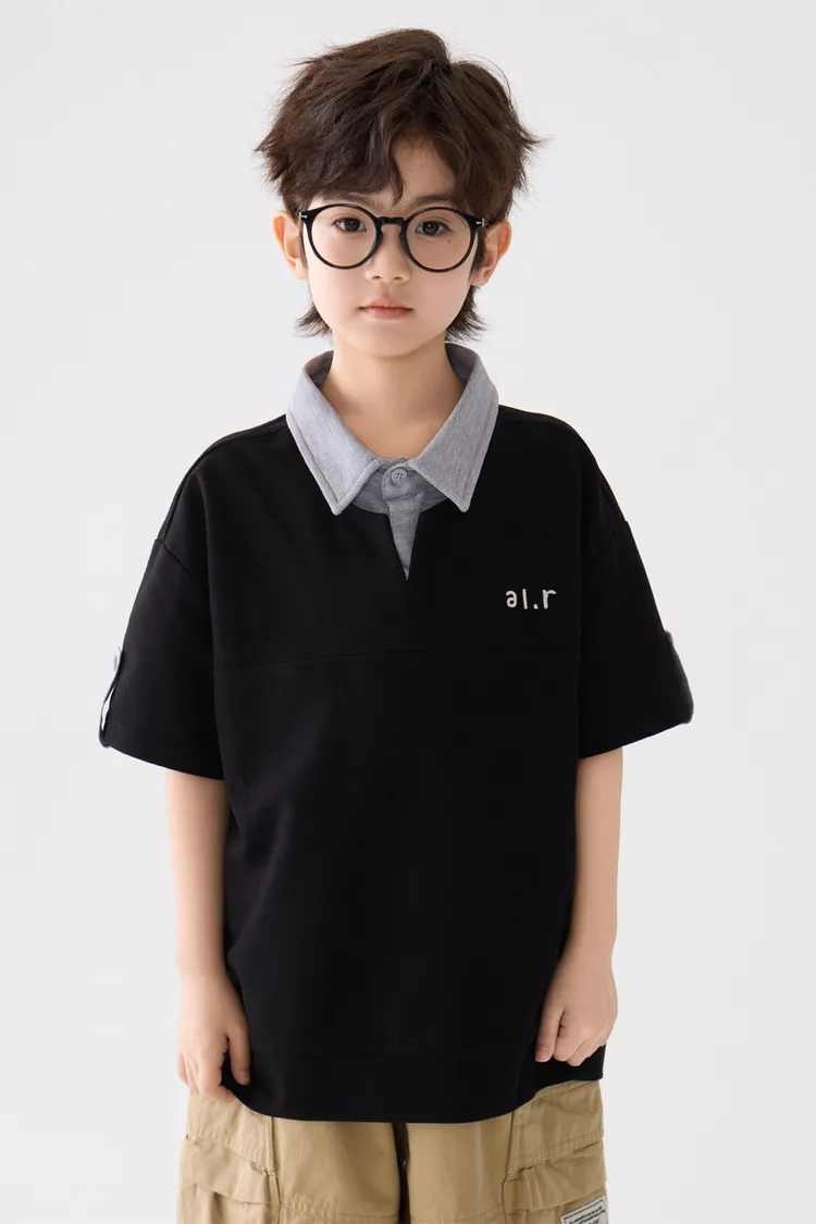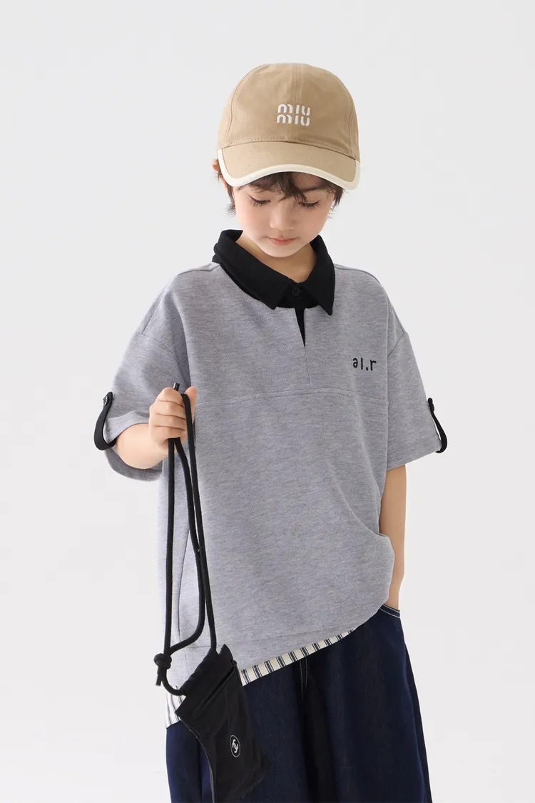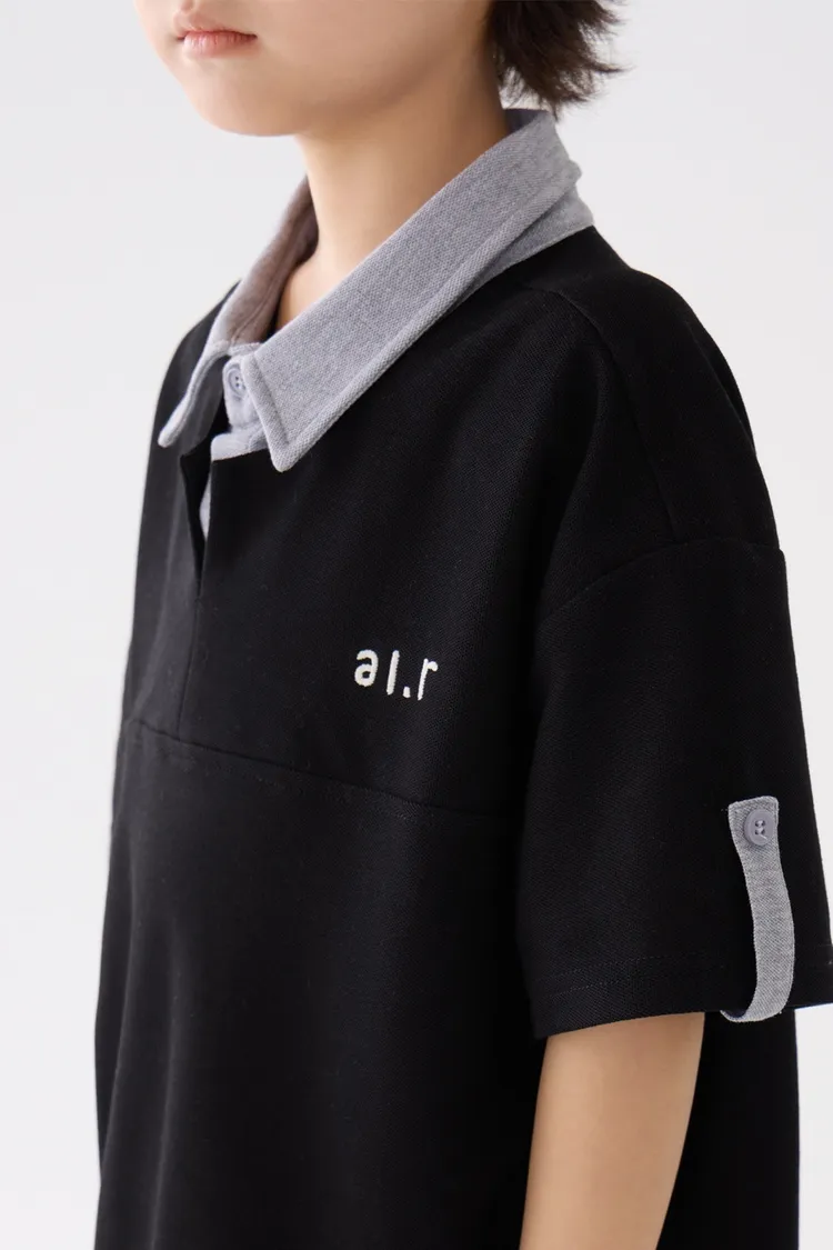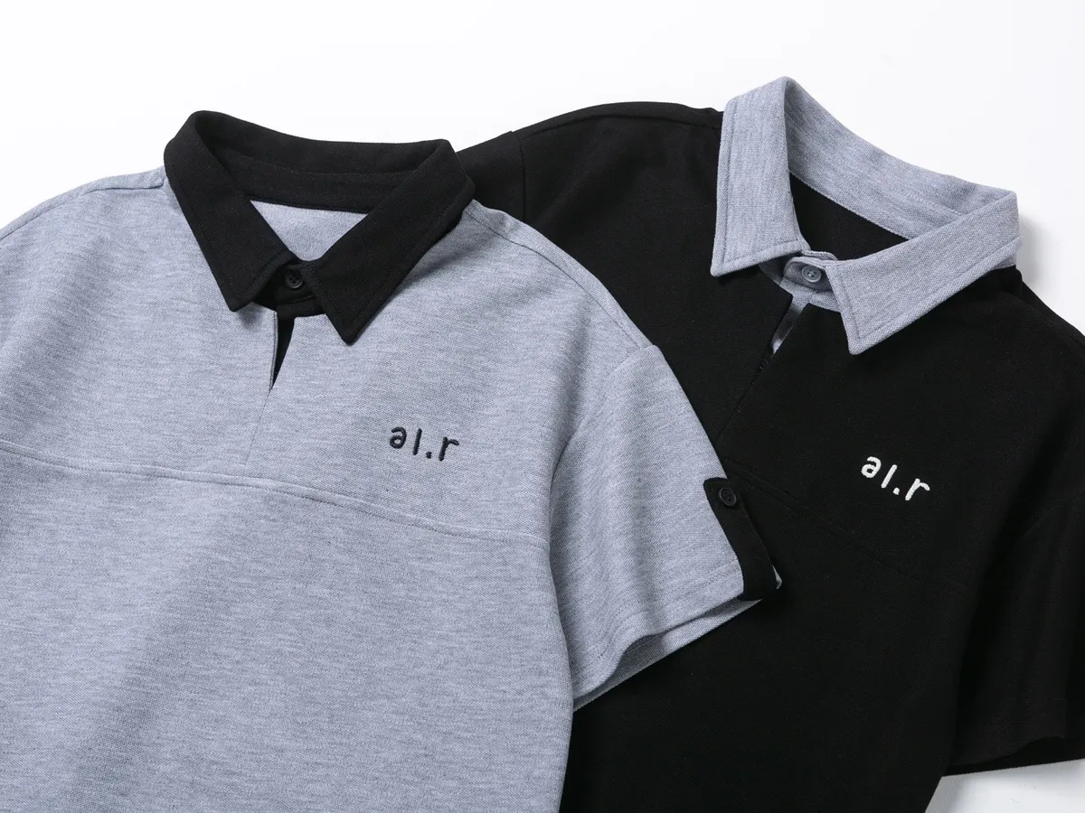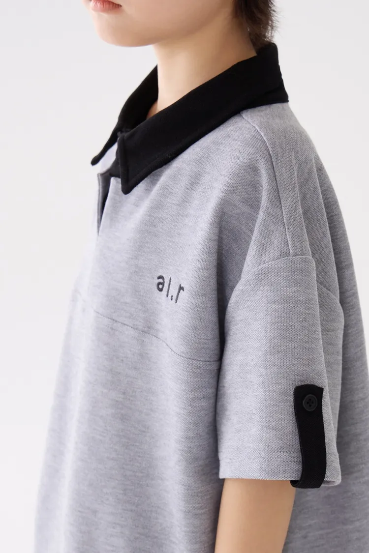 字母刺繡假兩件翻領POLO上衣