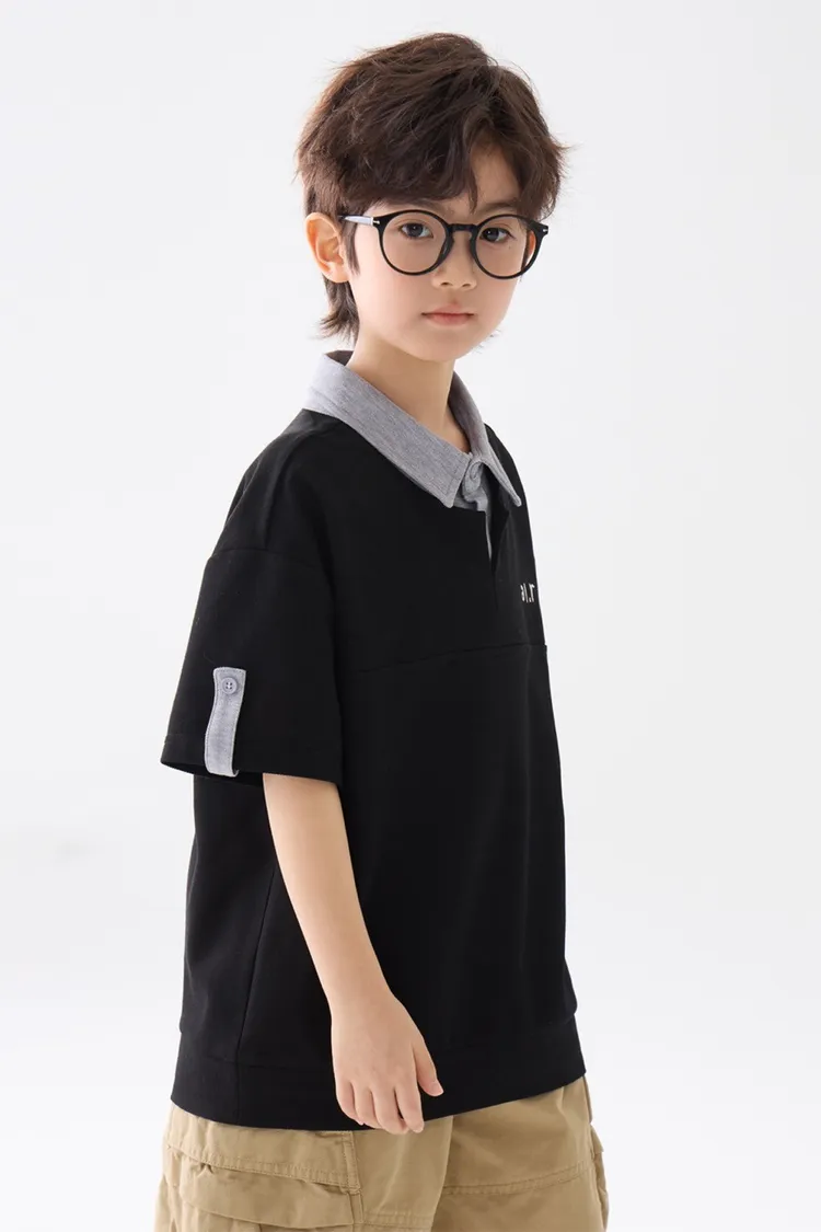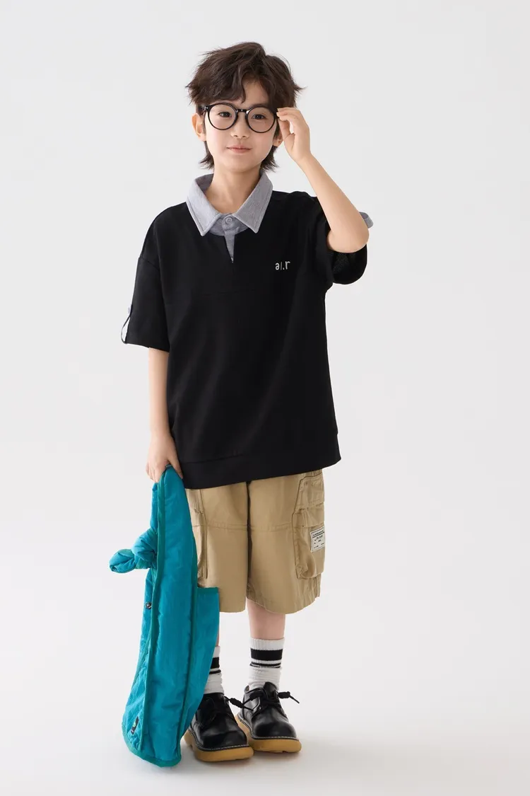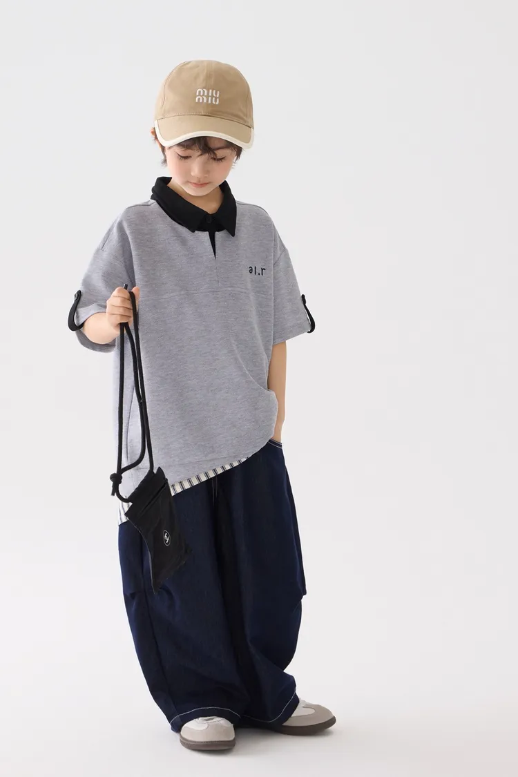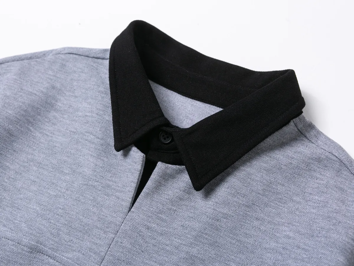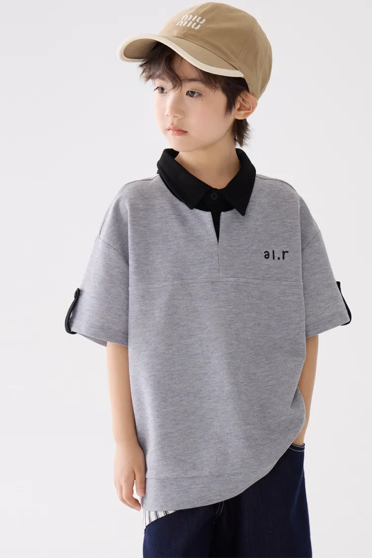 字母刺繡假兩件翻領POLO上衣