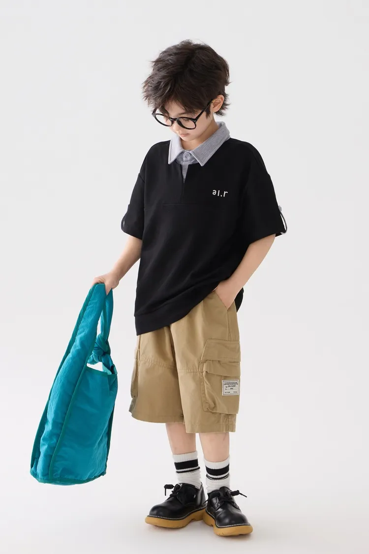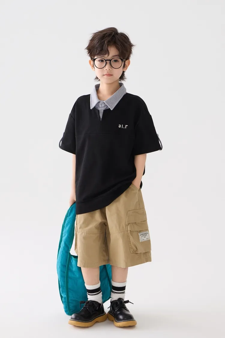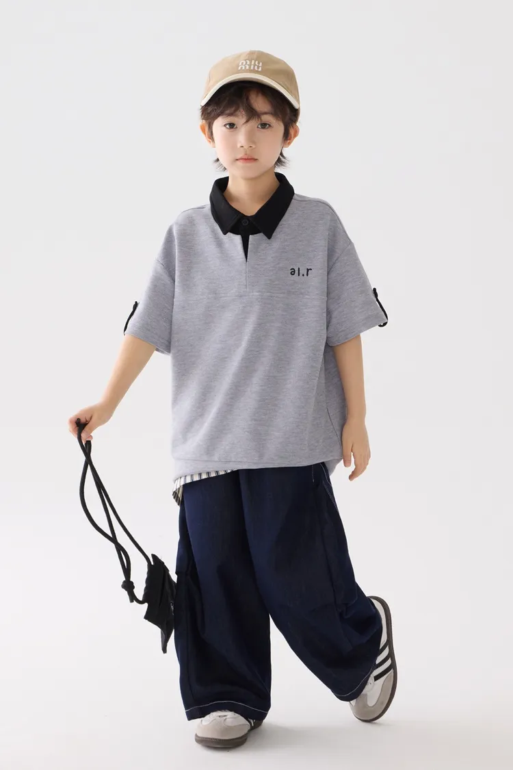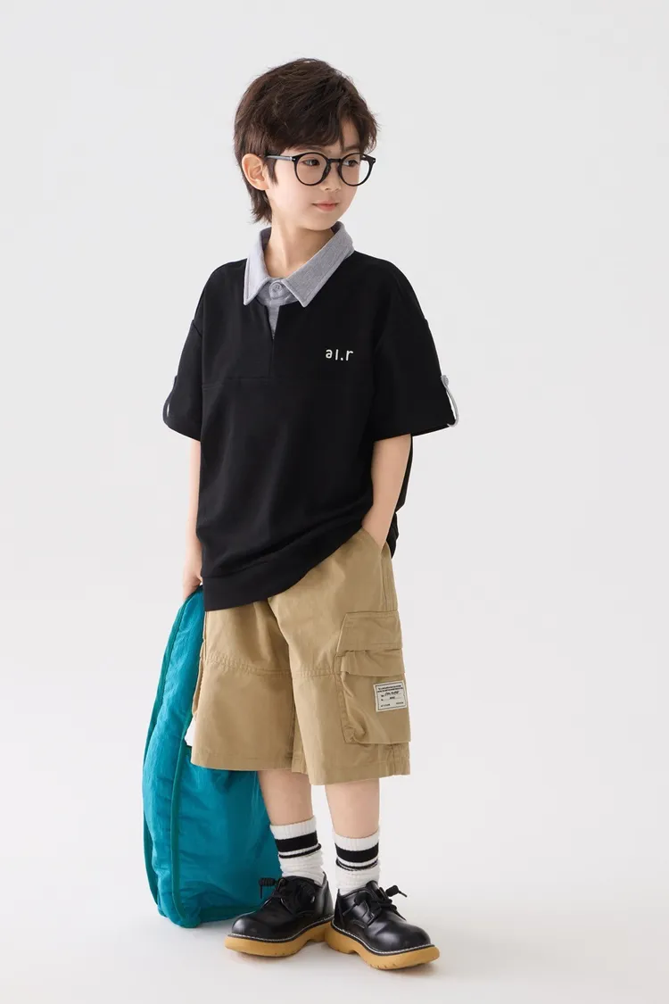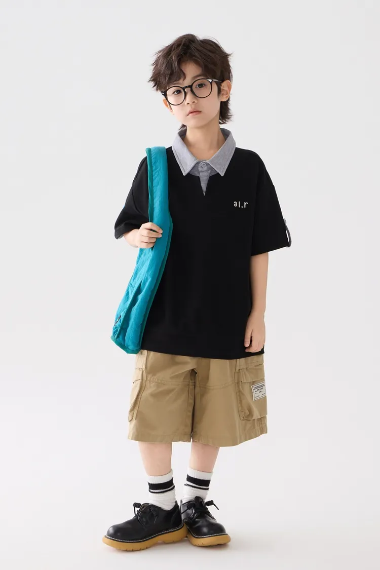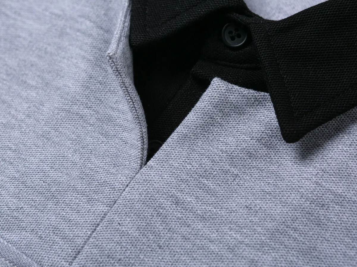 字母刺繡假兩件翻領POLO上衣