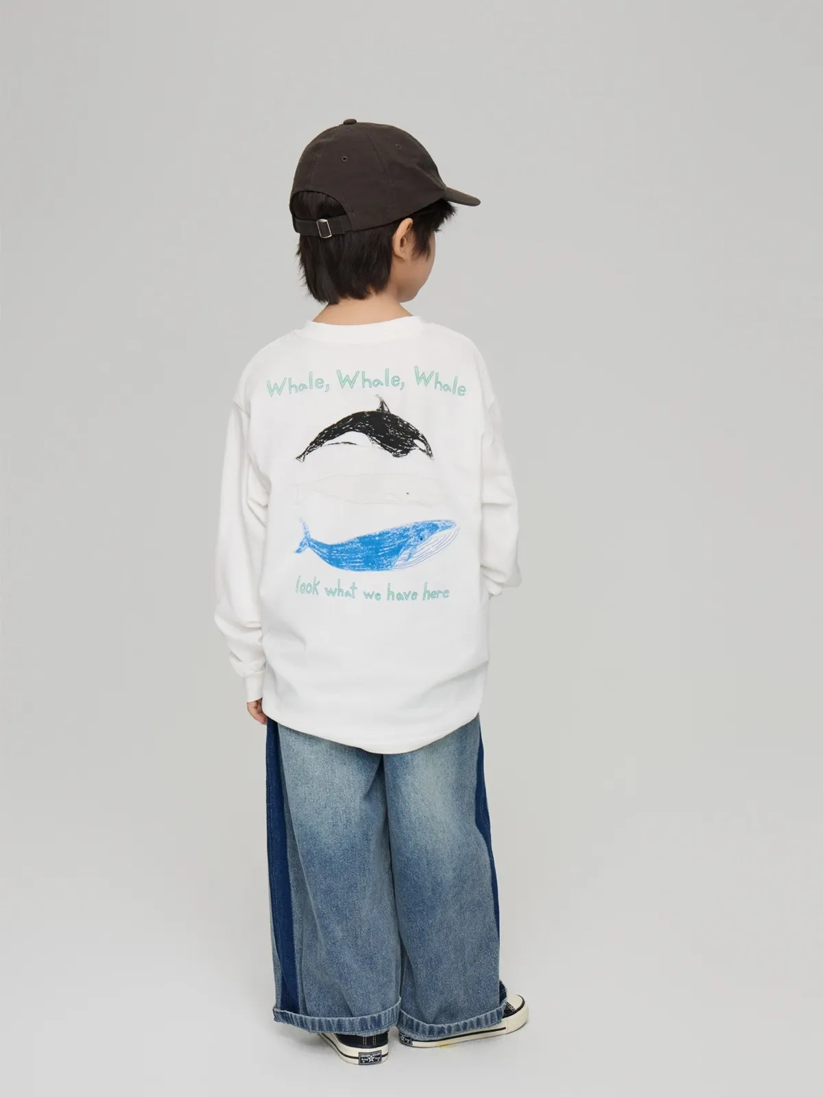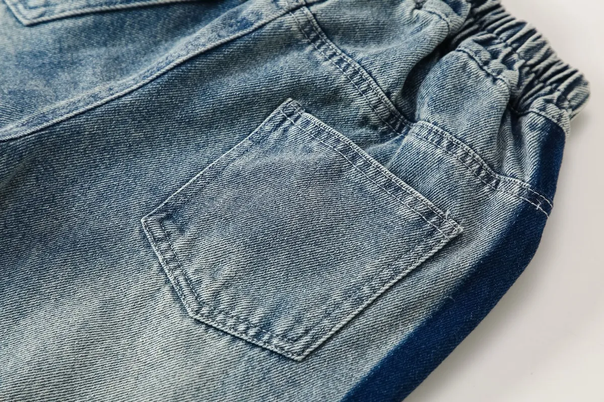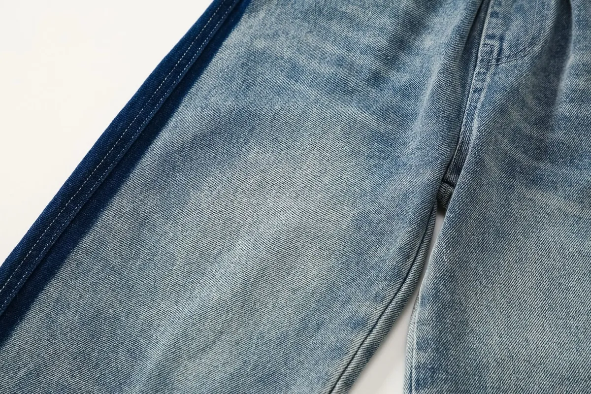 撞色拼條直筒牛仔長褲