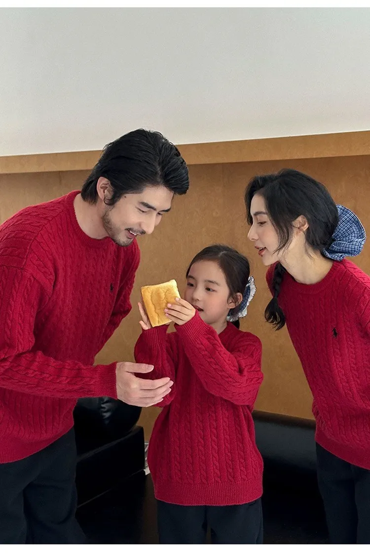小刺繡麻花親子針織衣