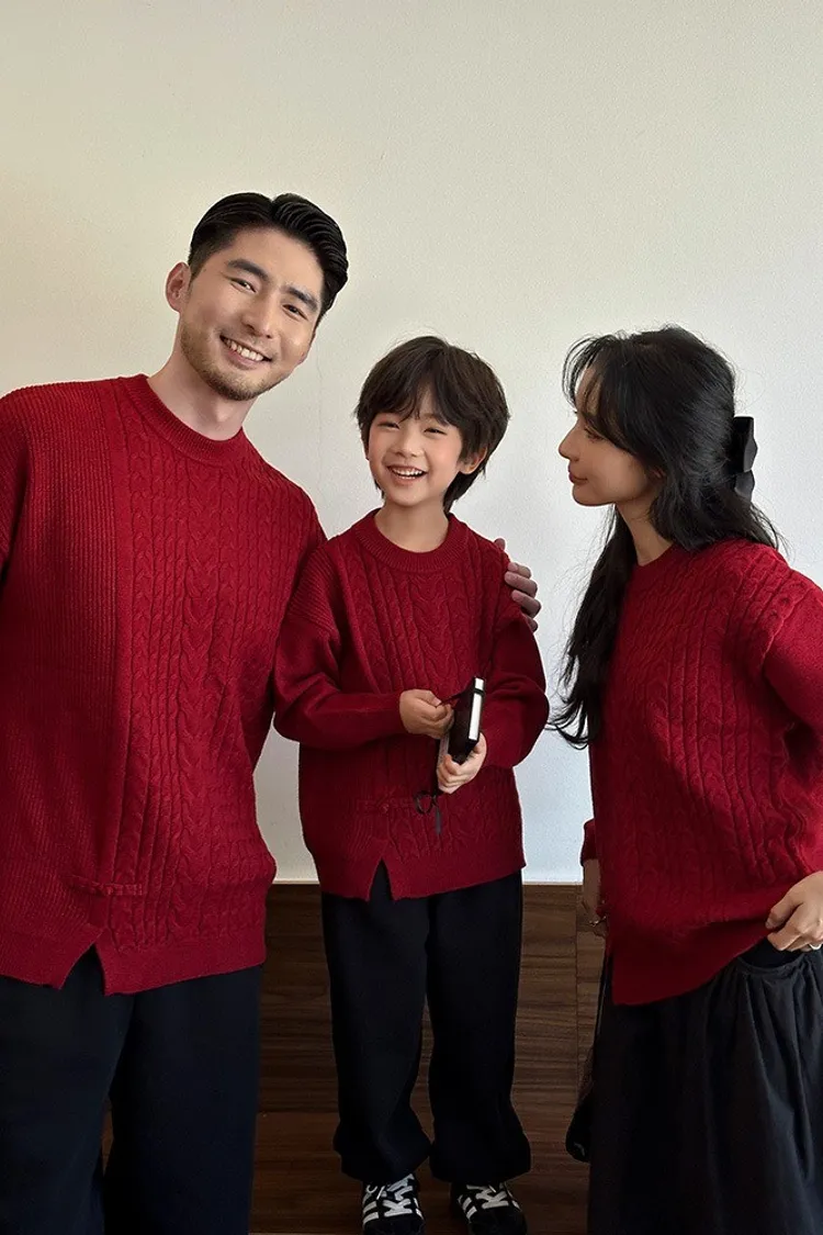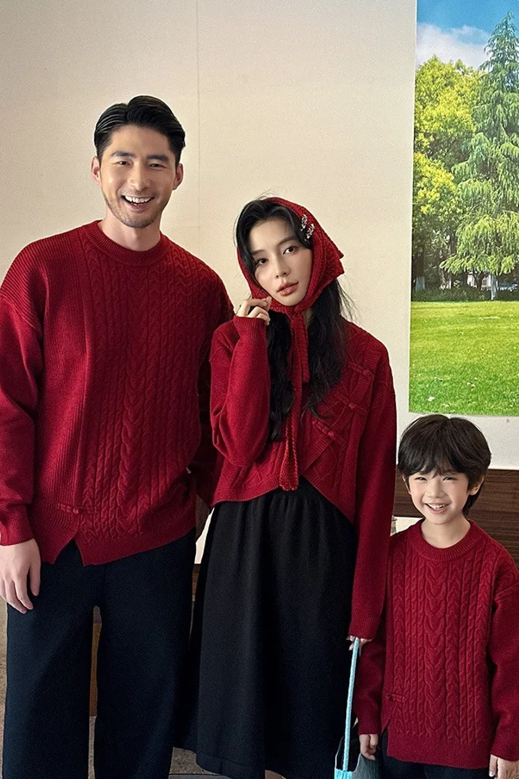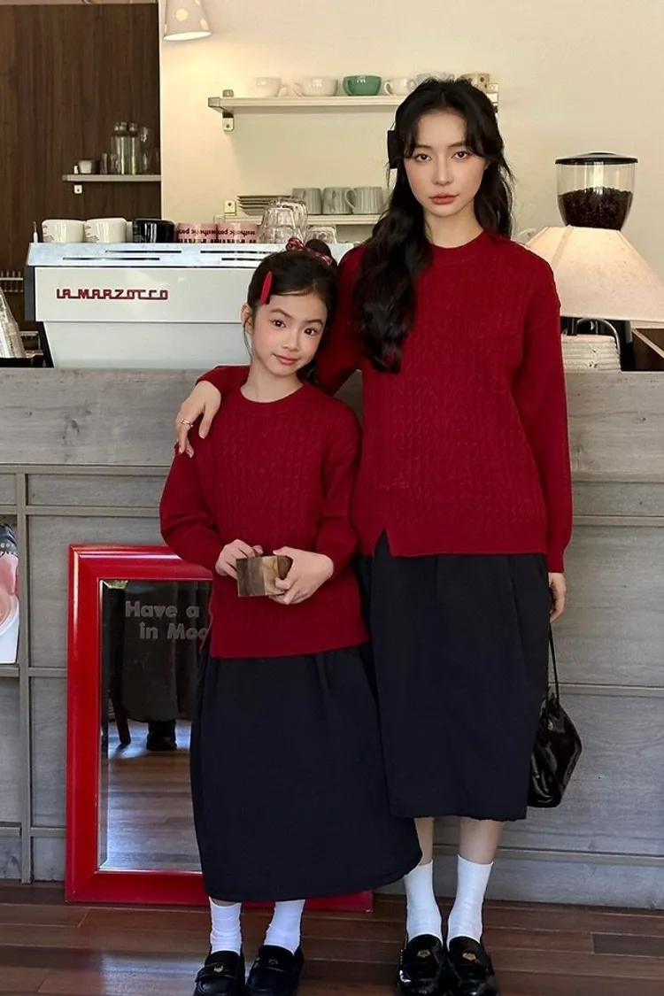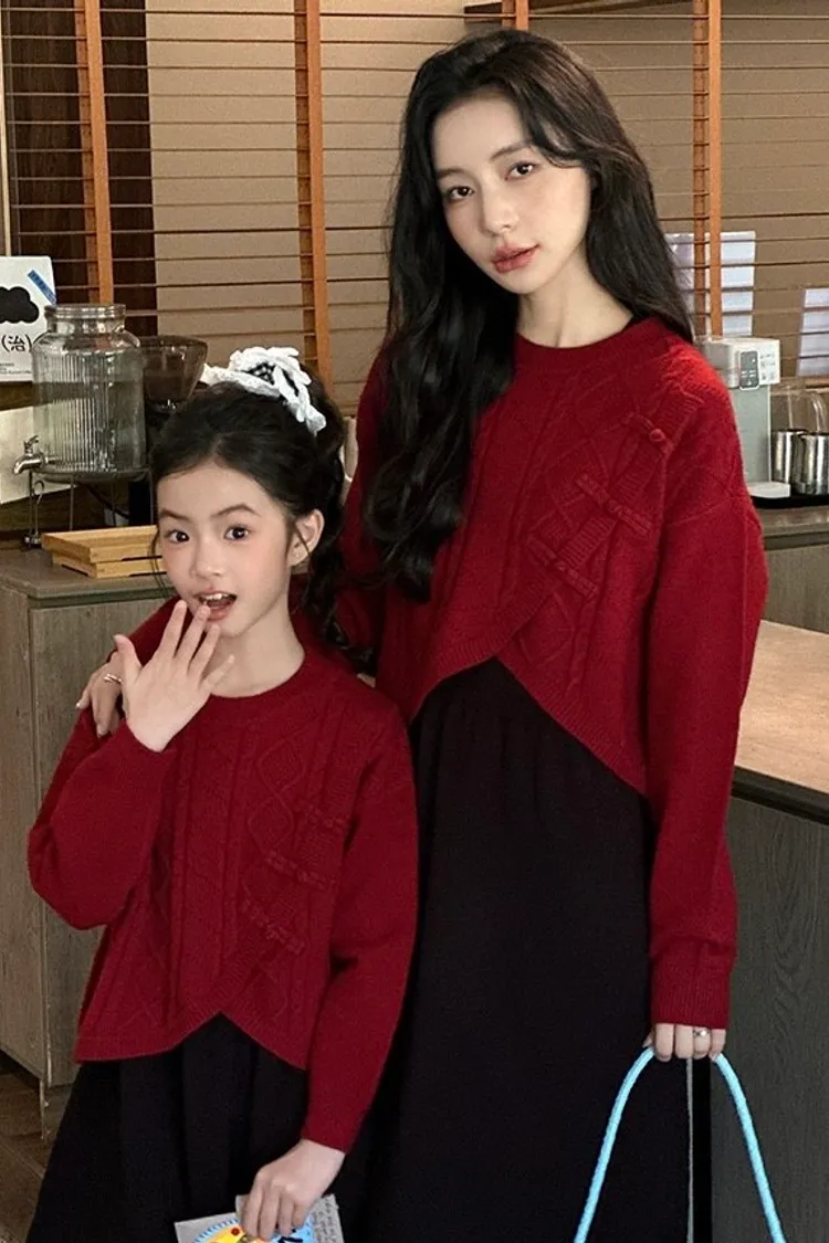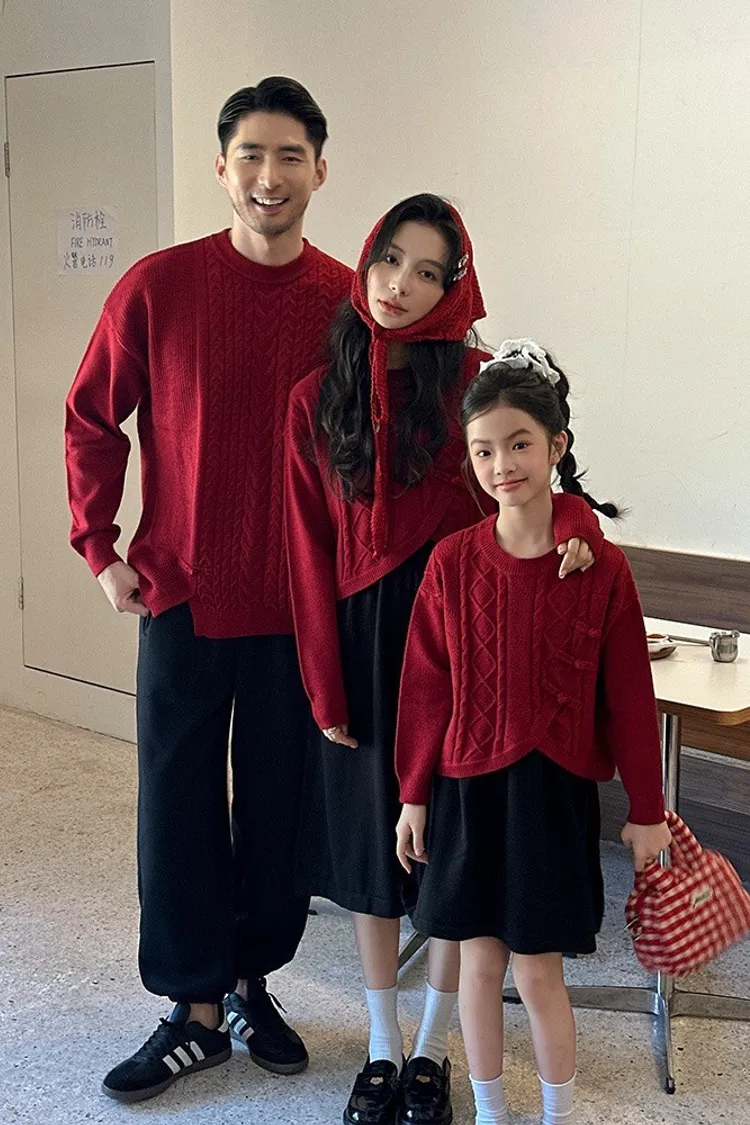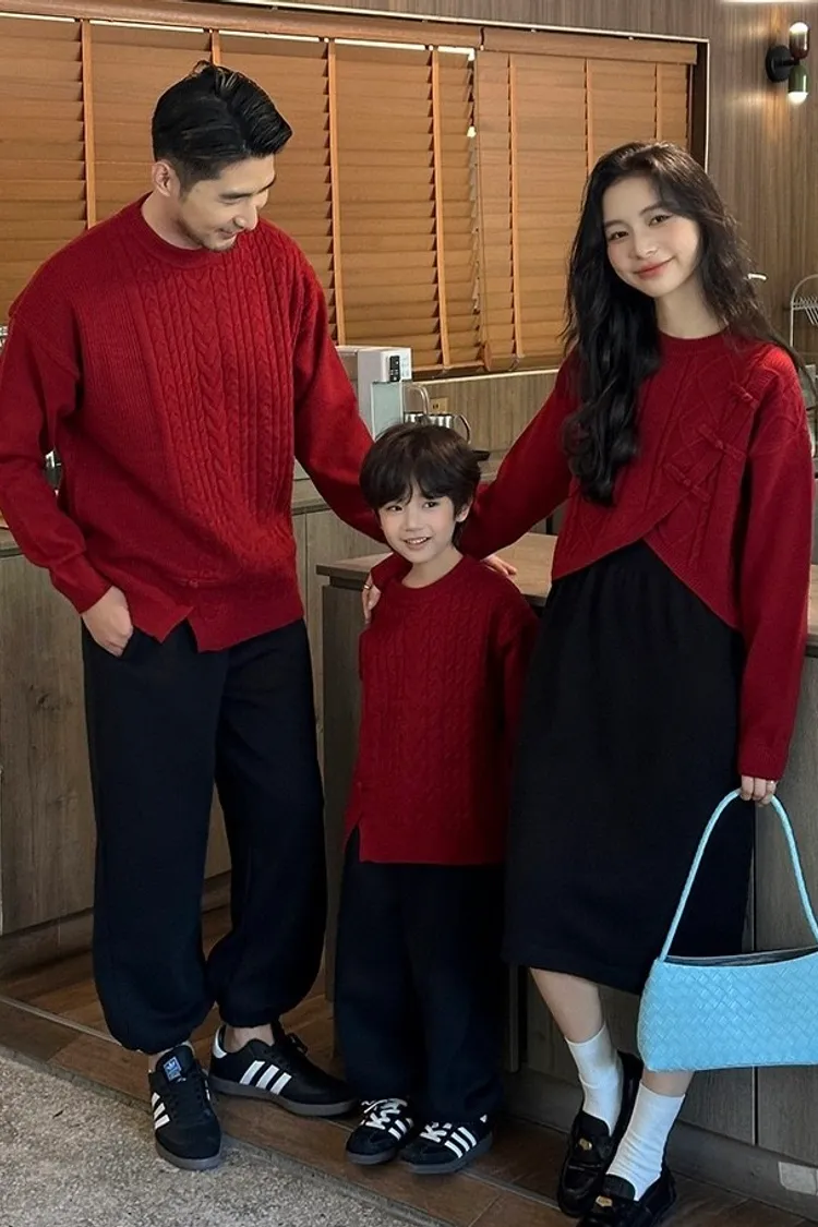 盤釦麻花小開衩針織親子TEE