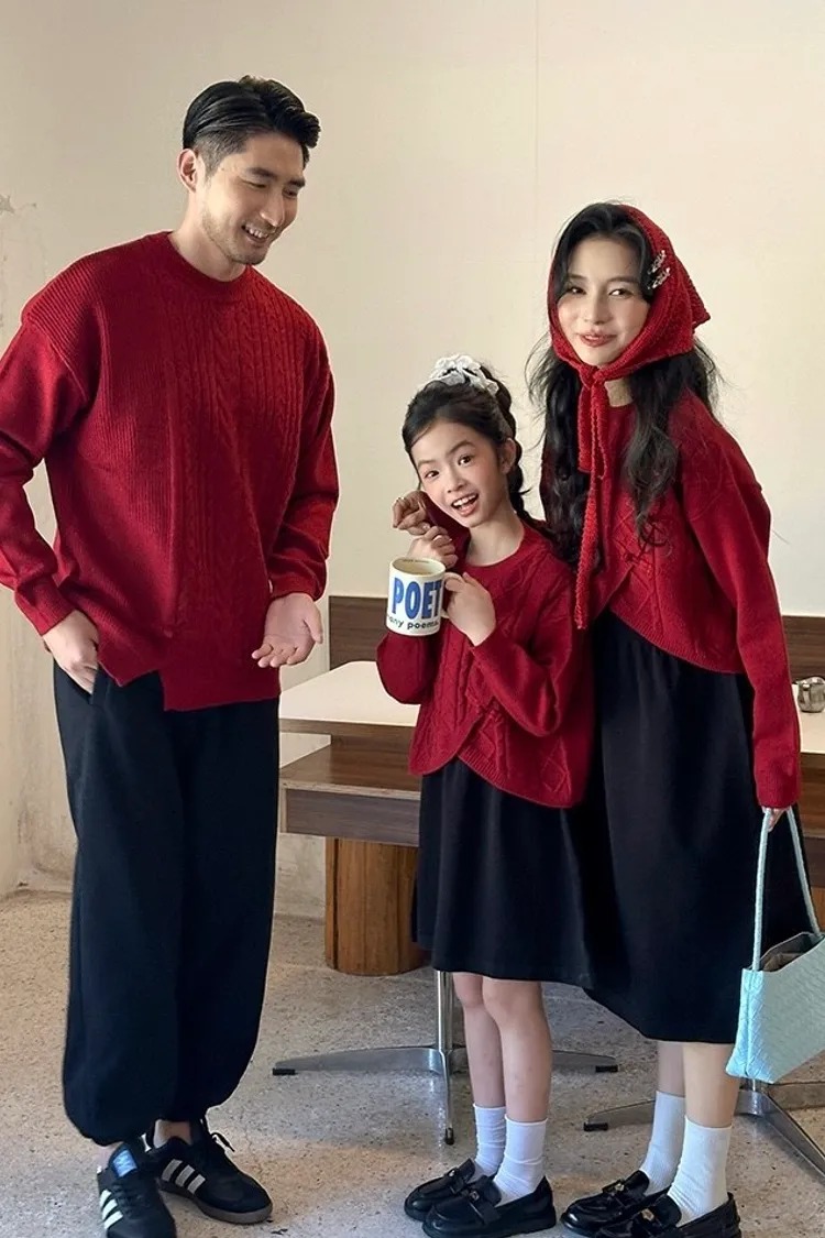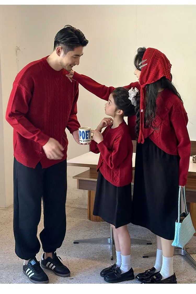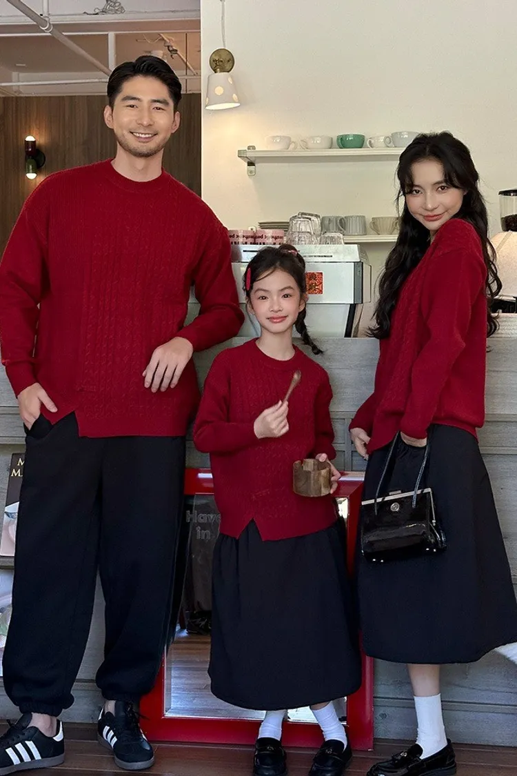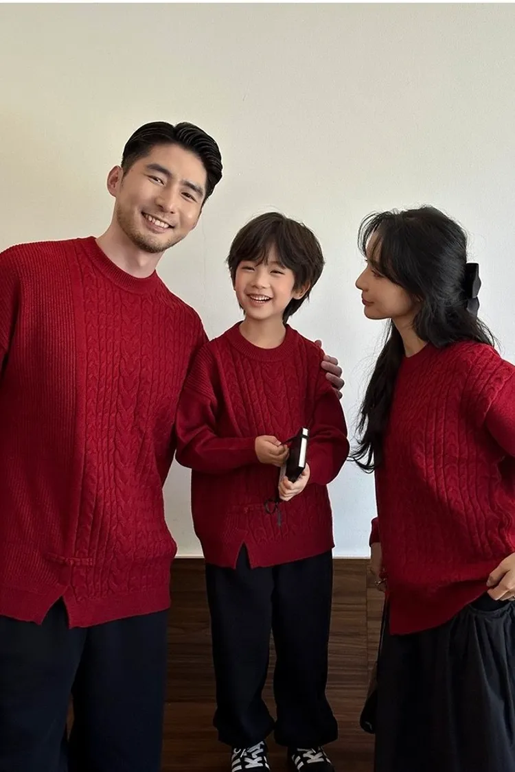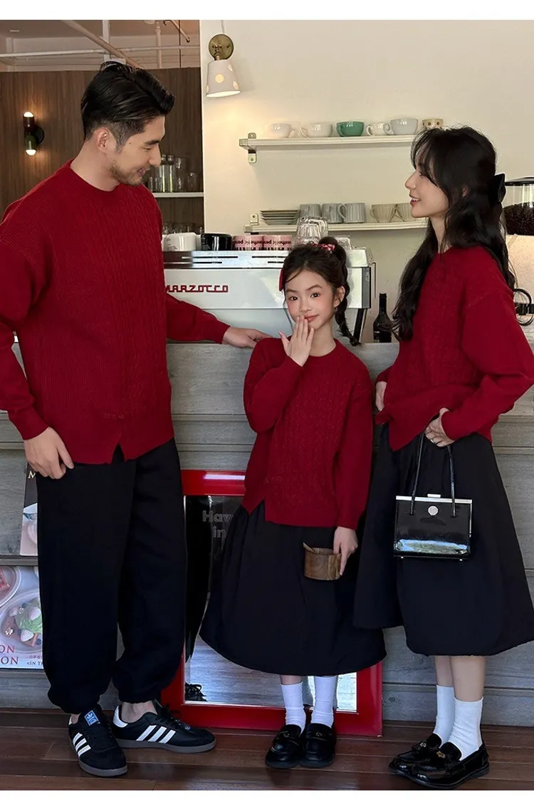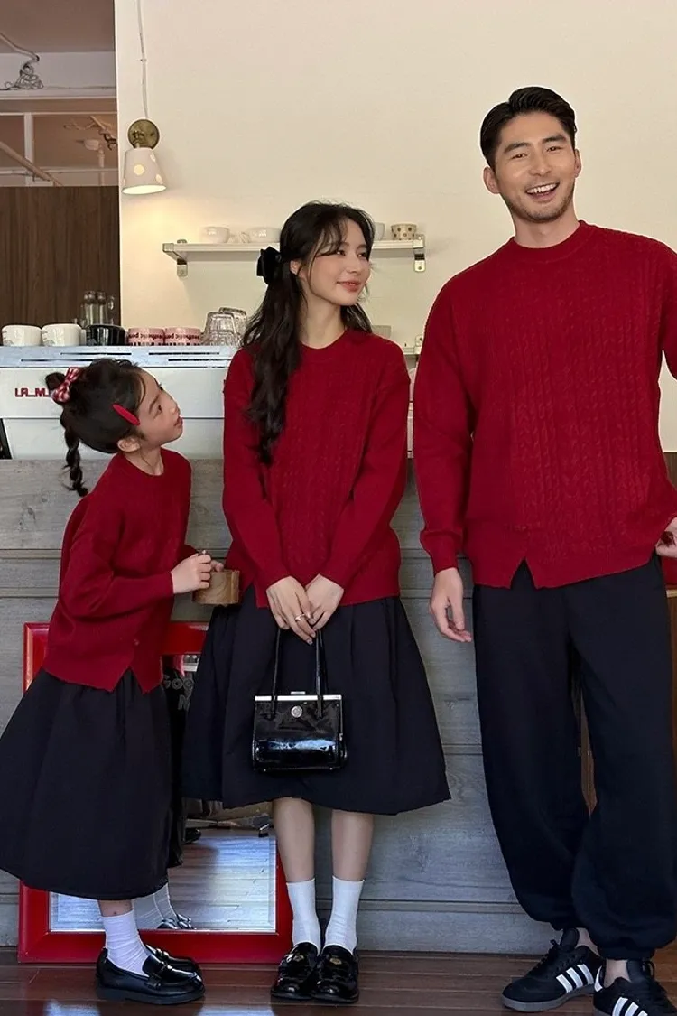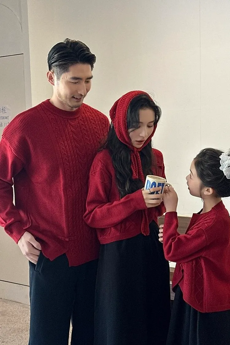 盤釦麻花小開衩針織親子TEE