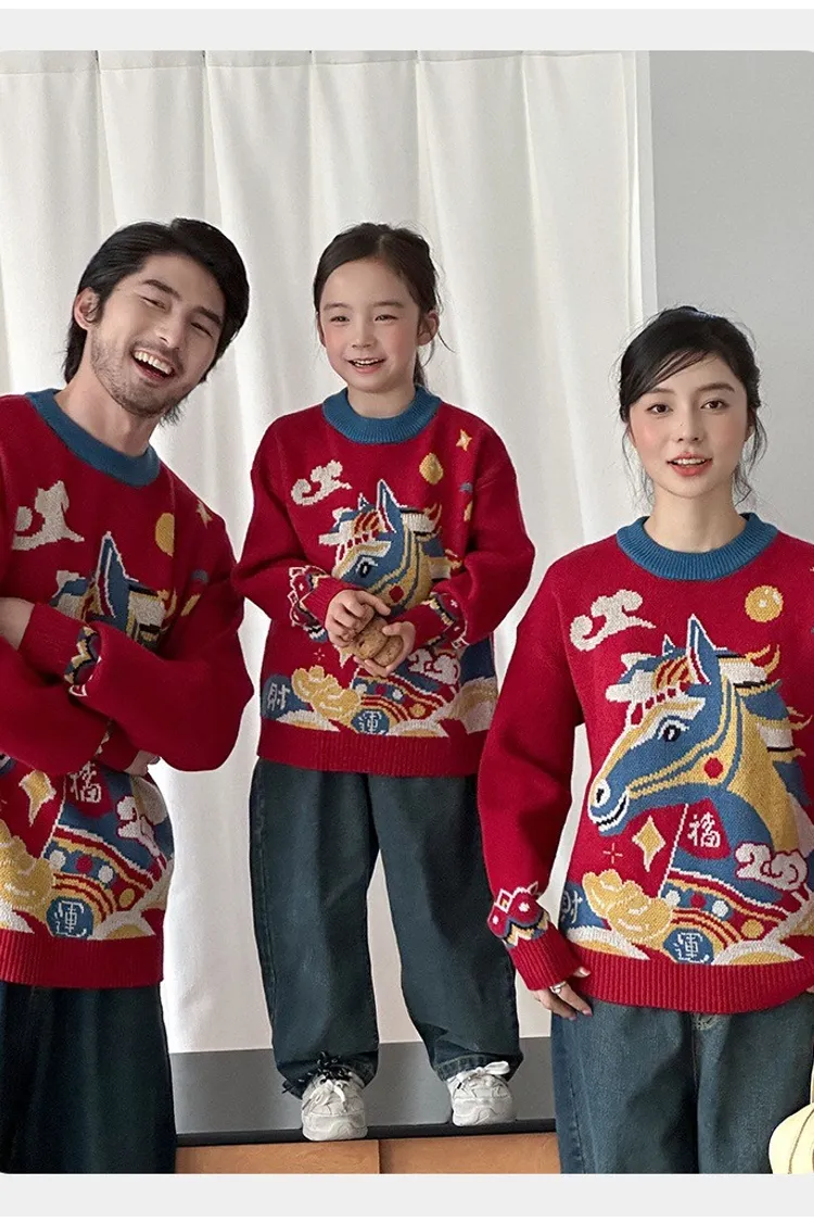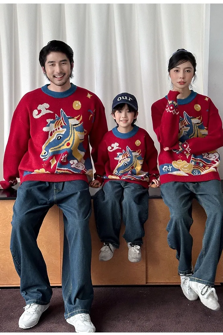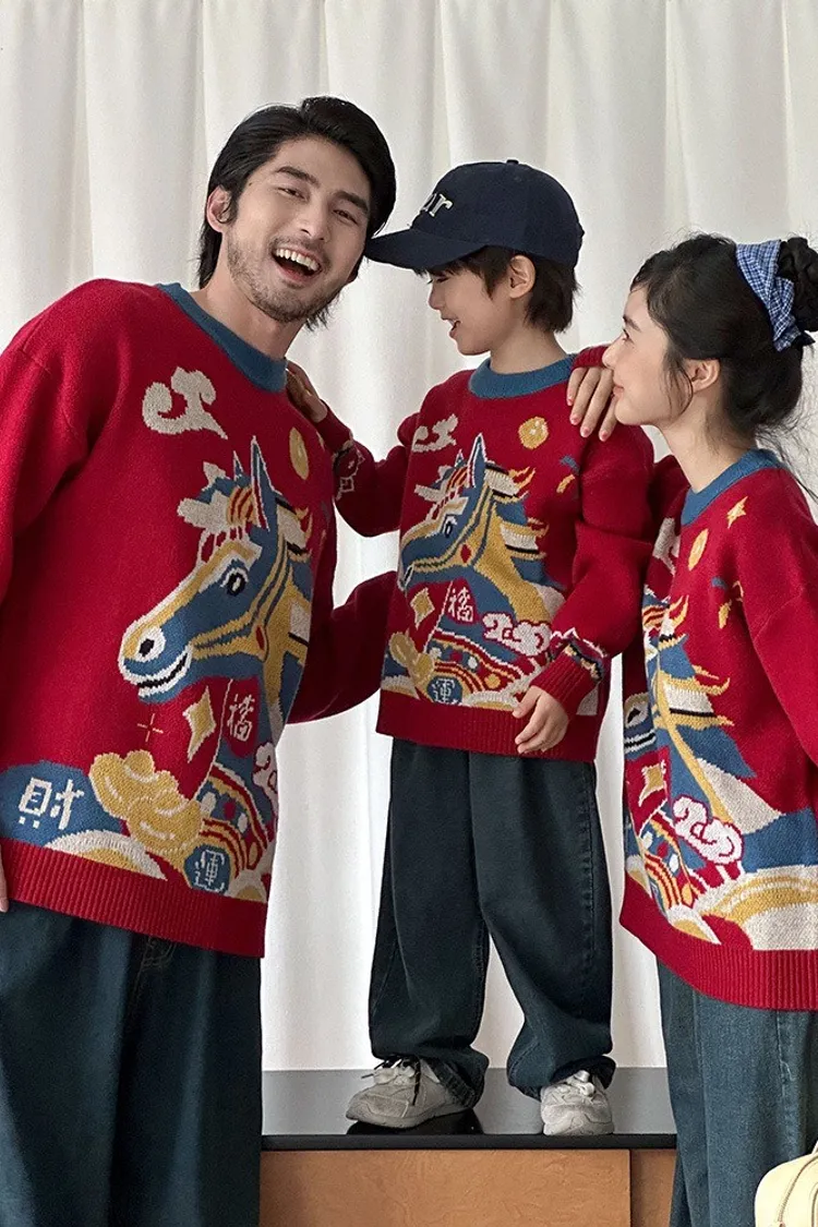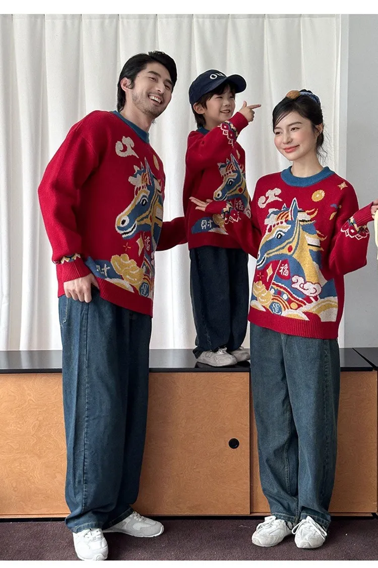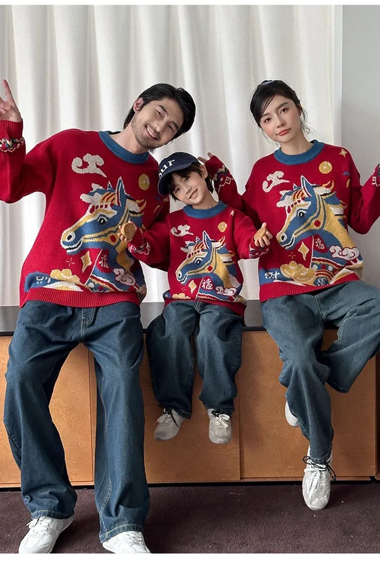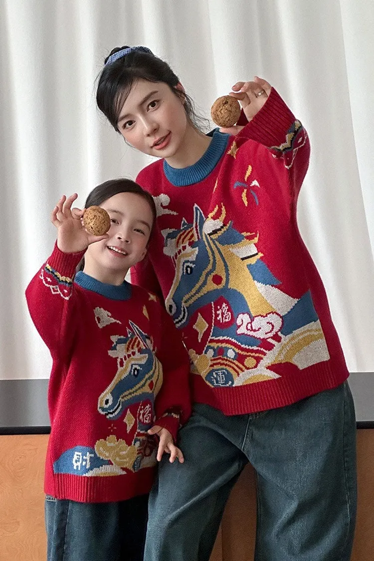 喜慶彩色馬針織親子TEE