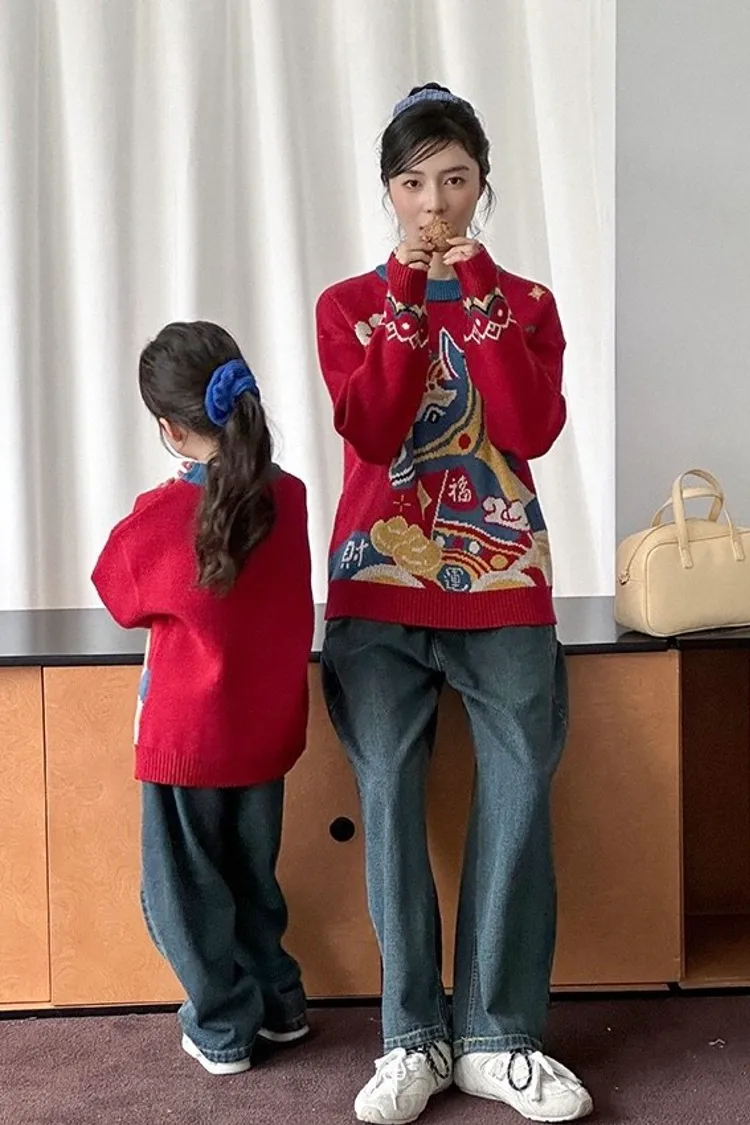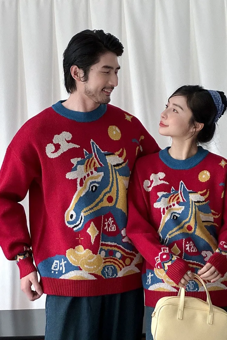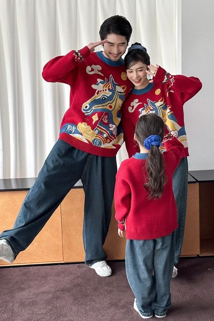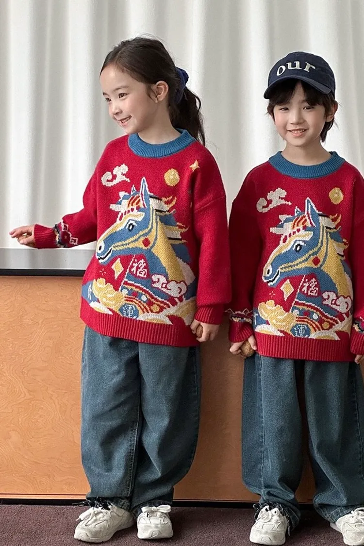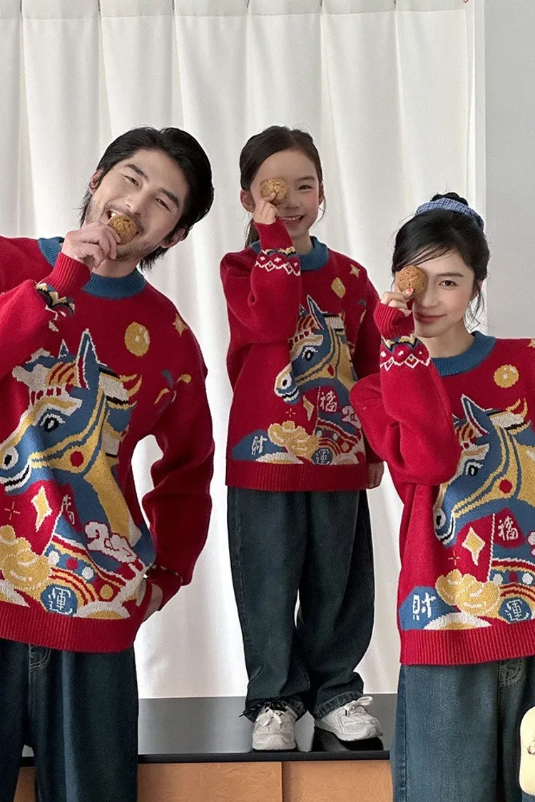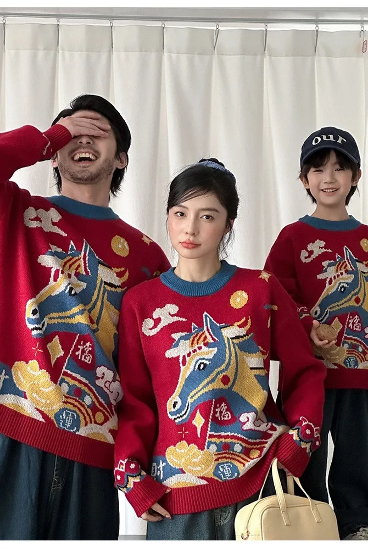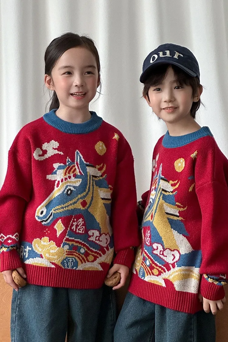 喜慶彩色馬針織親子TEE