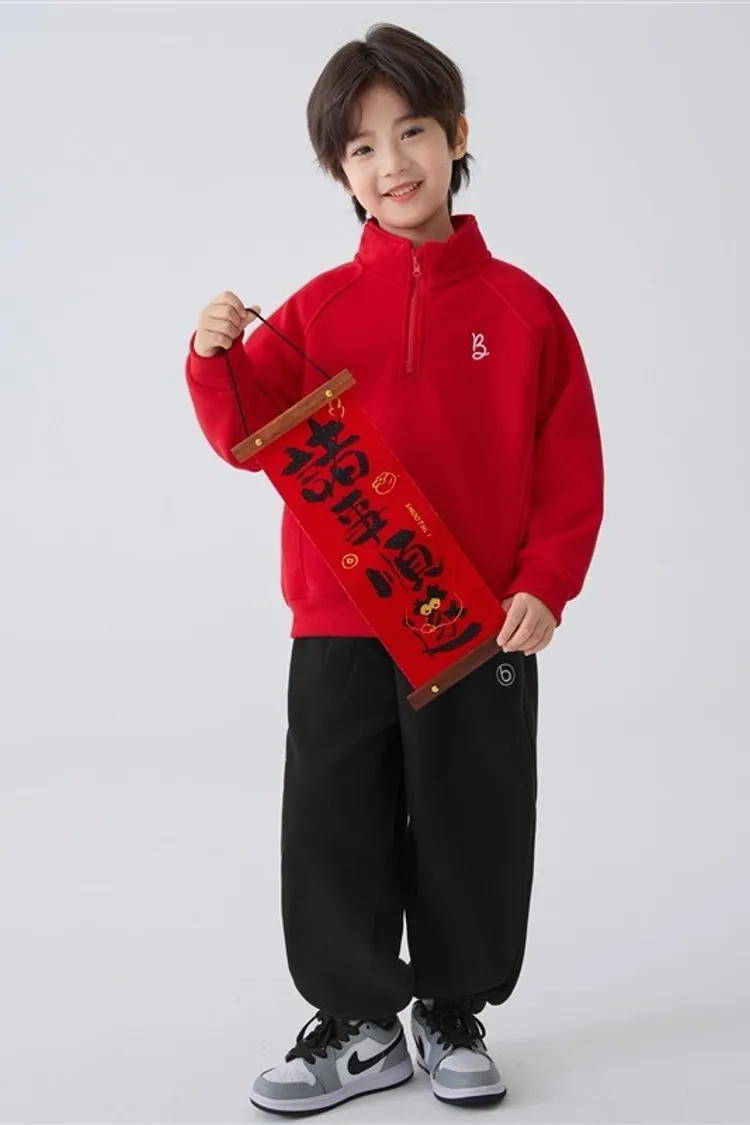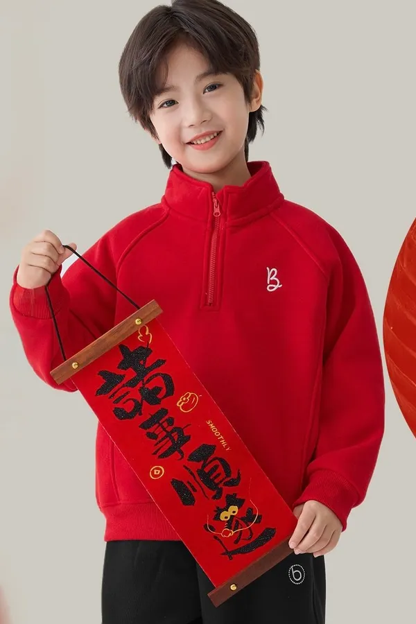 新年感小字母立領加絨拜年福