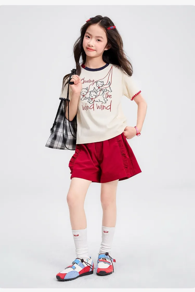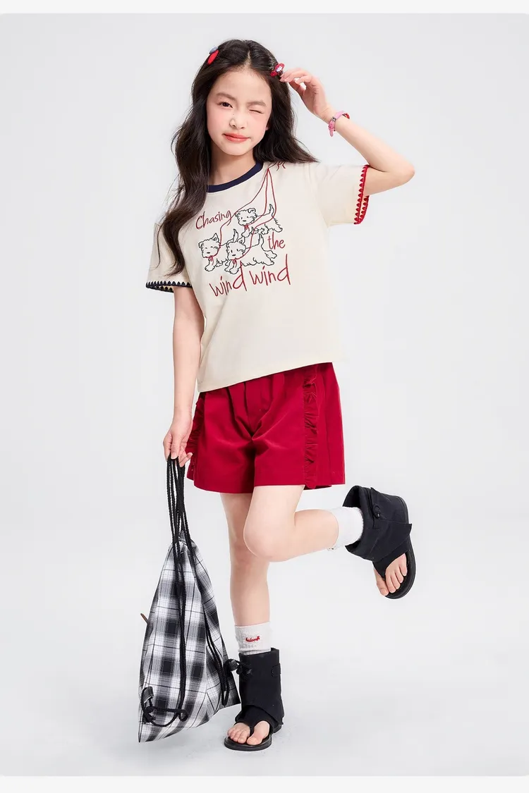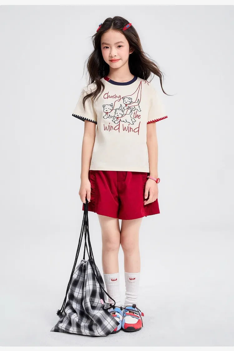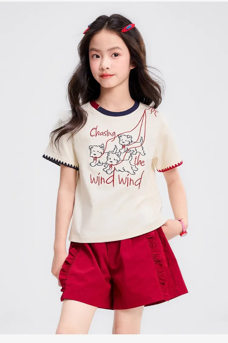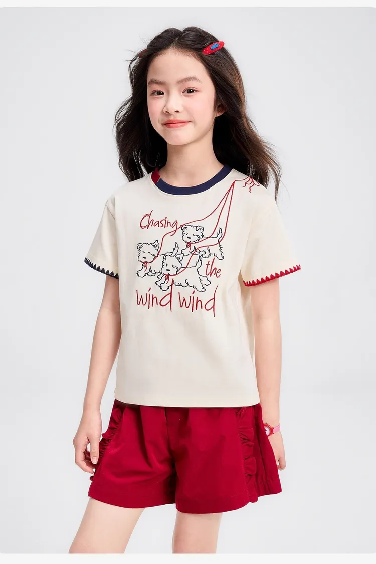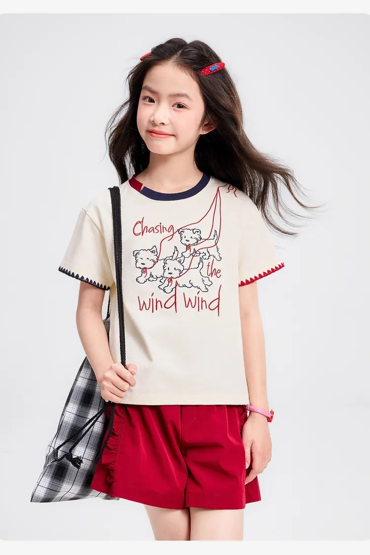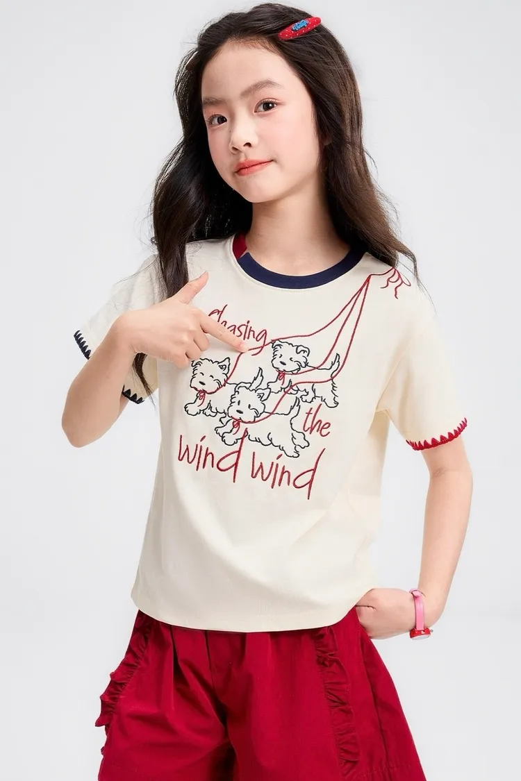 全棉撞色重工刺繡小狗TEE