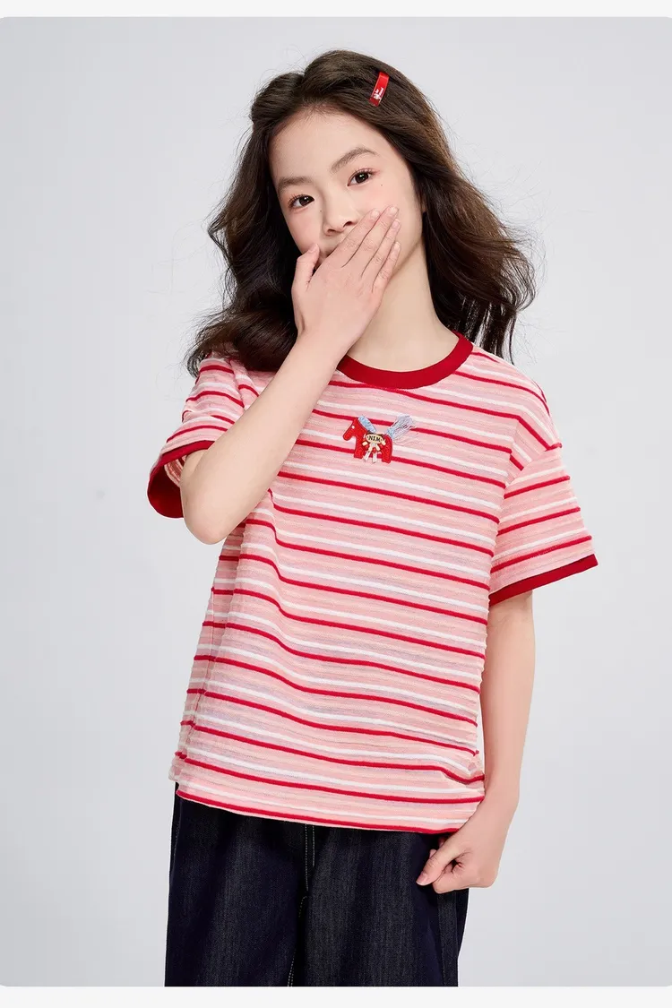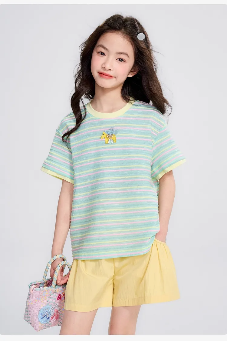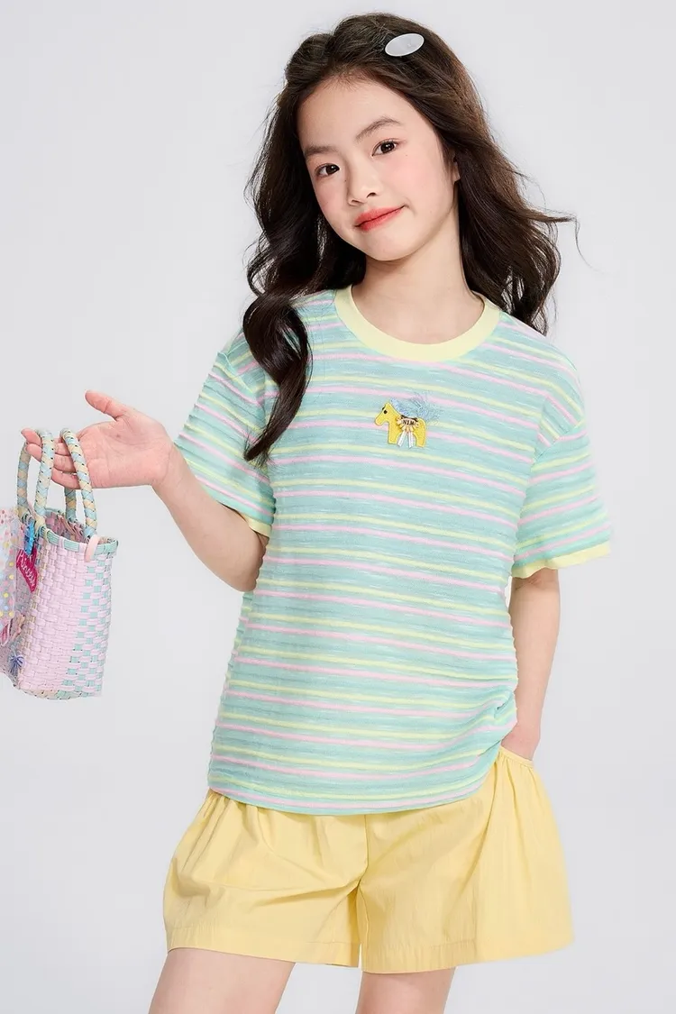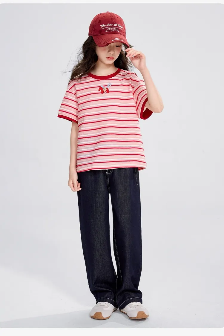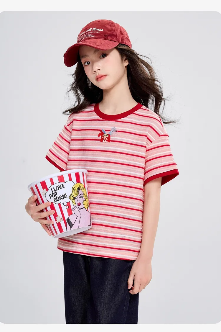 條紋雲彩棉撞色慵懶TEE