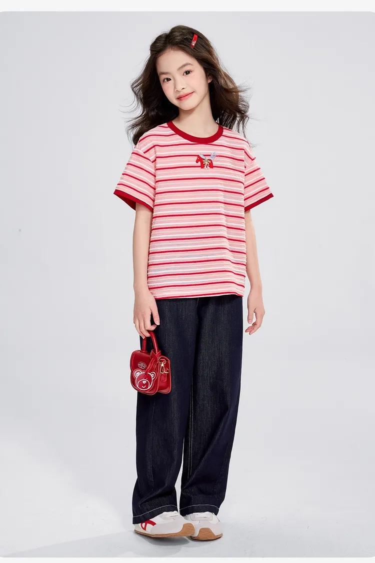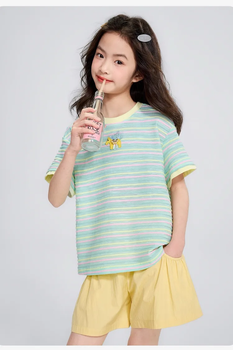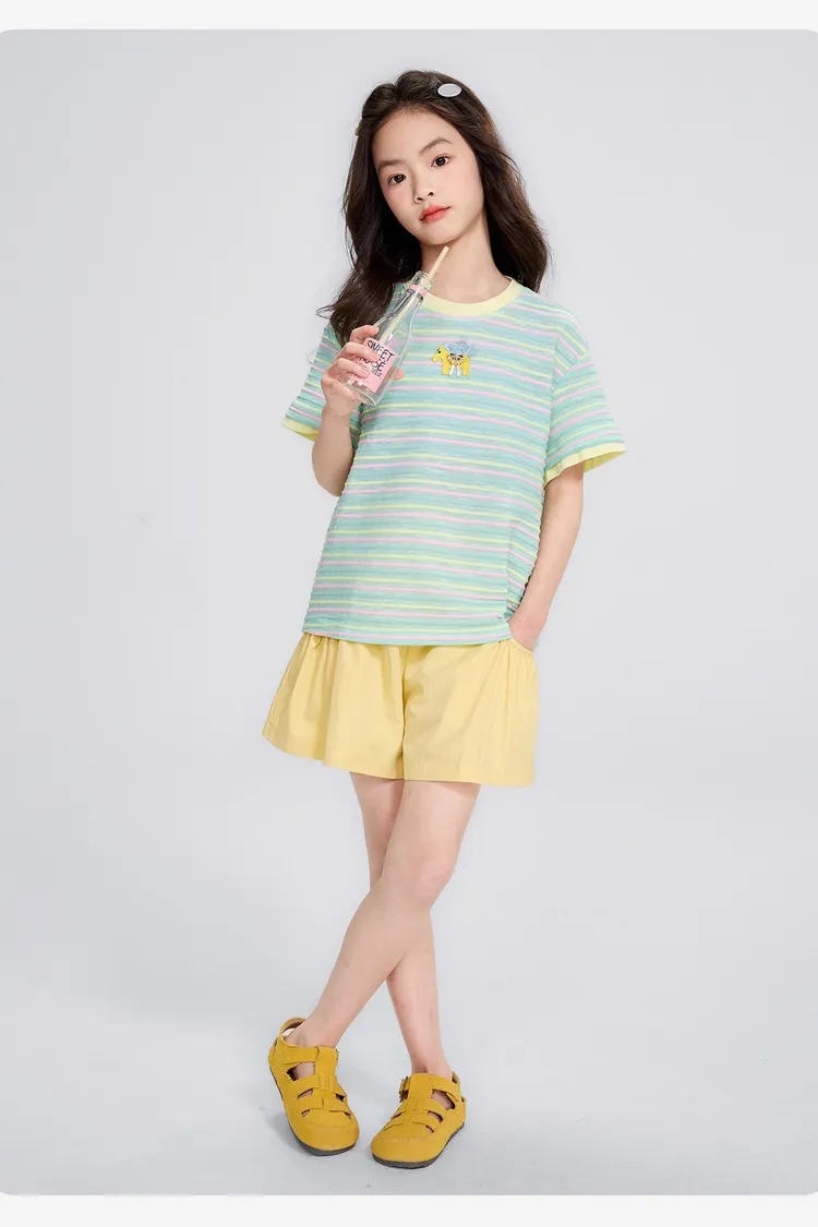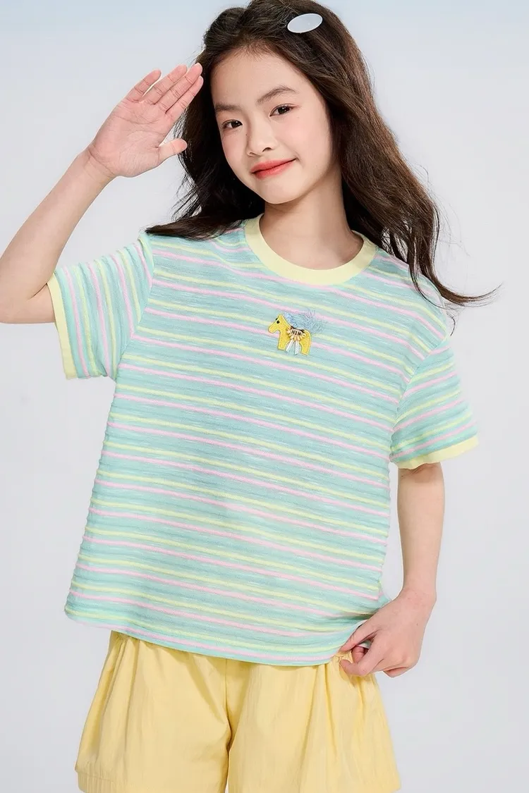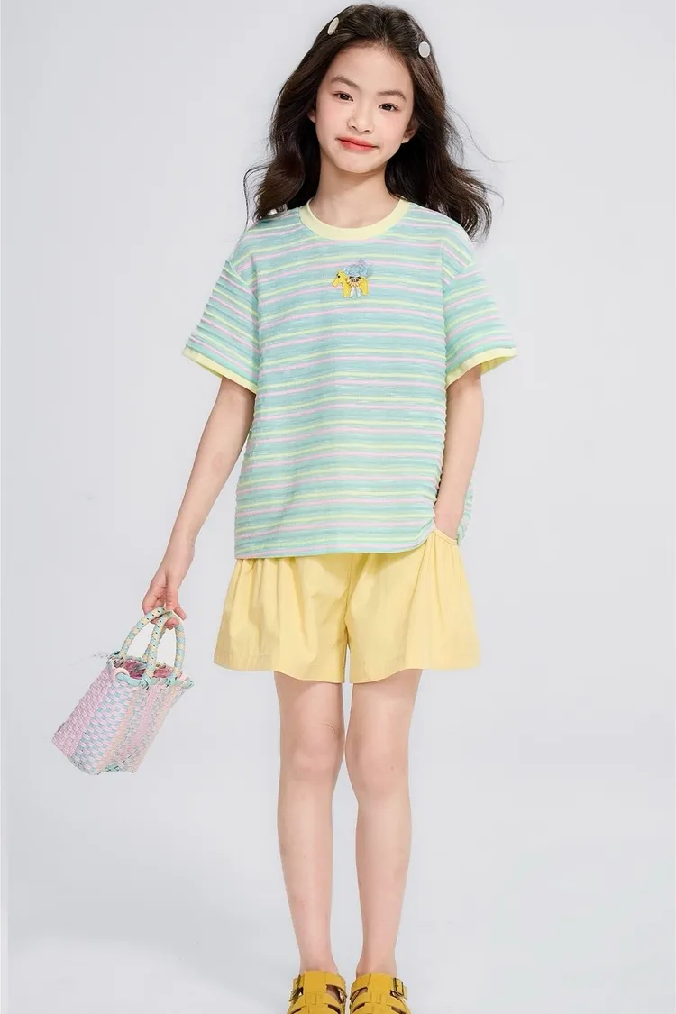 條紋雲彩棉撞色慵懶TEE