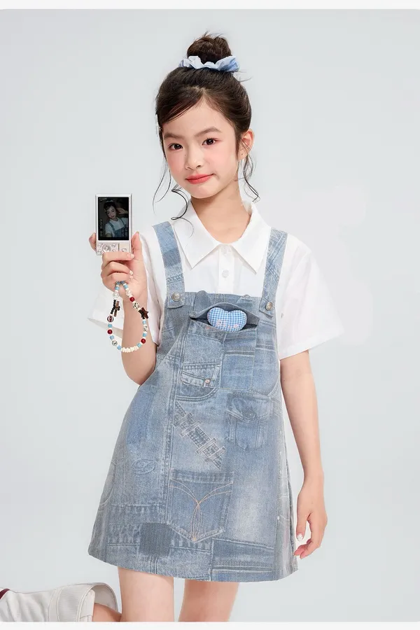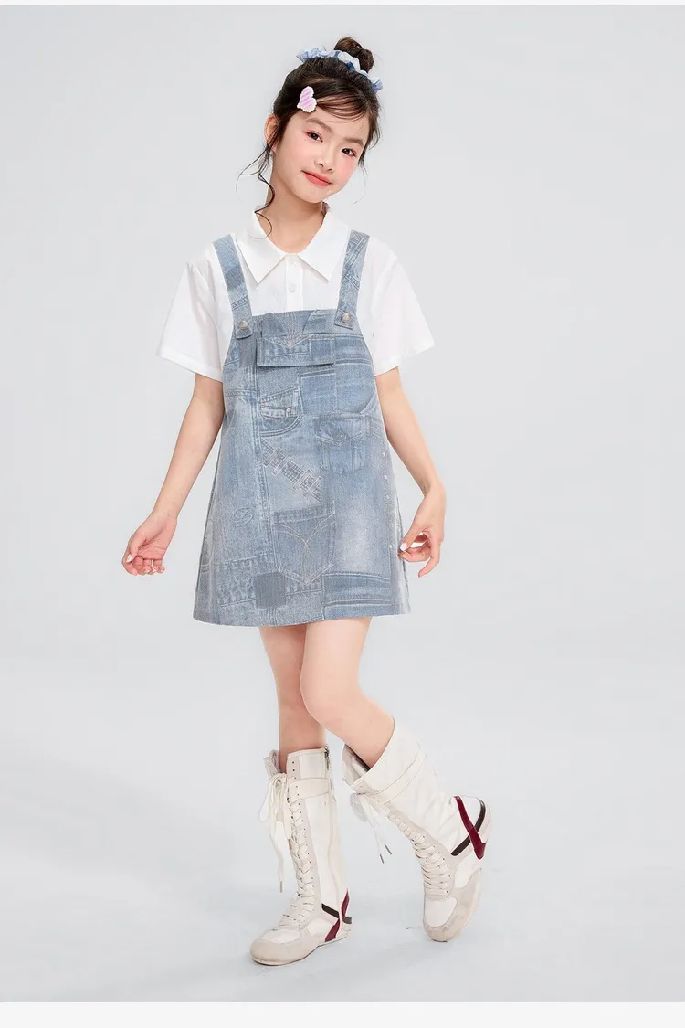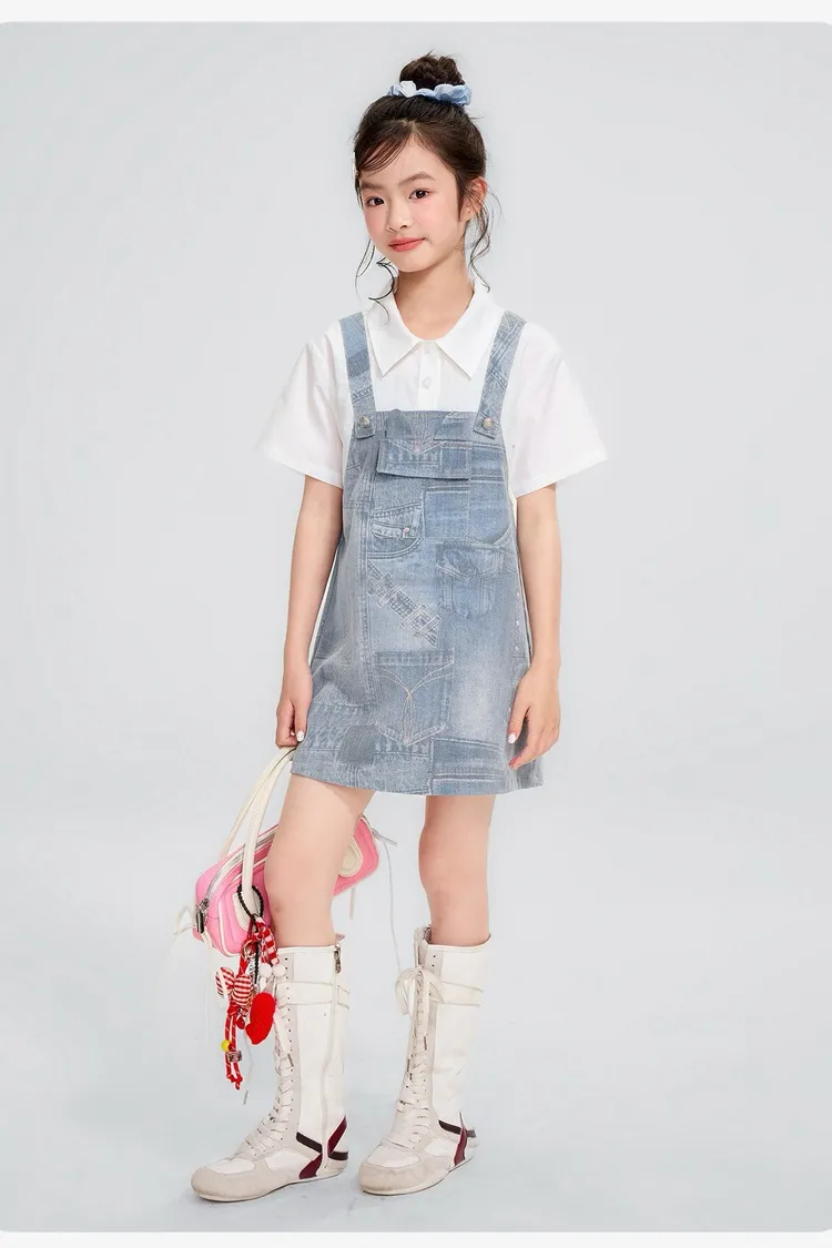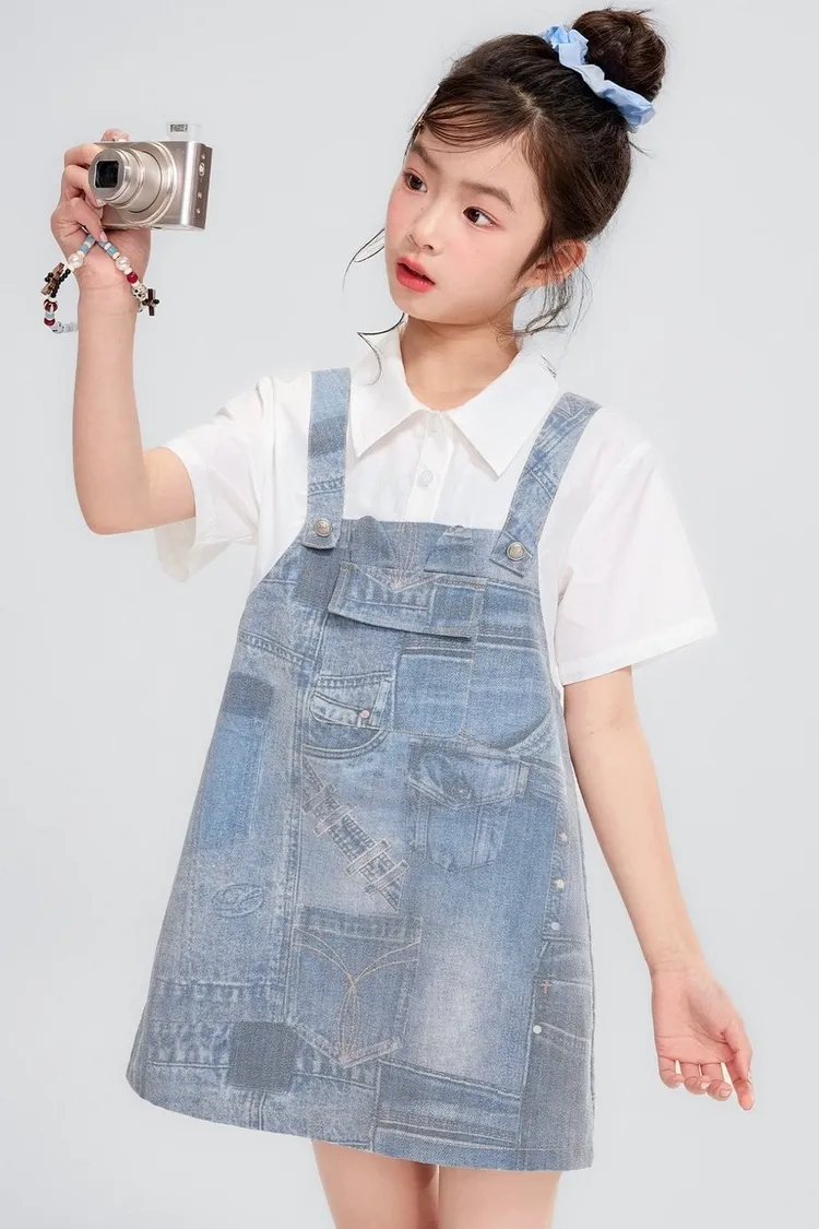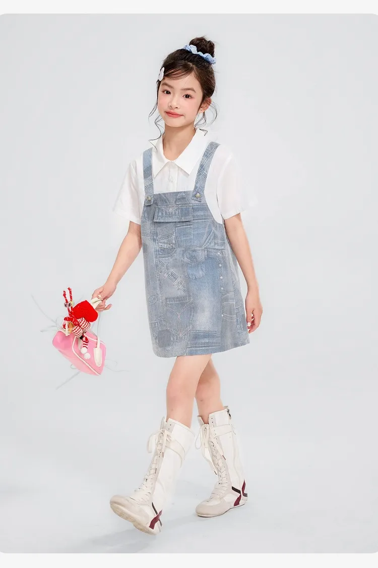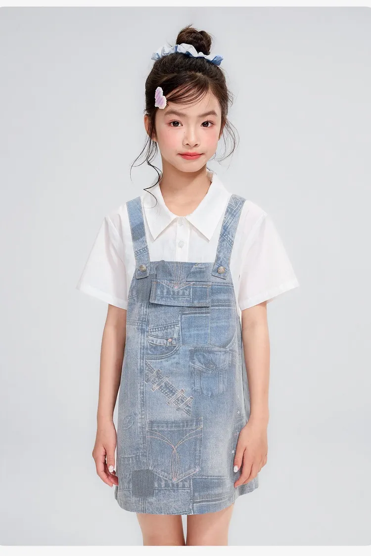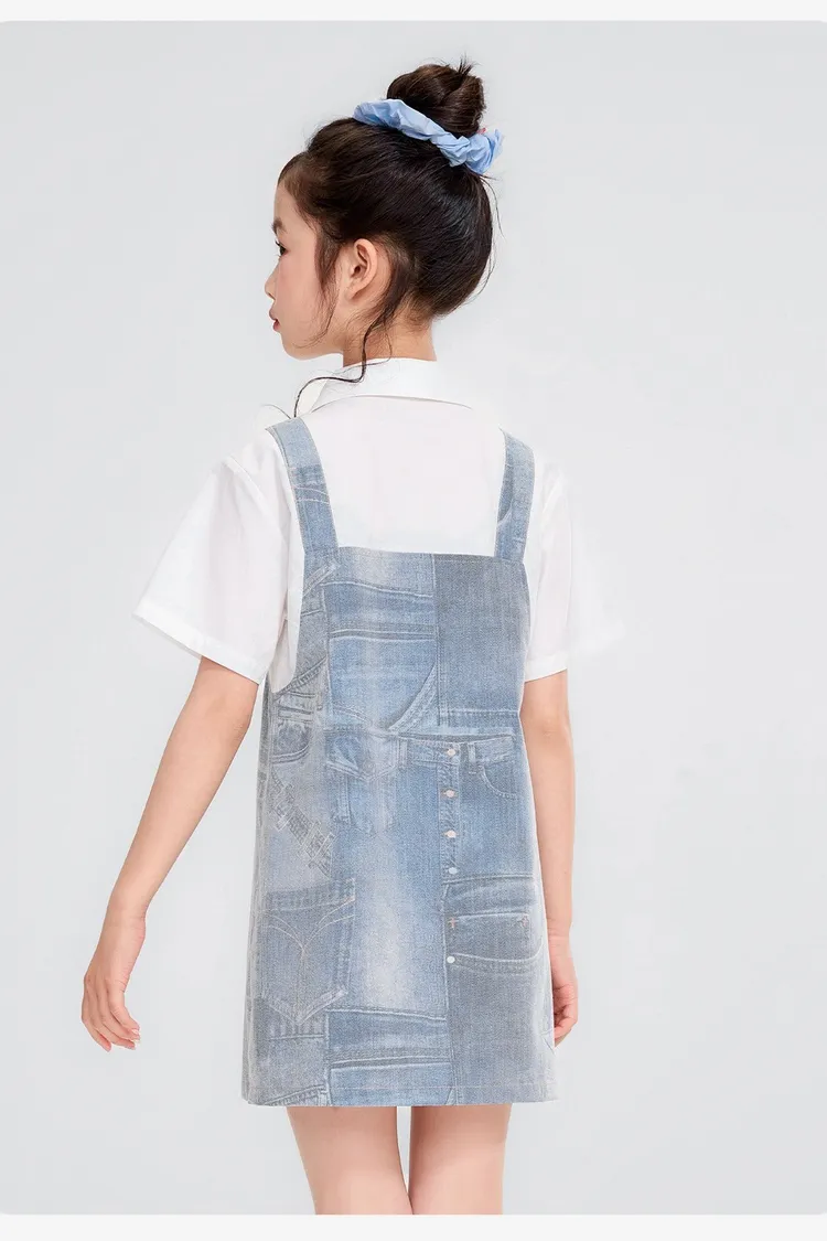 假兩件牛仔口袋雲感連身裙