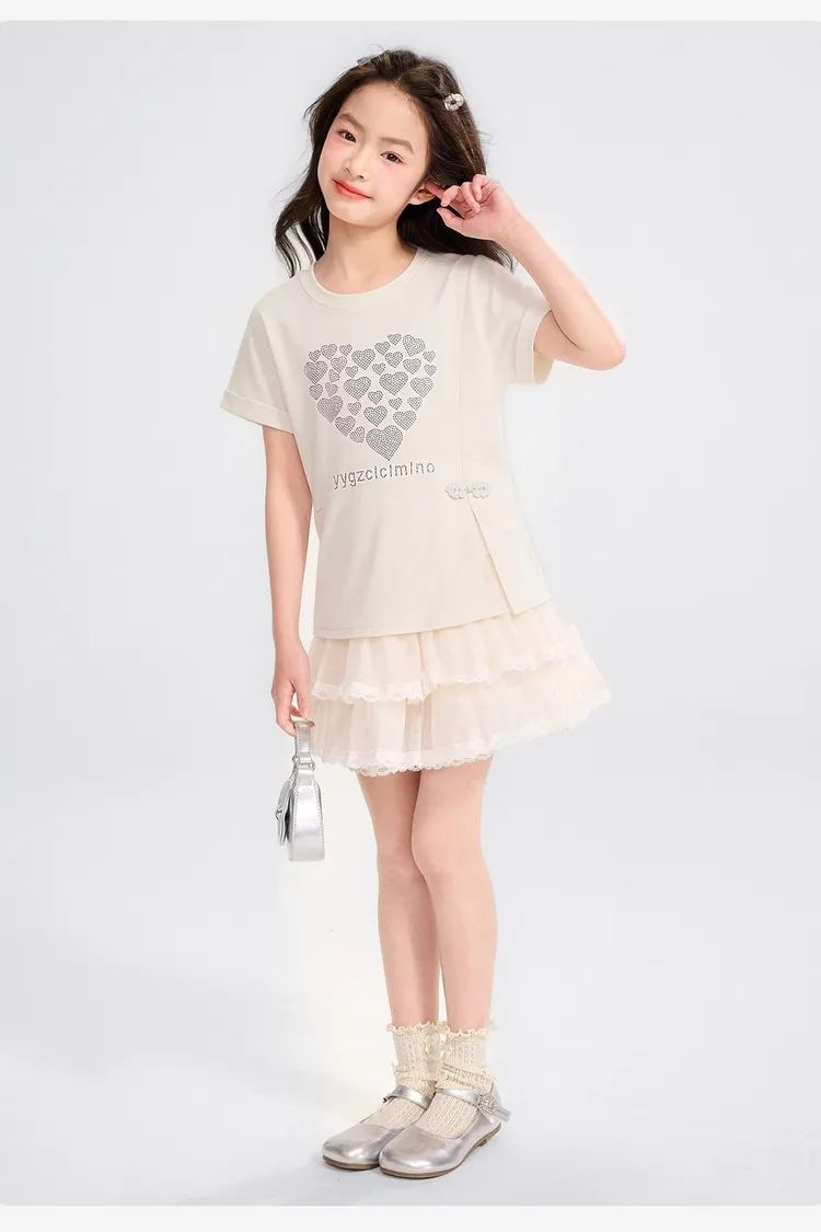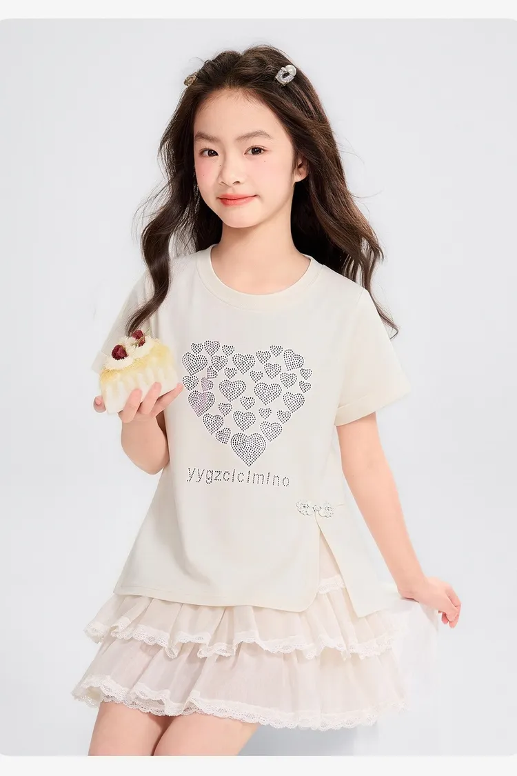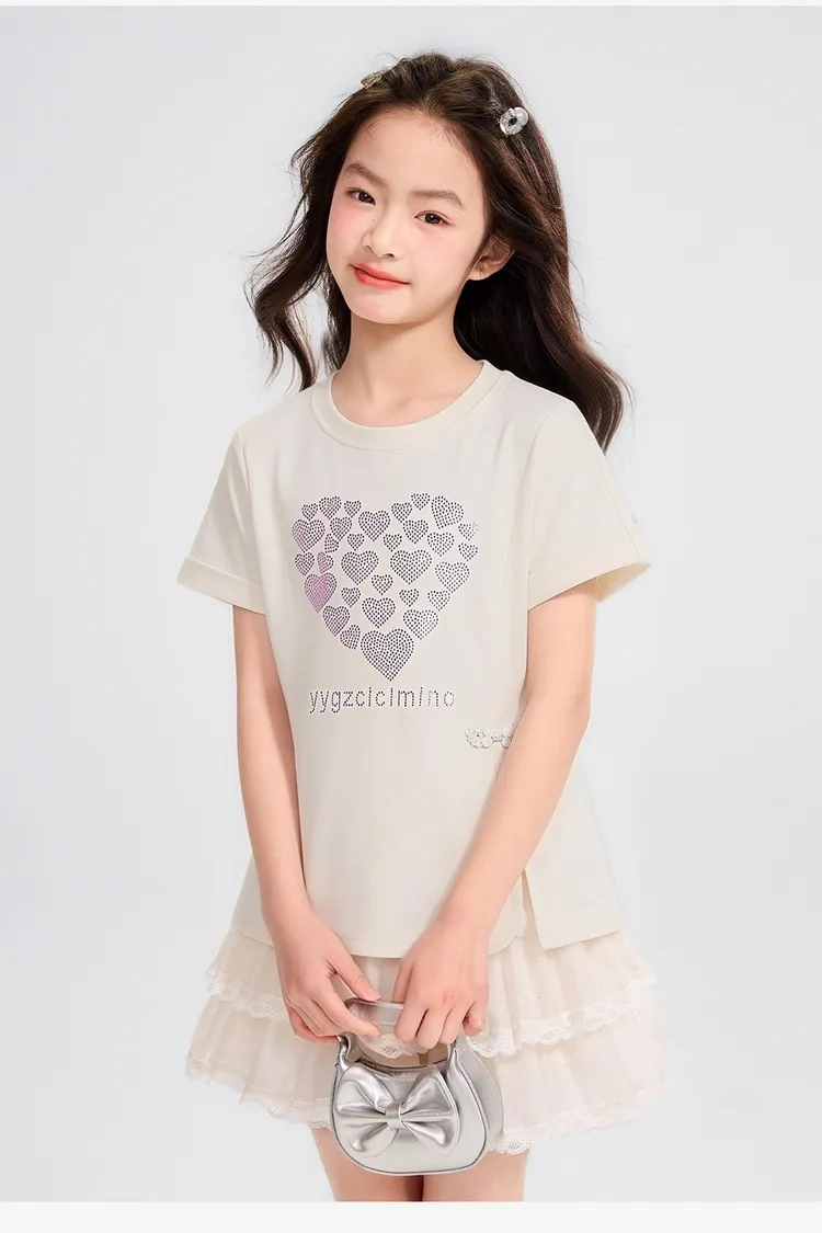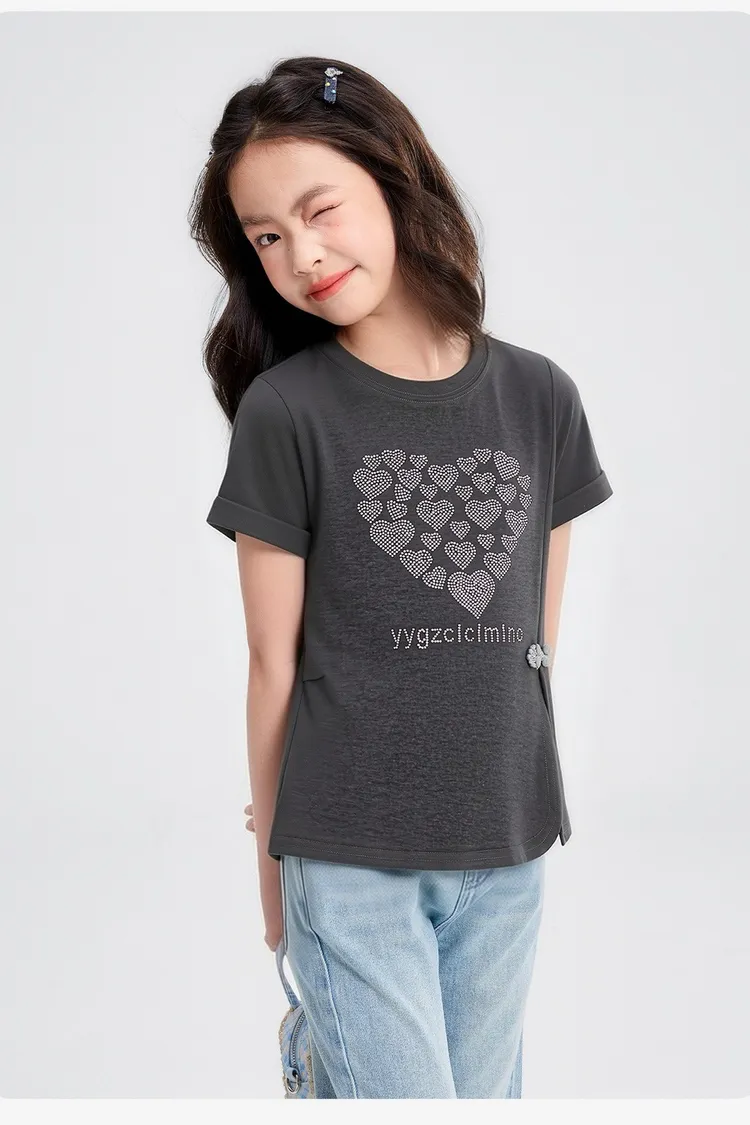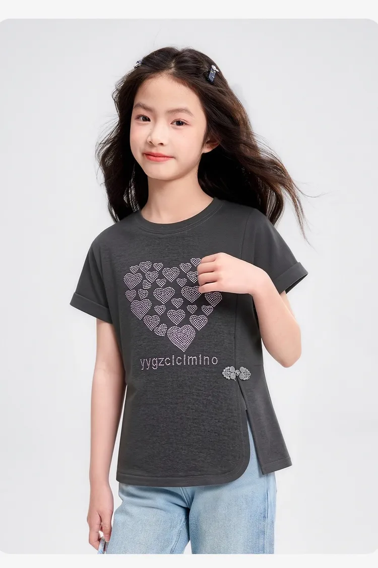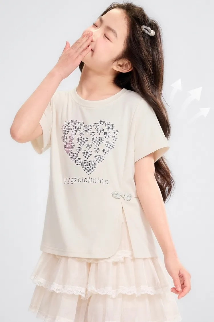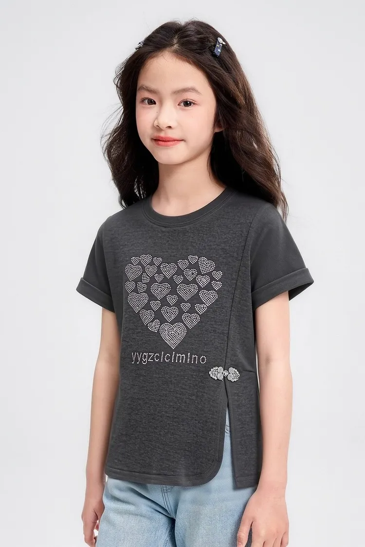 愛心燙鑽側開衩涼感TEE