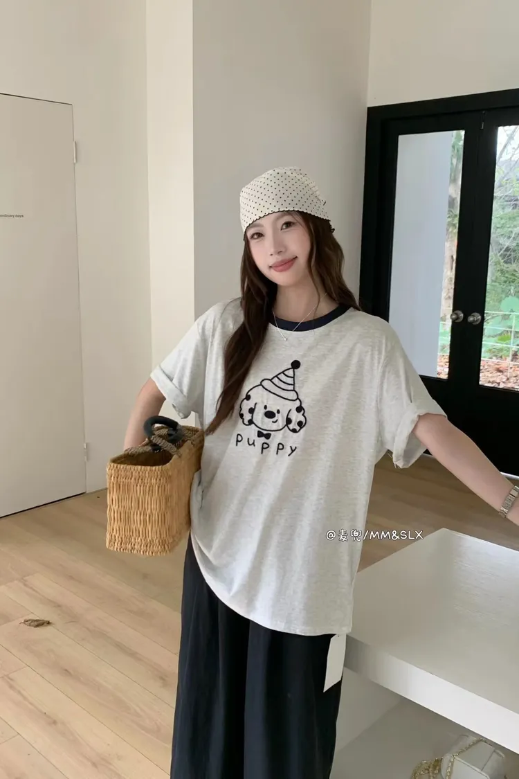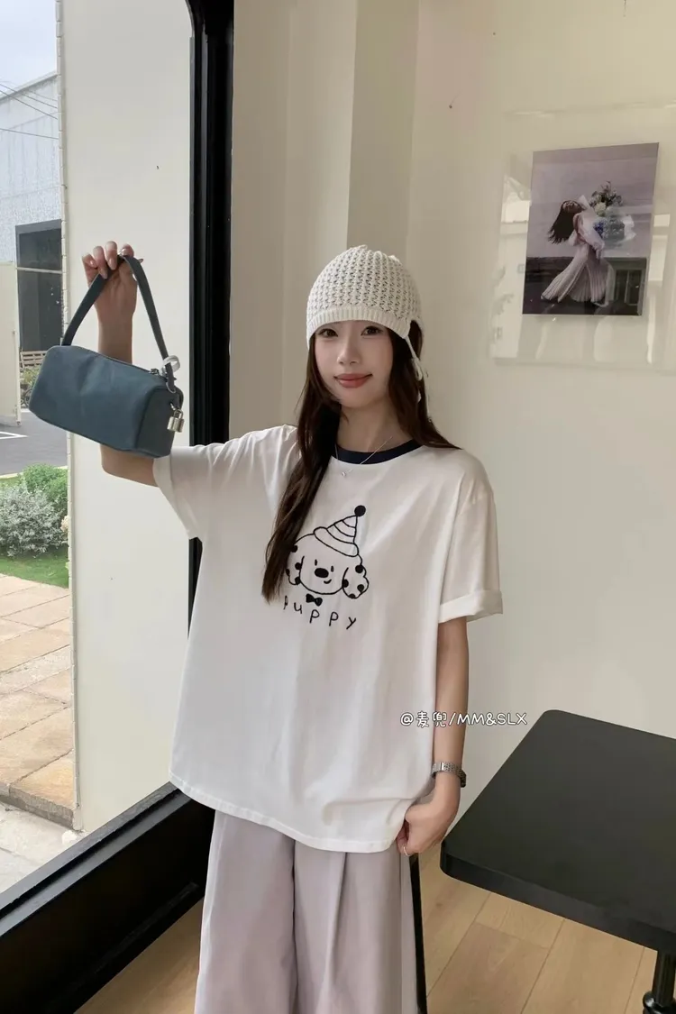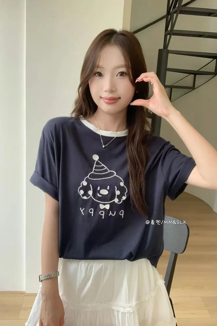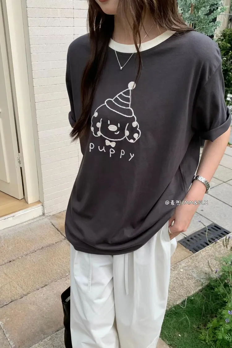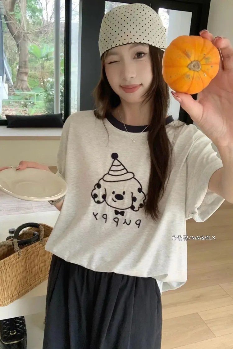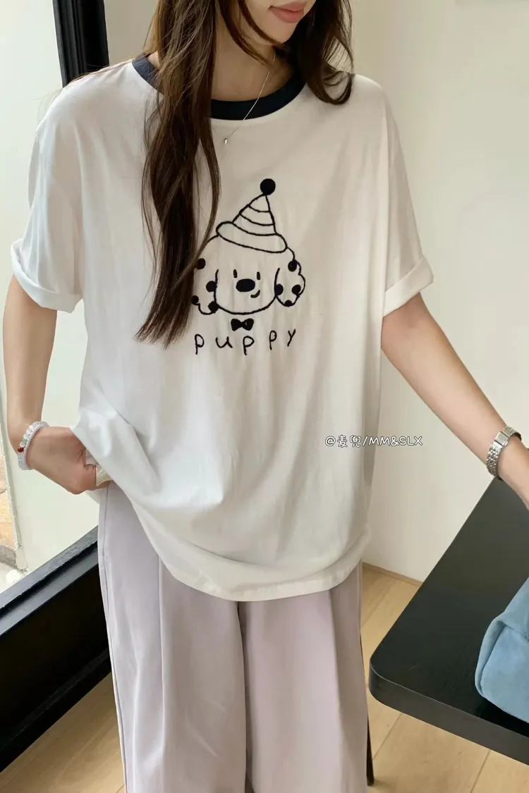 重工刺繡慶生帽小狗冰爽棉TEE