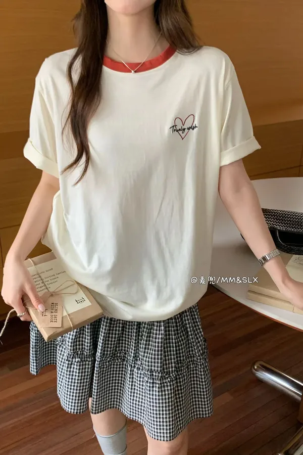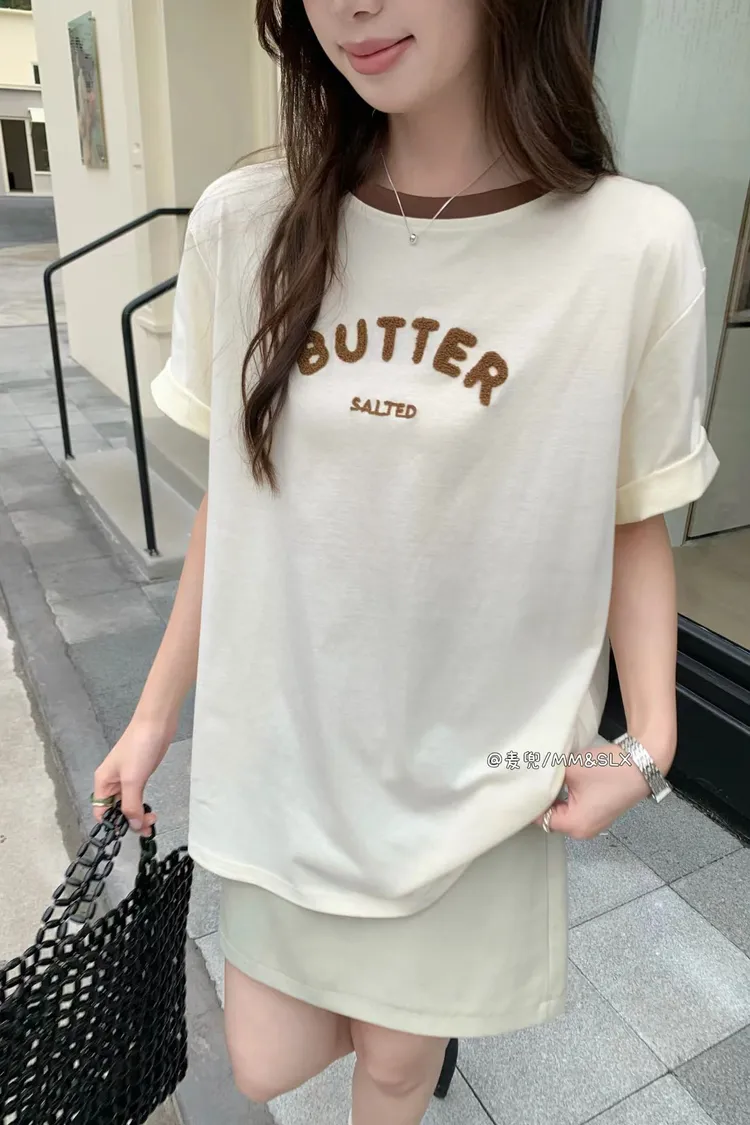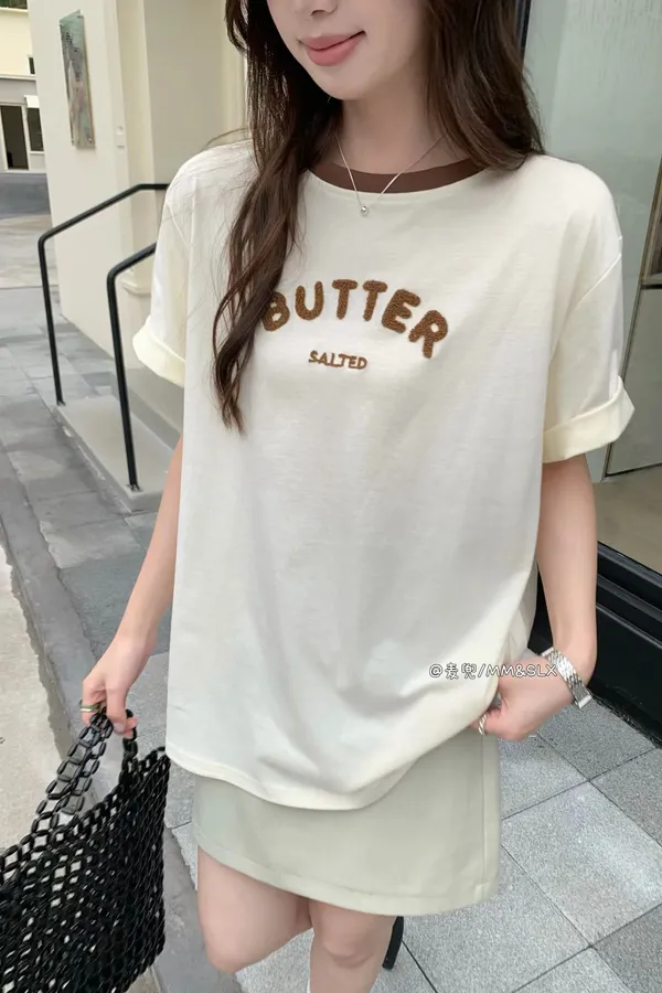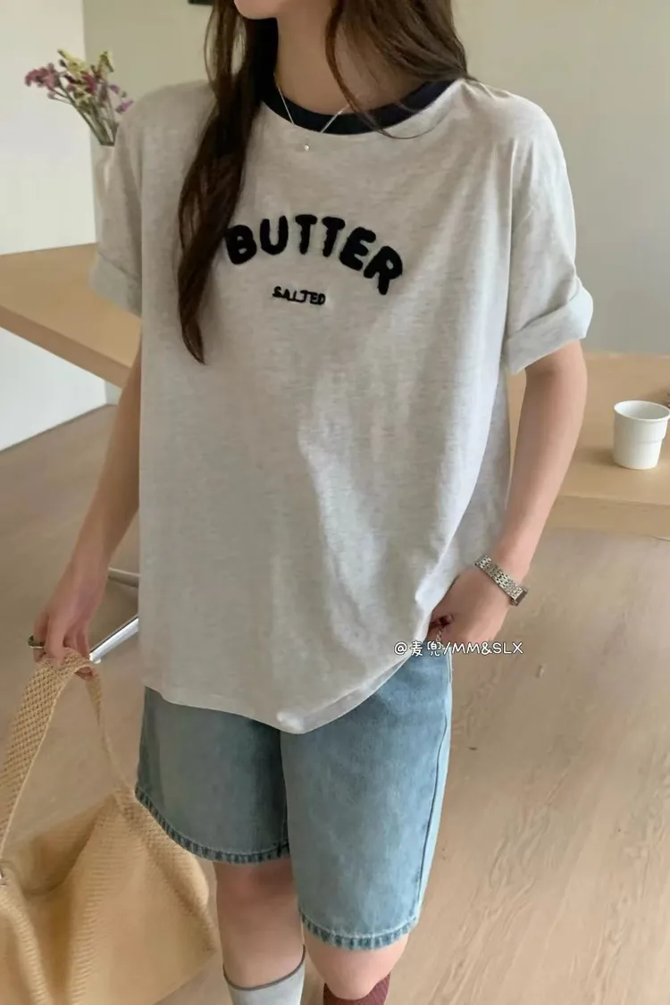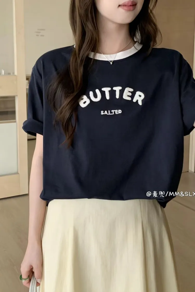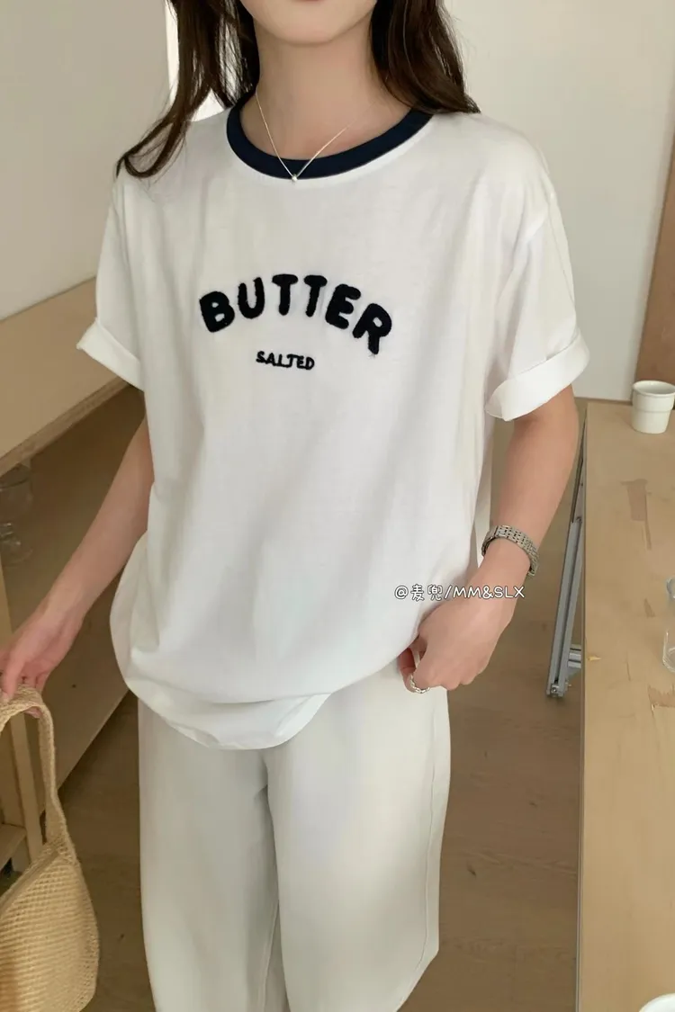 重工毛巾繡字母撞色領冰爽棉TEE