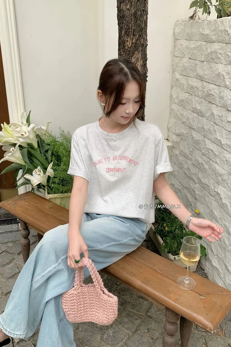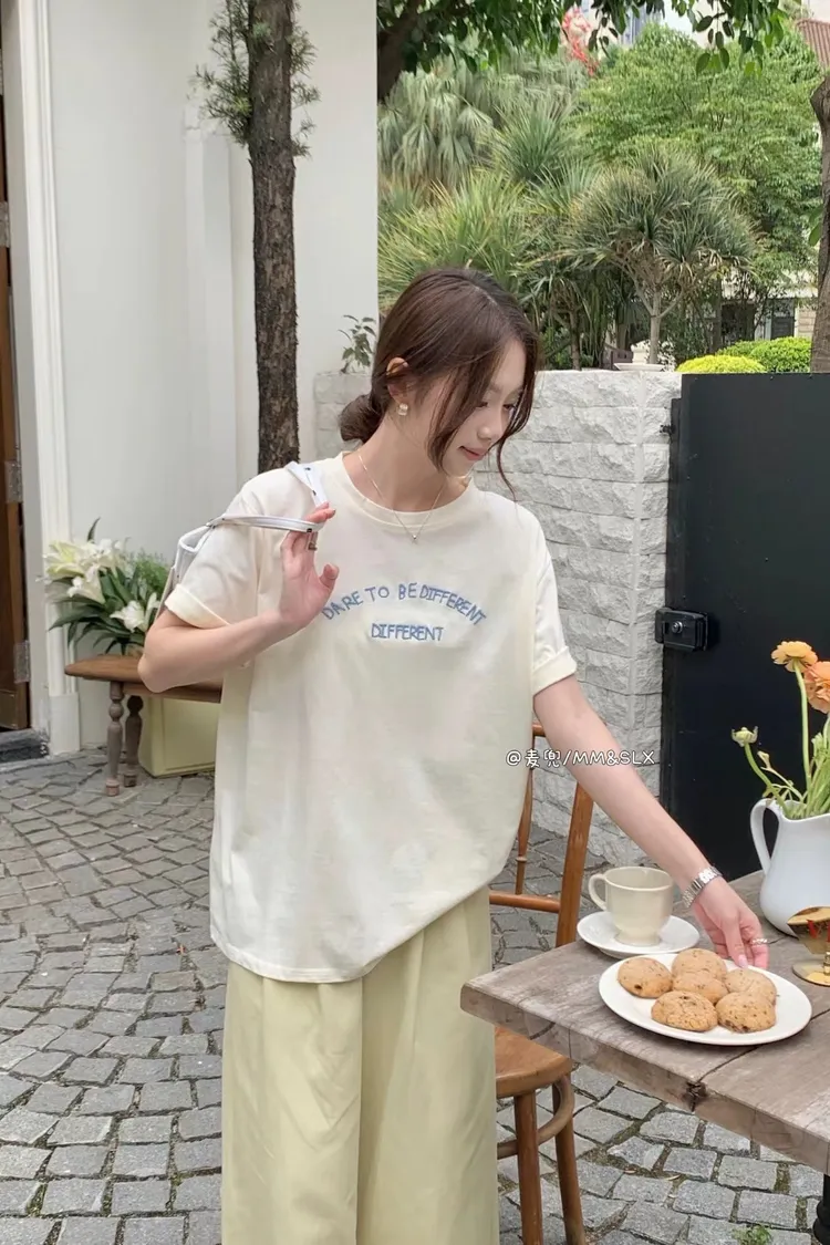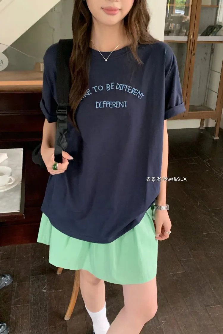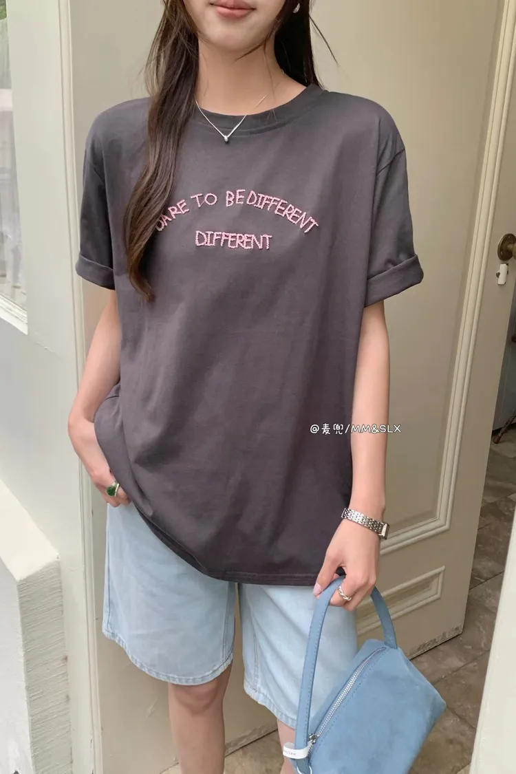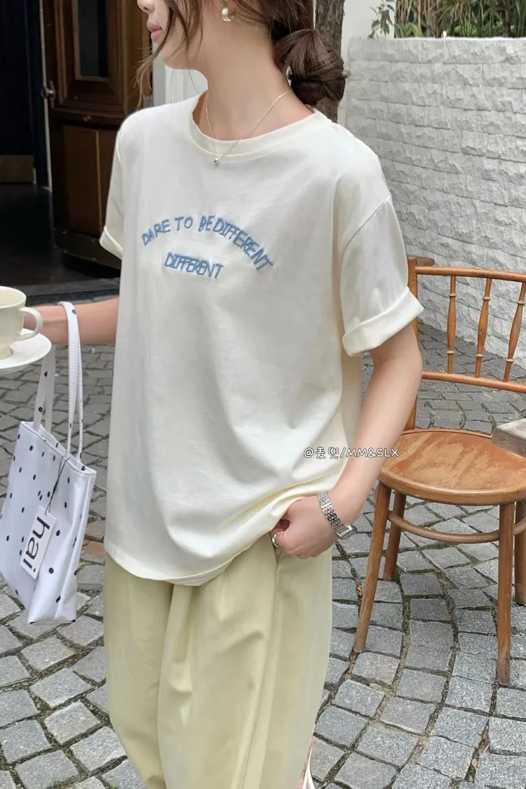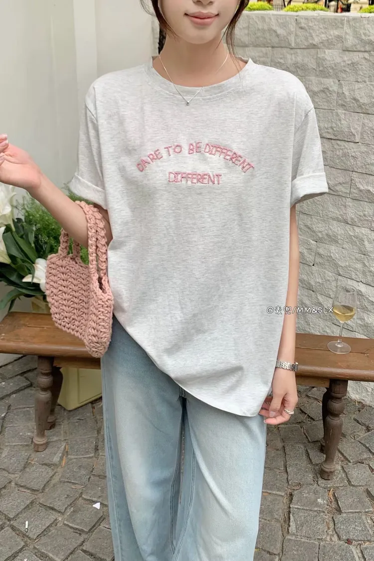 重工刺繡字母冰爽棉TEE