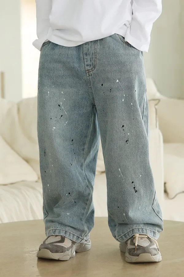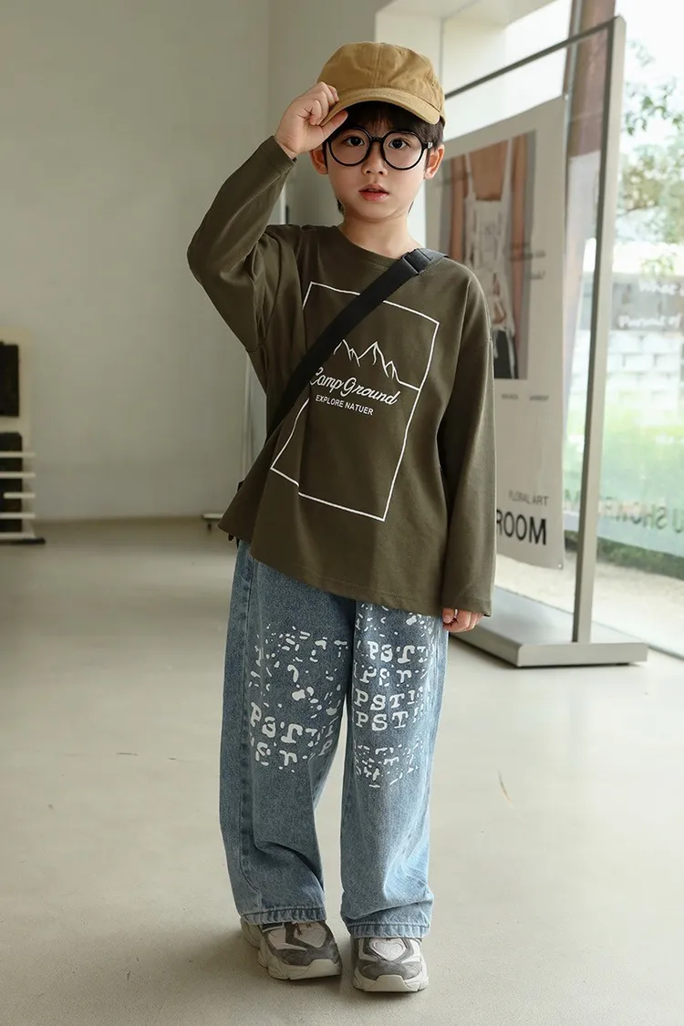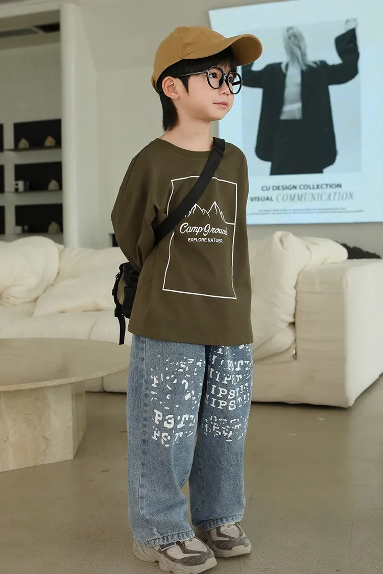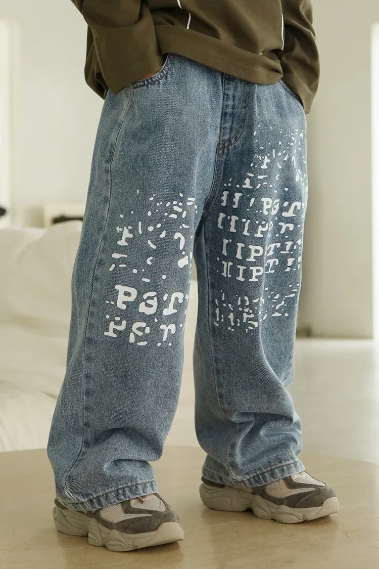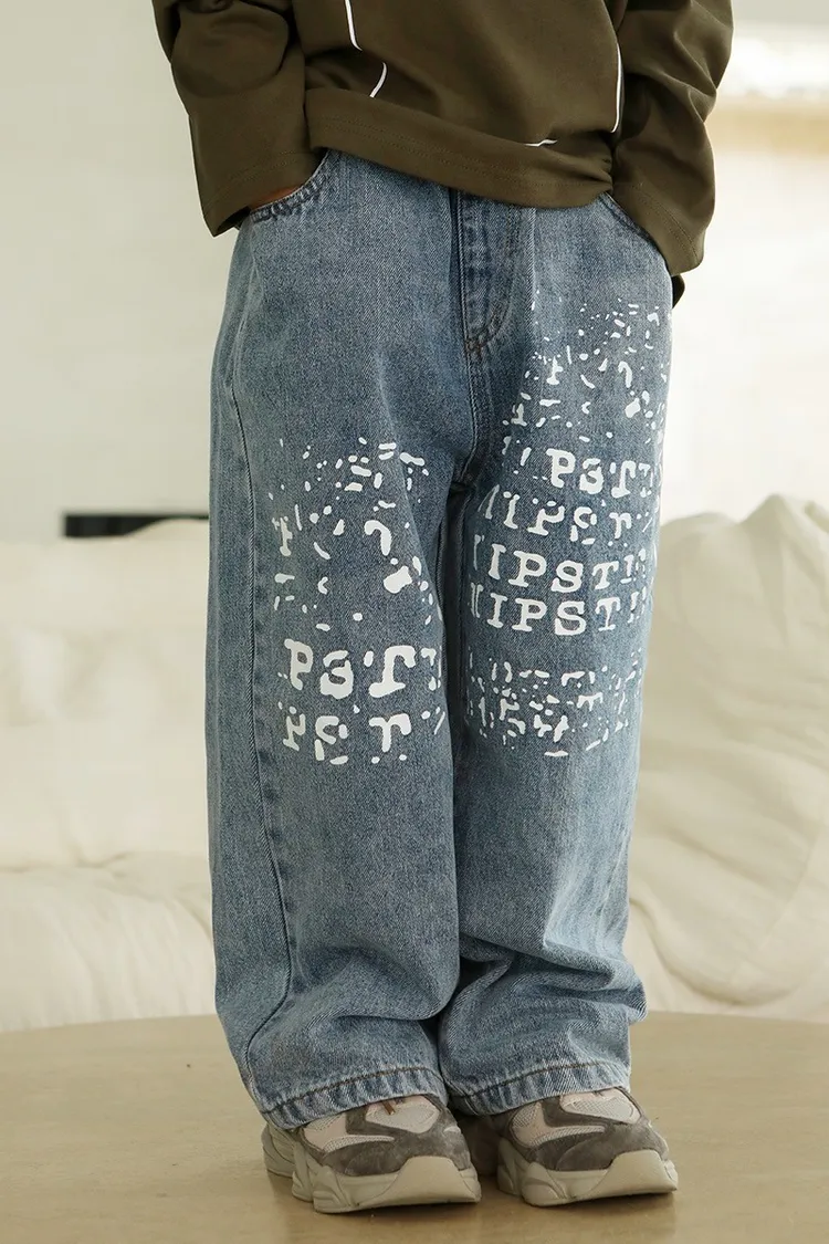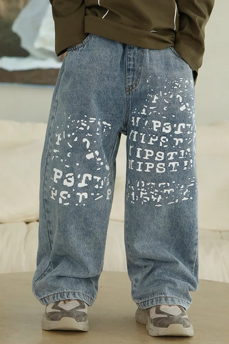 斑駁字母軟牛仔長褲