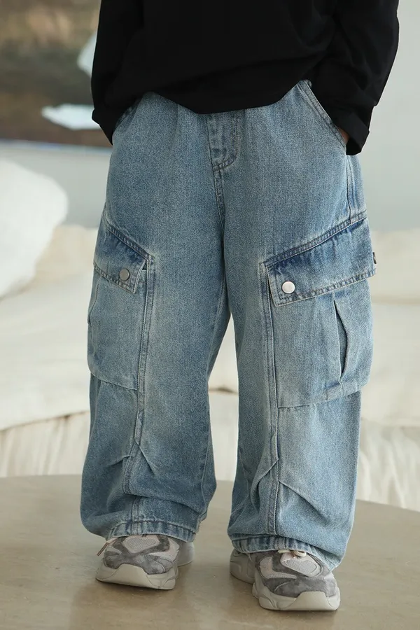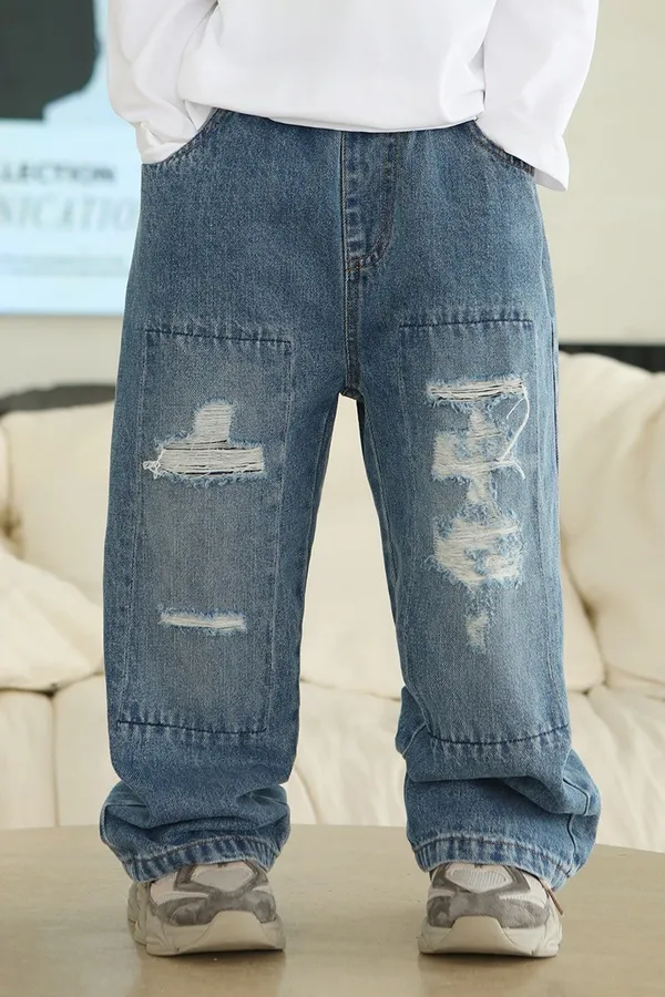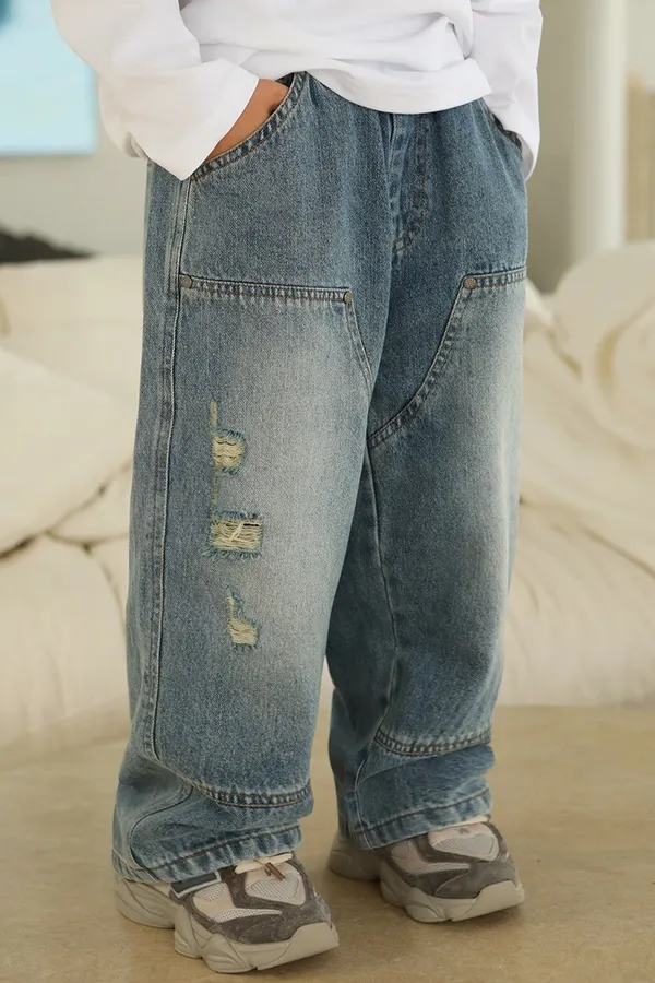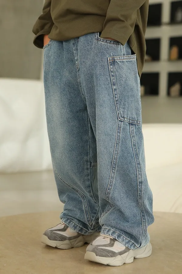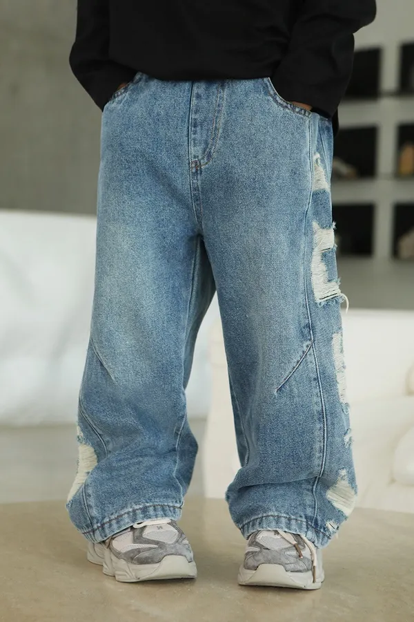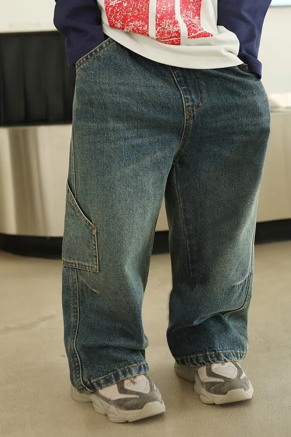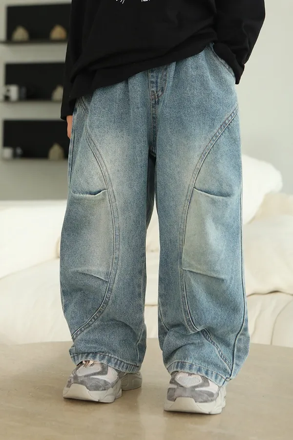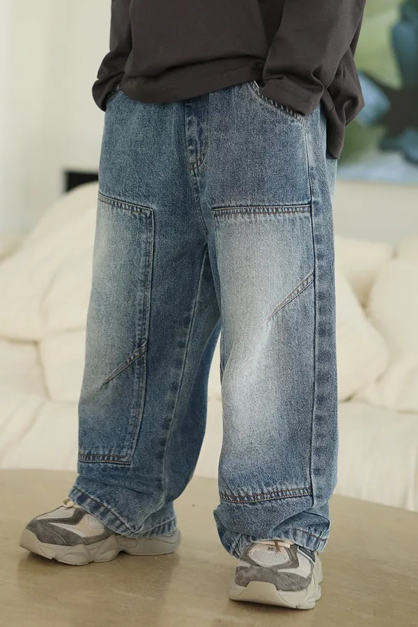 斑駁字母軟牛仔長褲