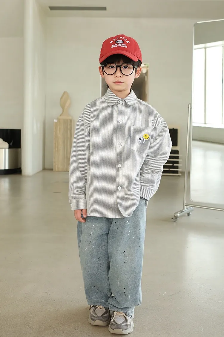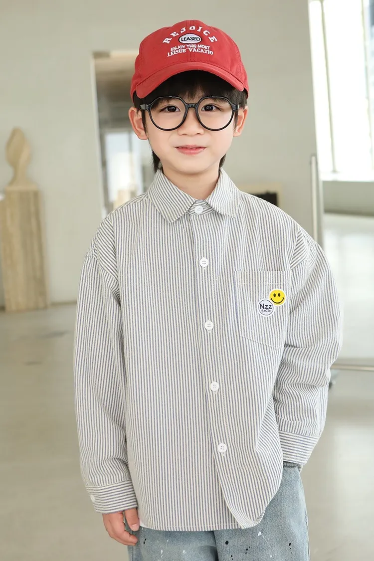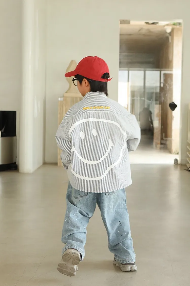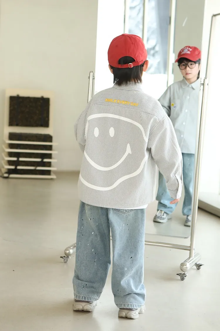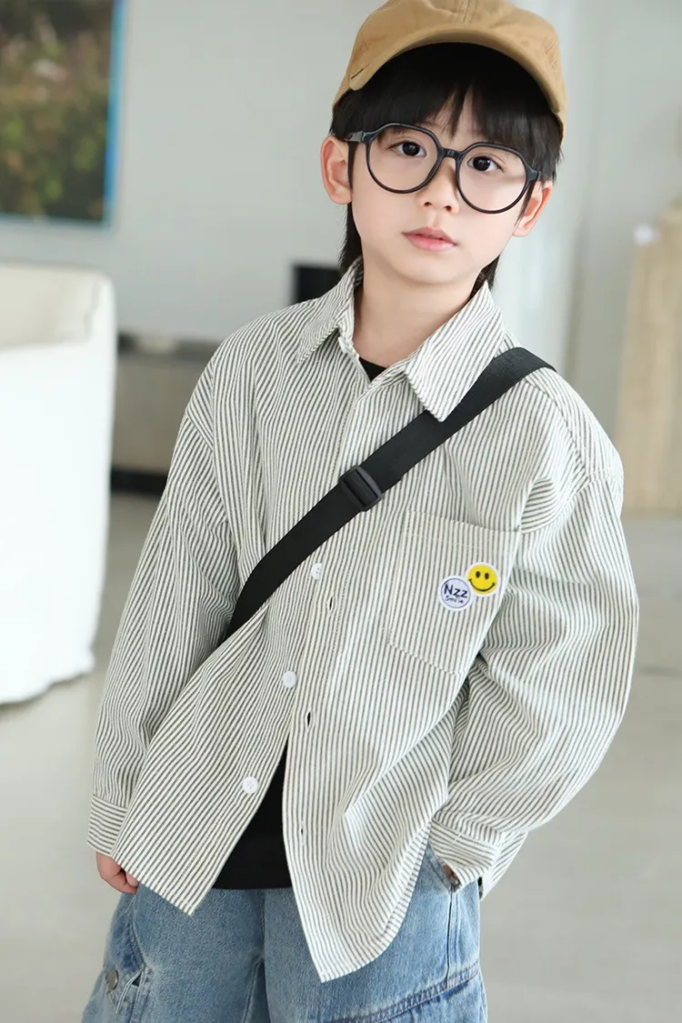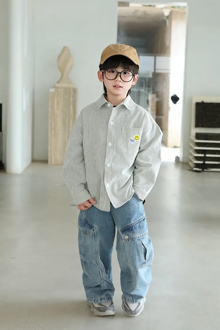 大笑臉口袋直紋襯衫