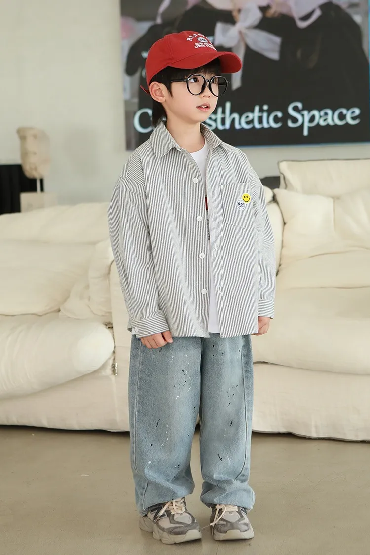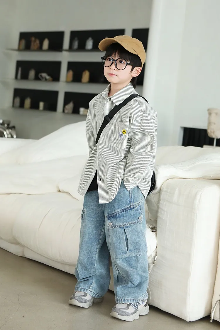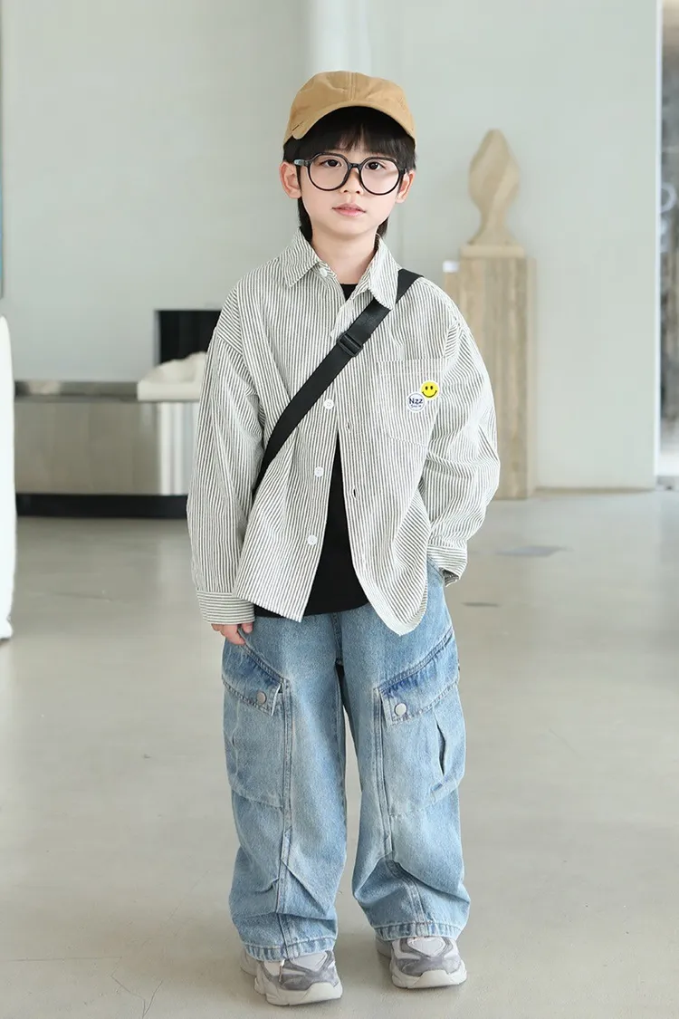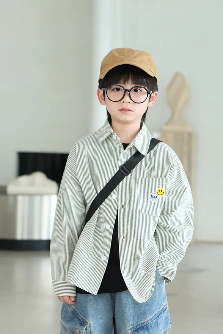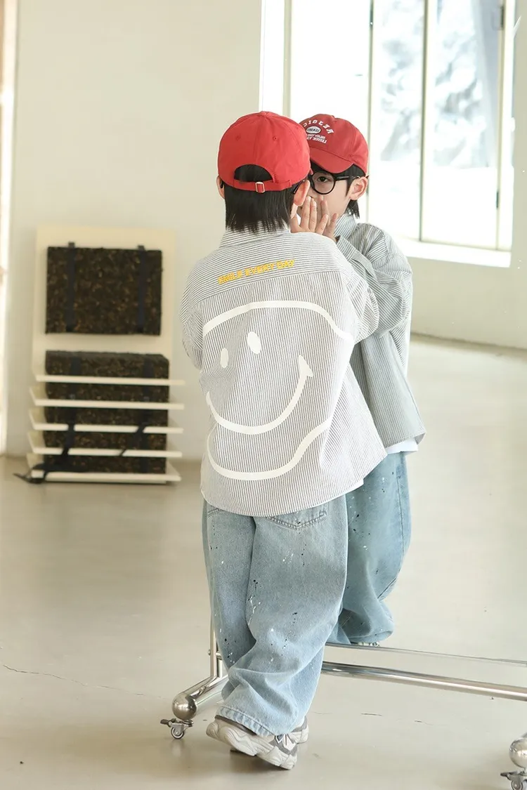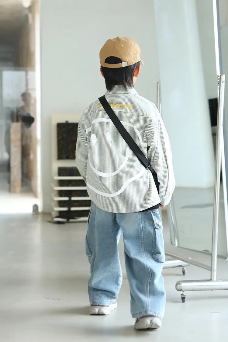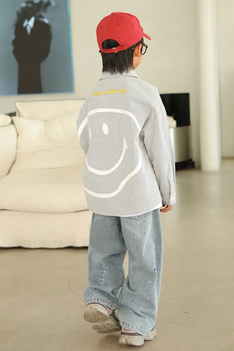 大笑臉口袋直紋襯衫