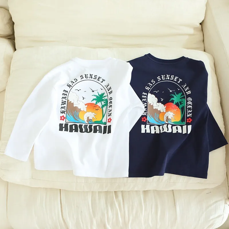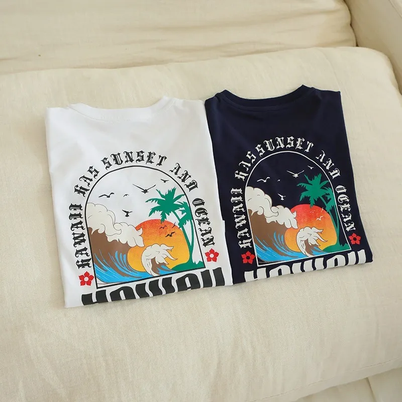 夕陽海浪印花全棉TEE