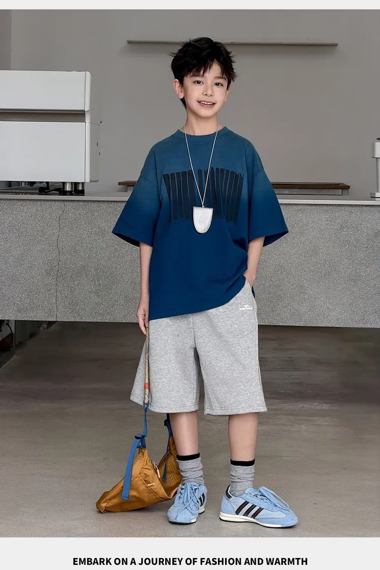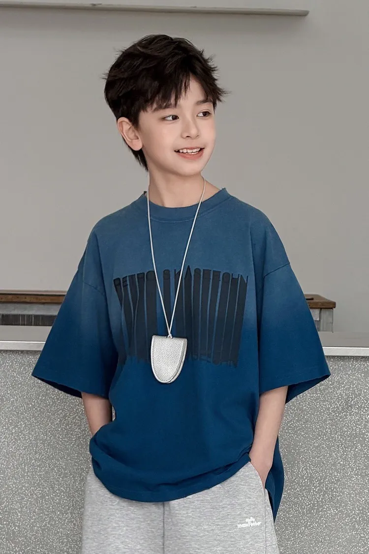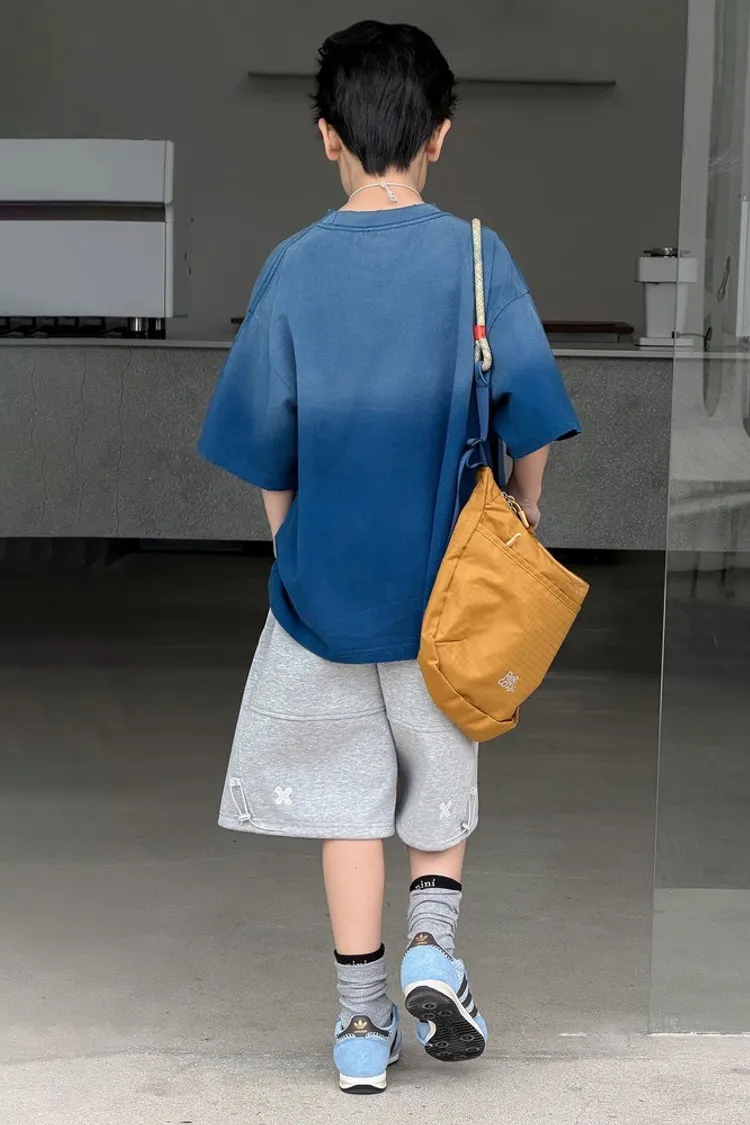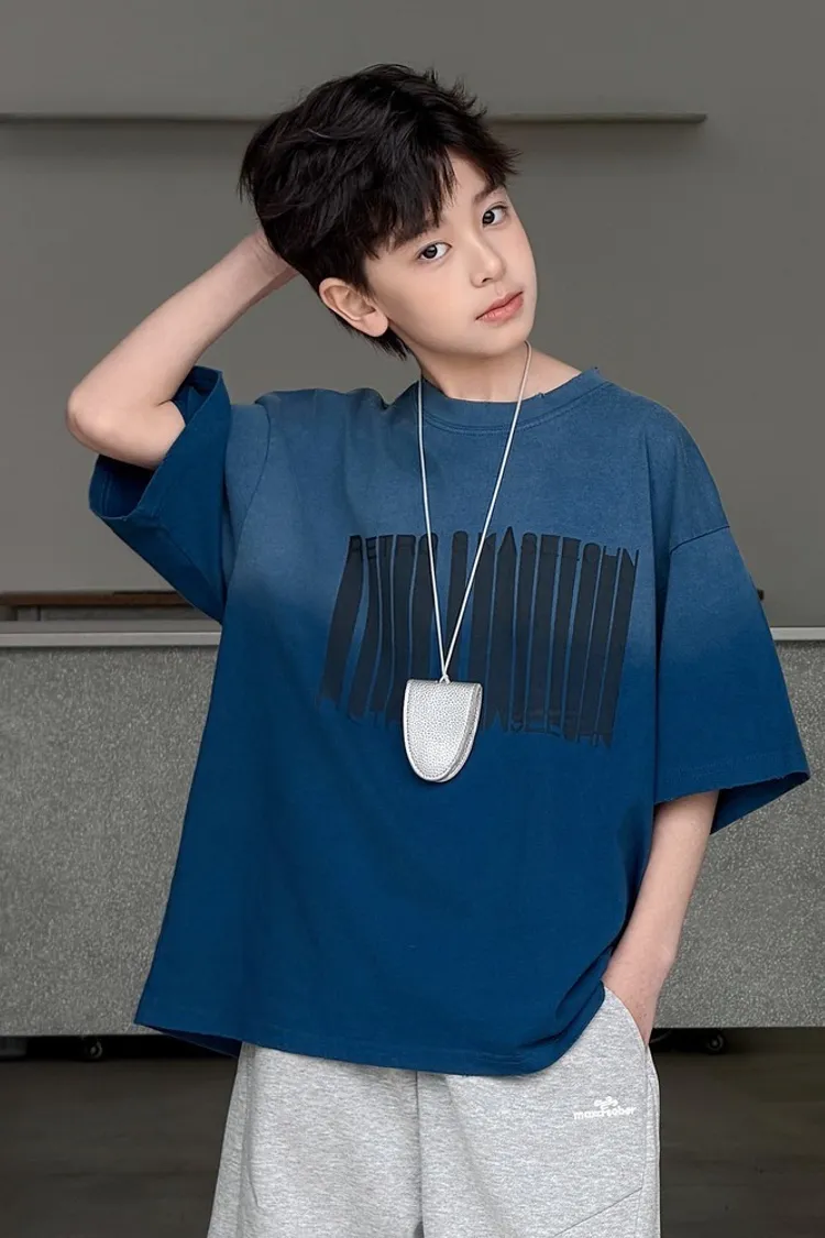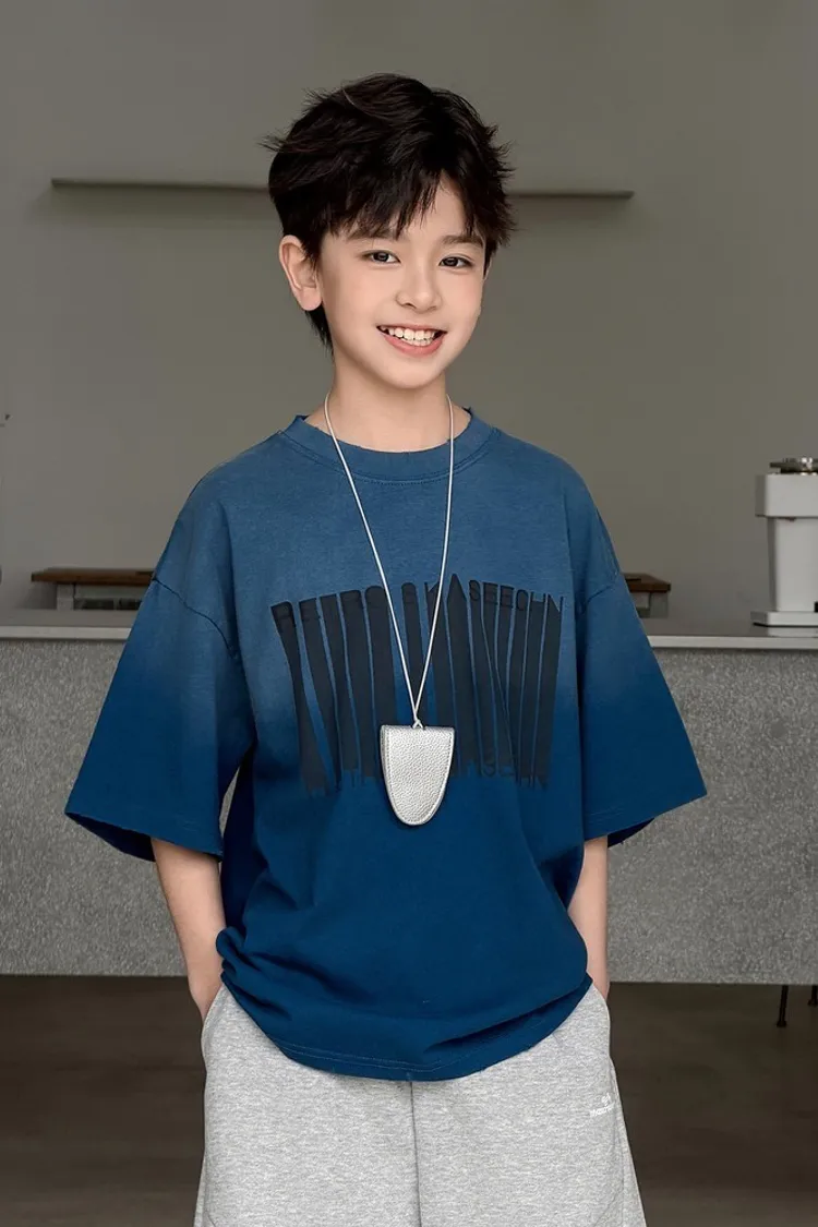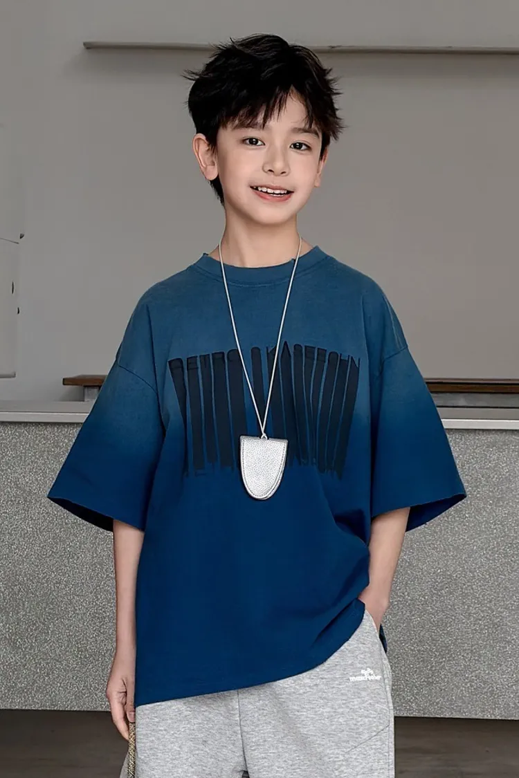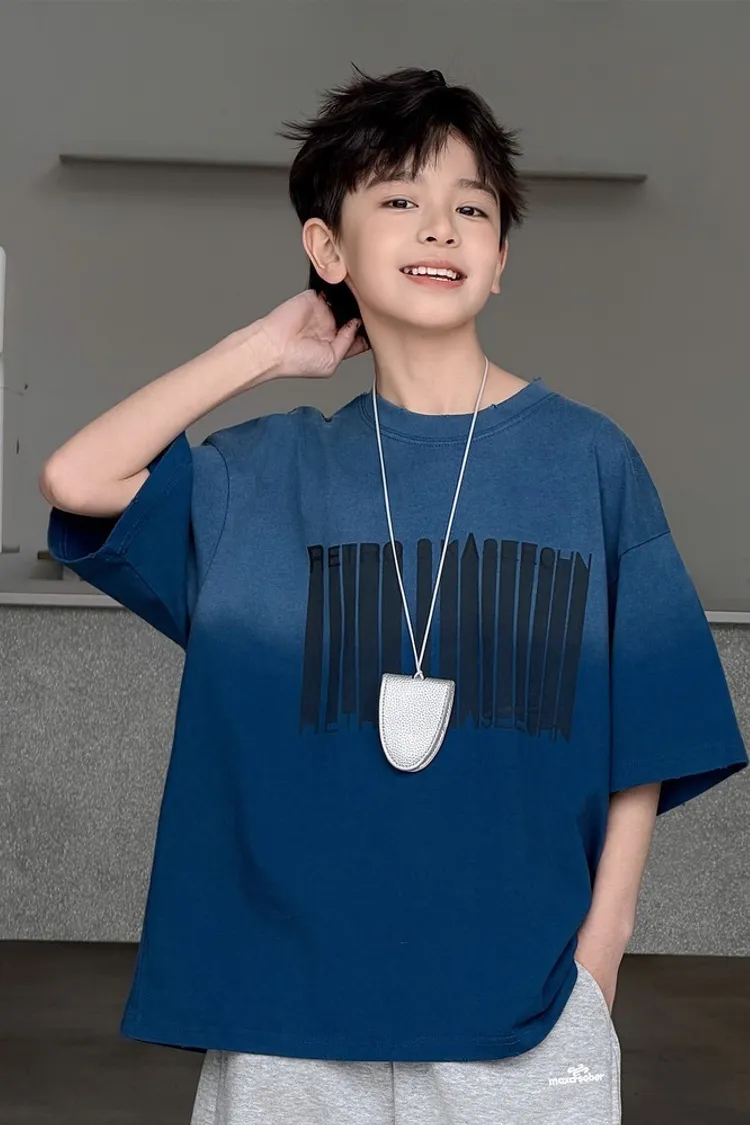 美式噴白漸變落肩袖TEE