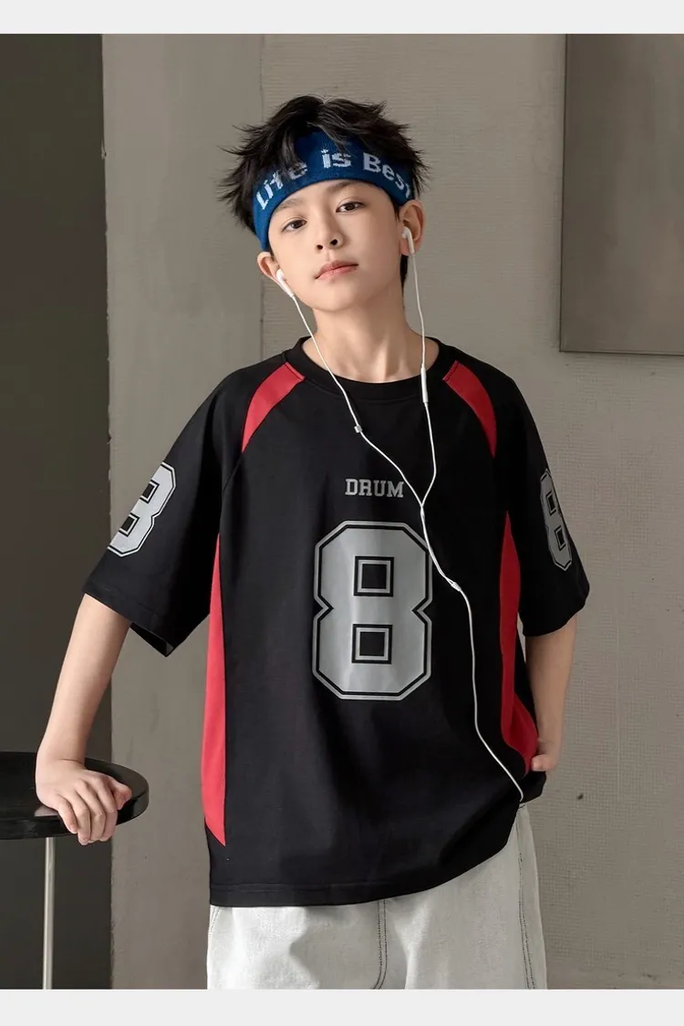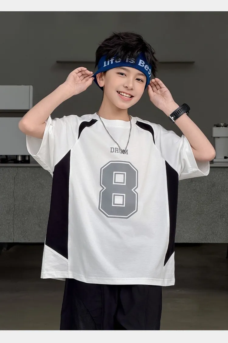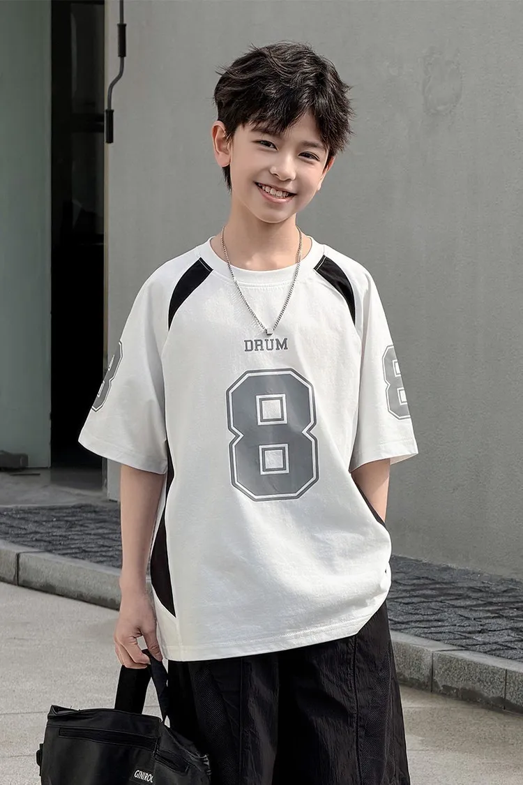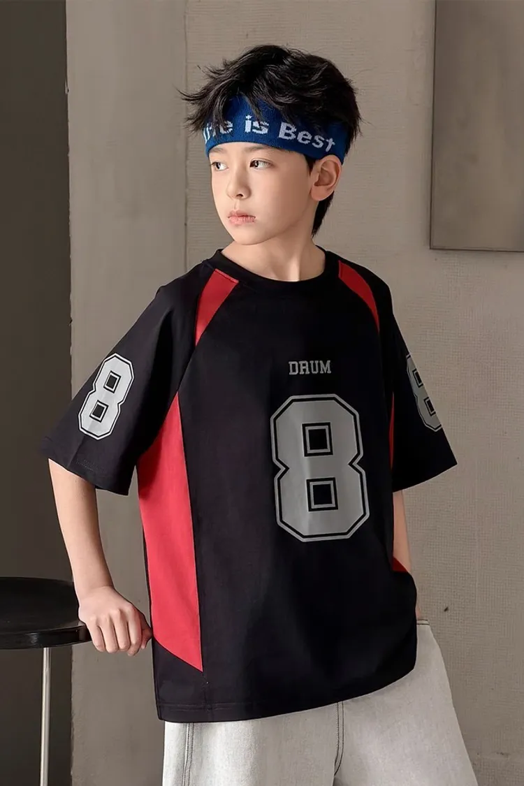 美式數字運動撞色拼接TEE