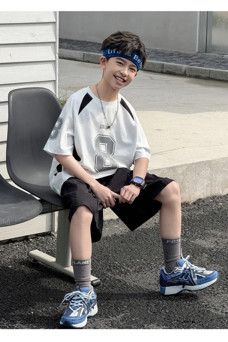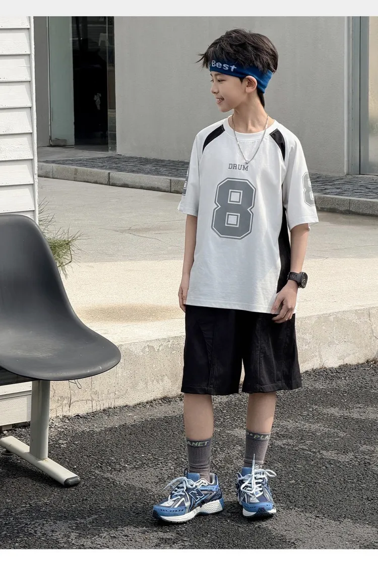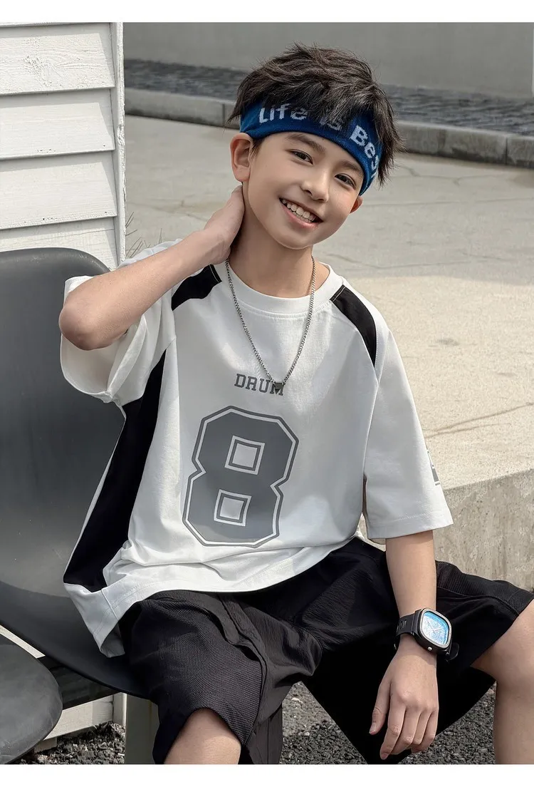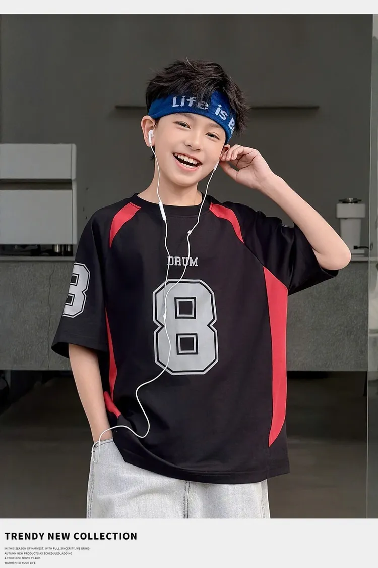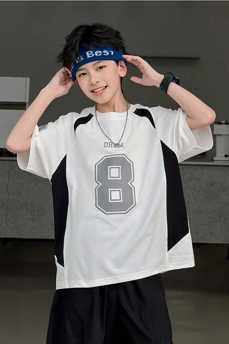 美式數字運動撞色拼接TEE