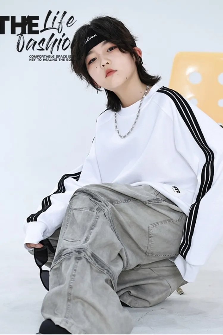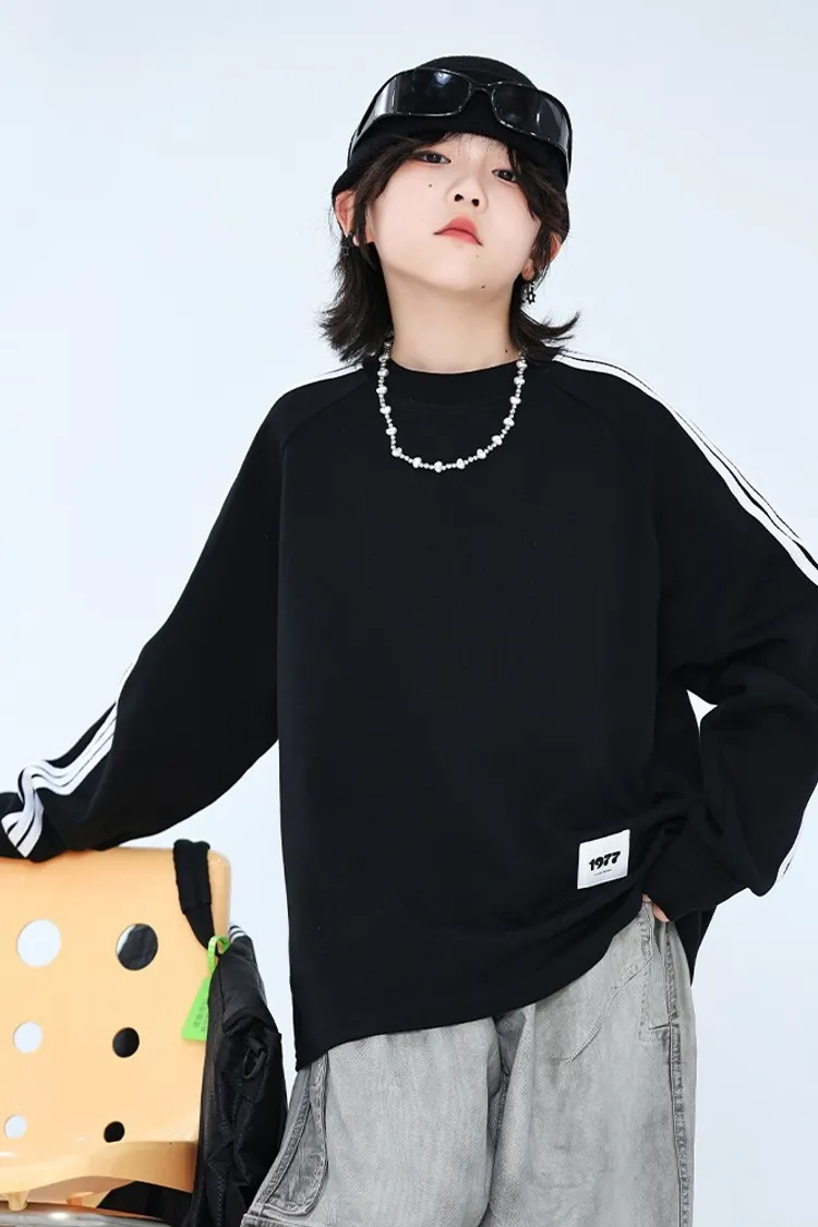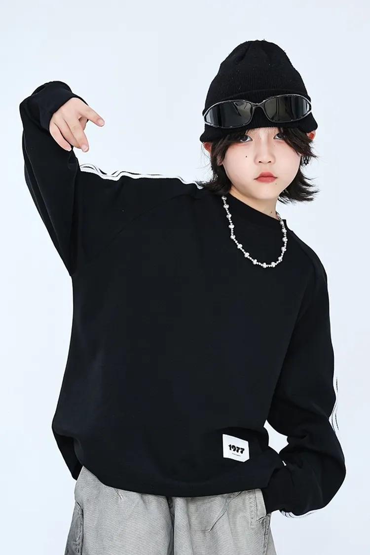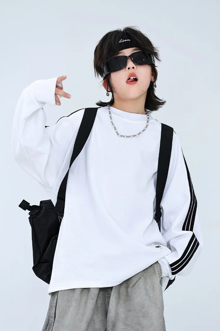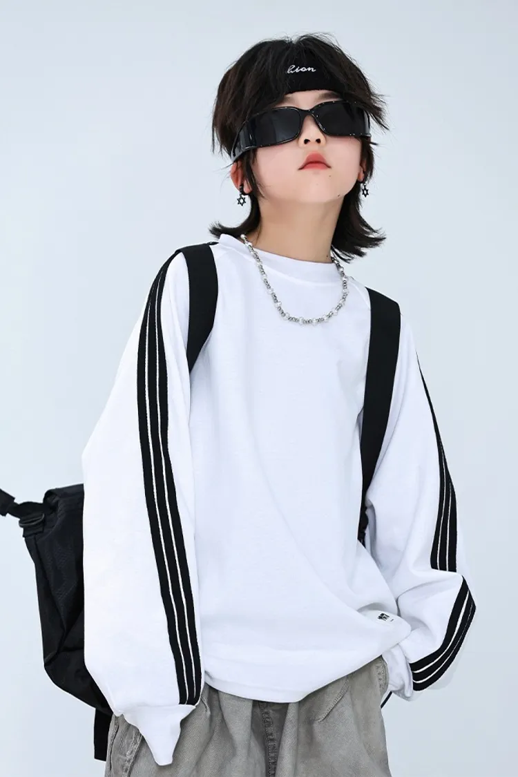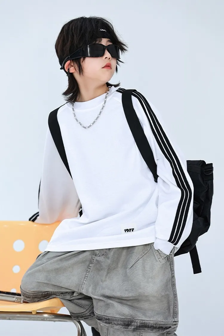 撞色織帶貼標長袖TEE
