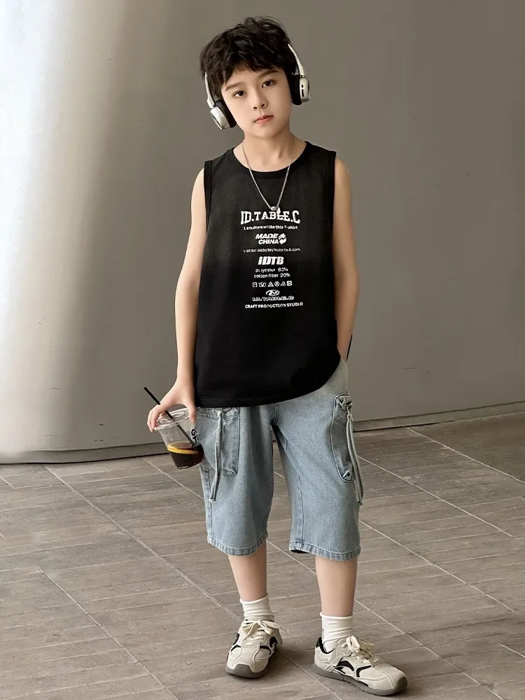 美式噴白做舊感背心
