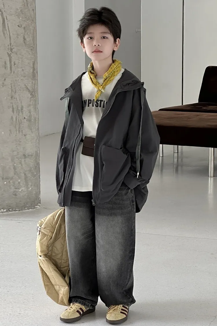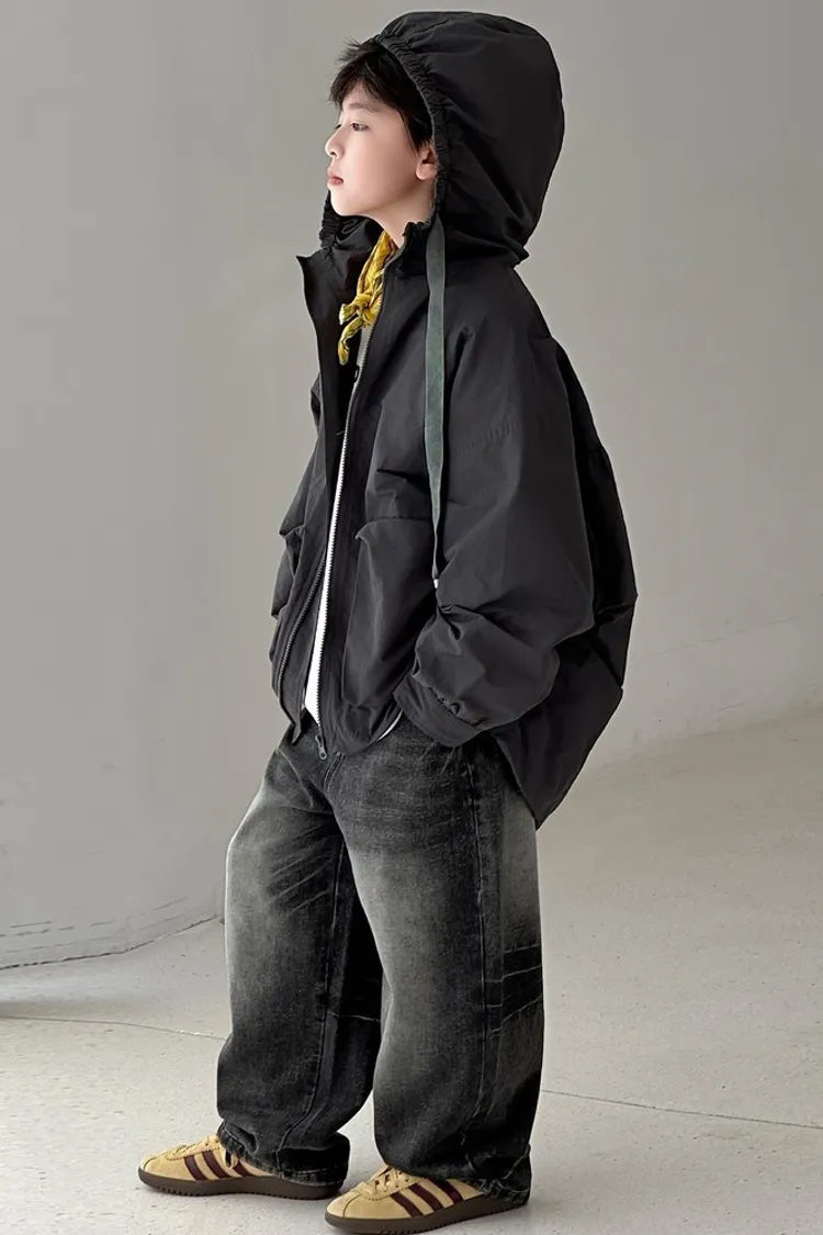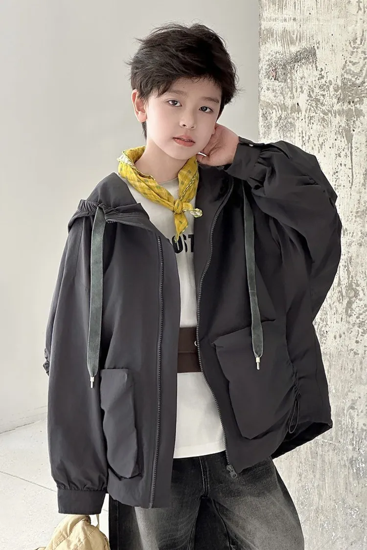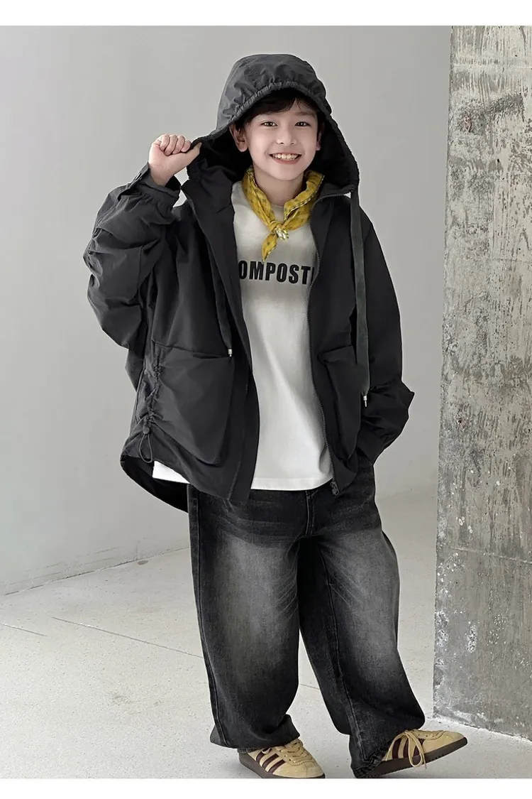 大口袋連帽寬鬆風衣外套