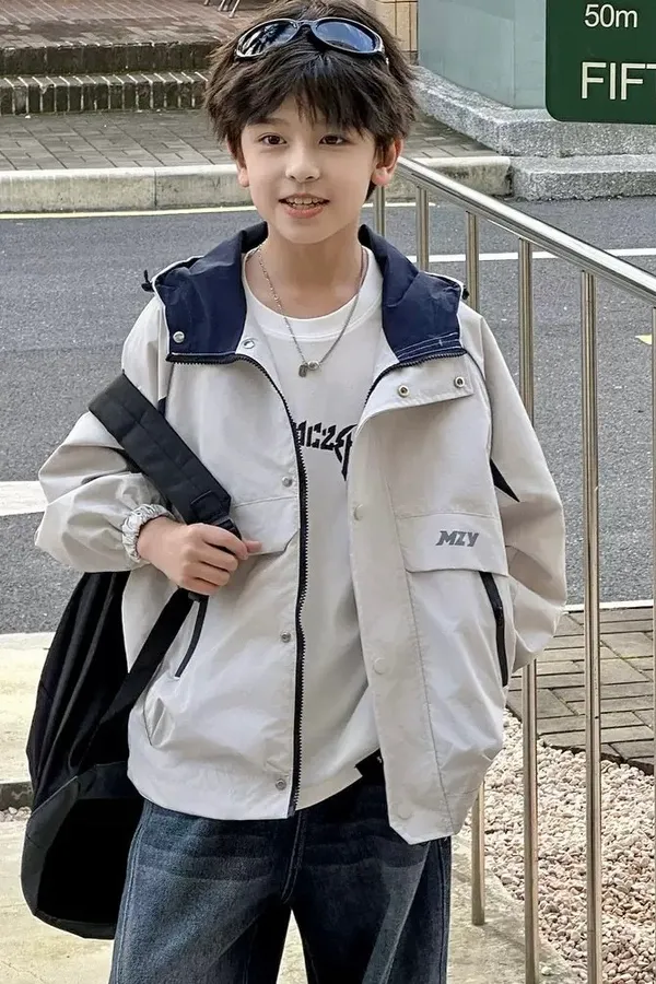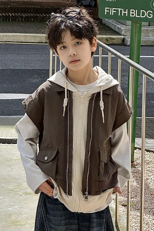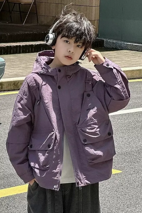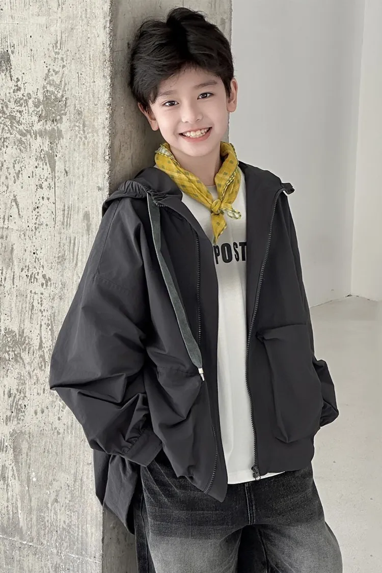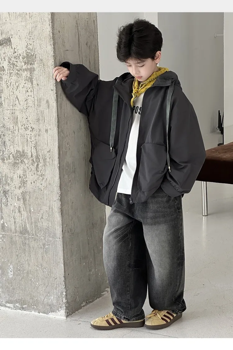 大口袋連帽寬鬆風衣外套