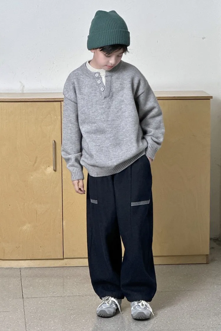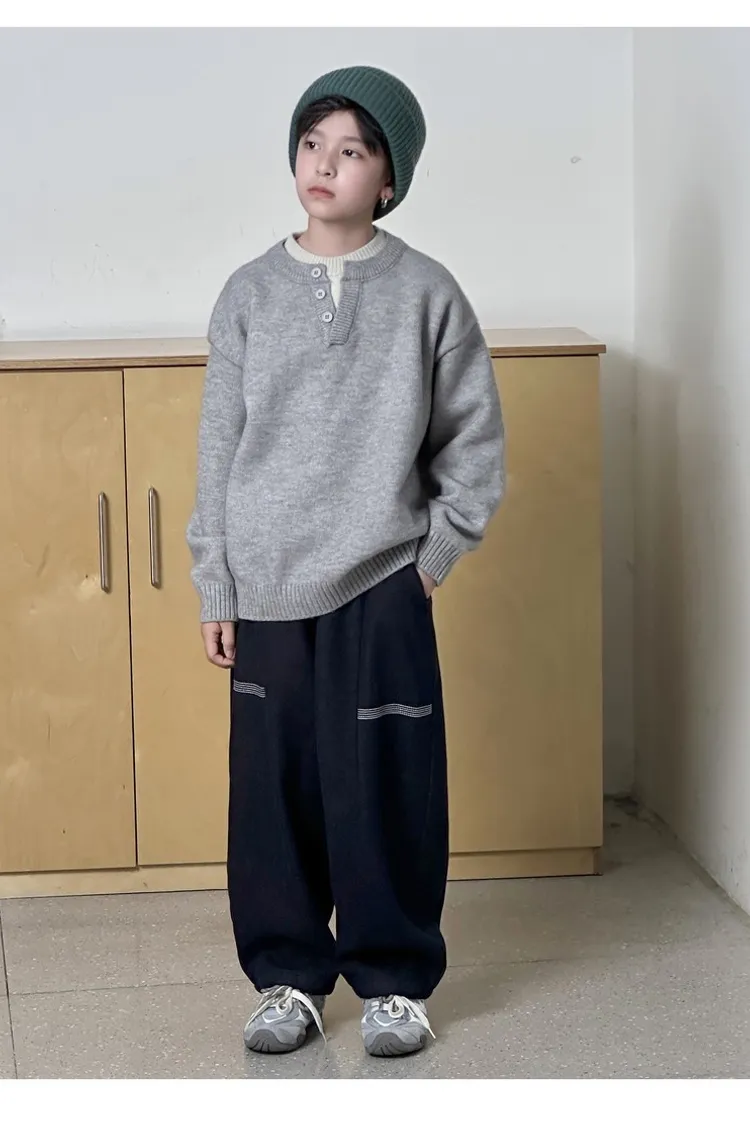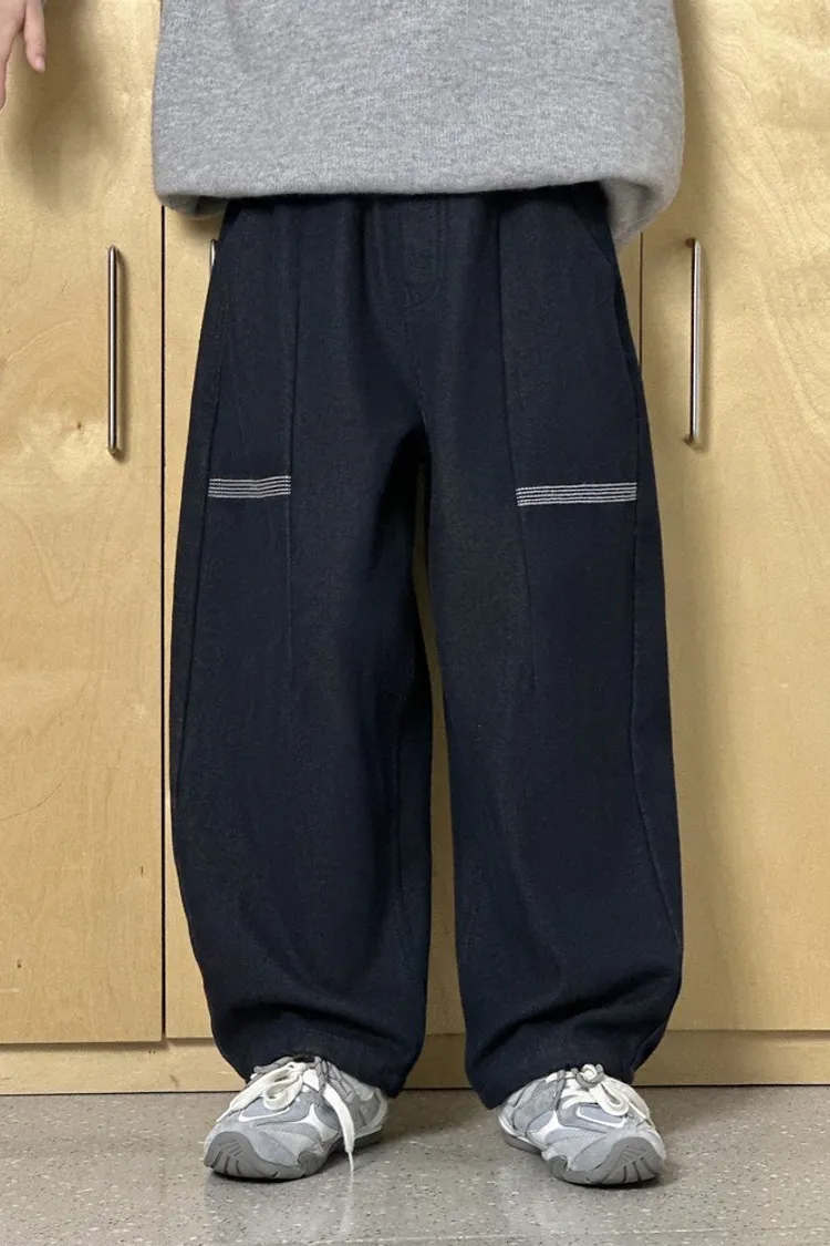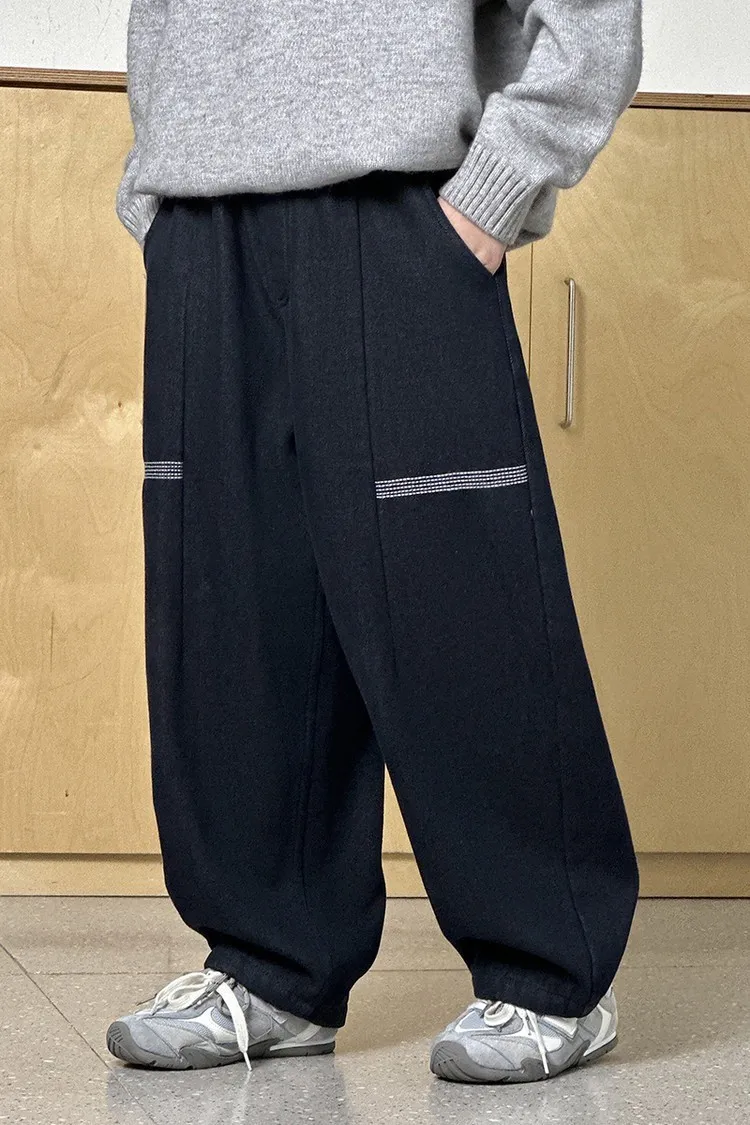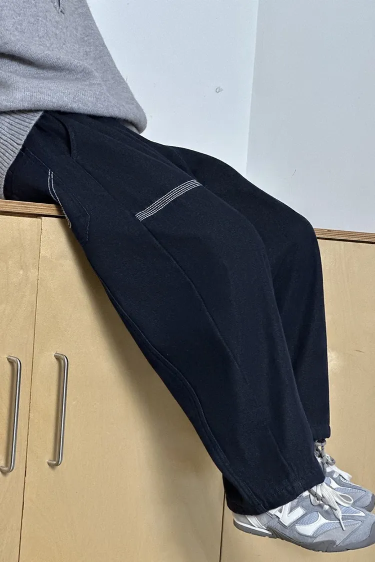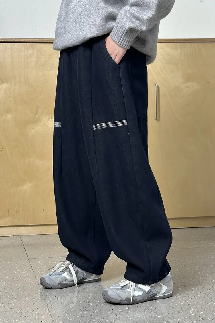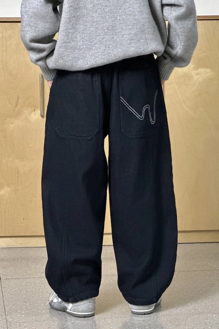 簡約條紋加絨彎刀牛仔褲