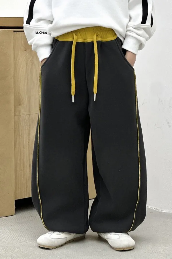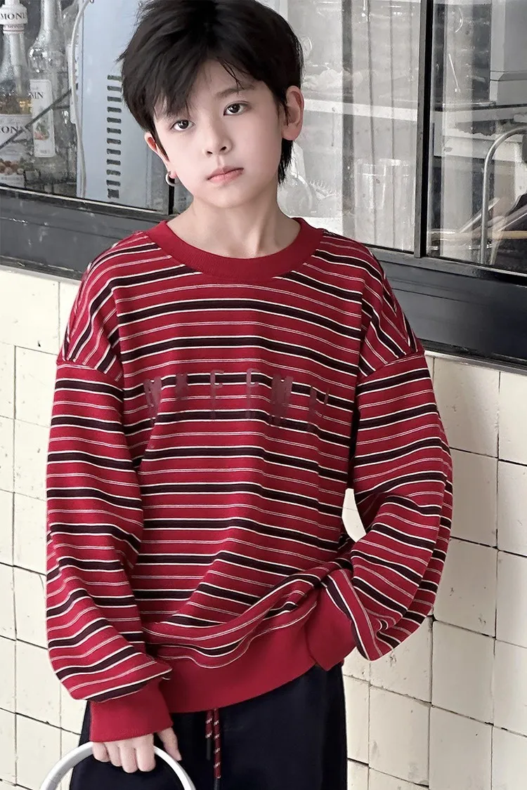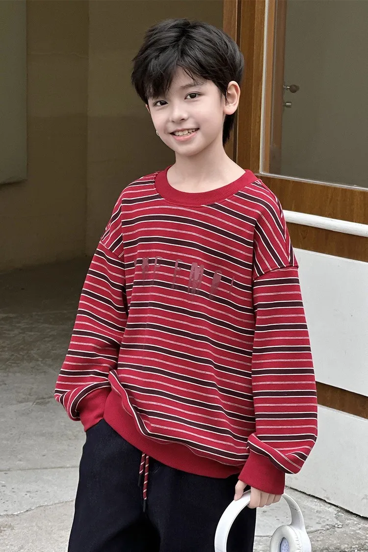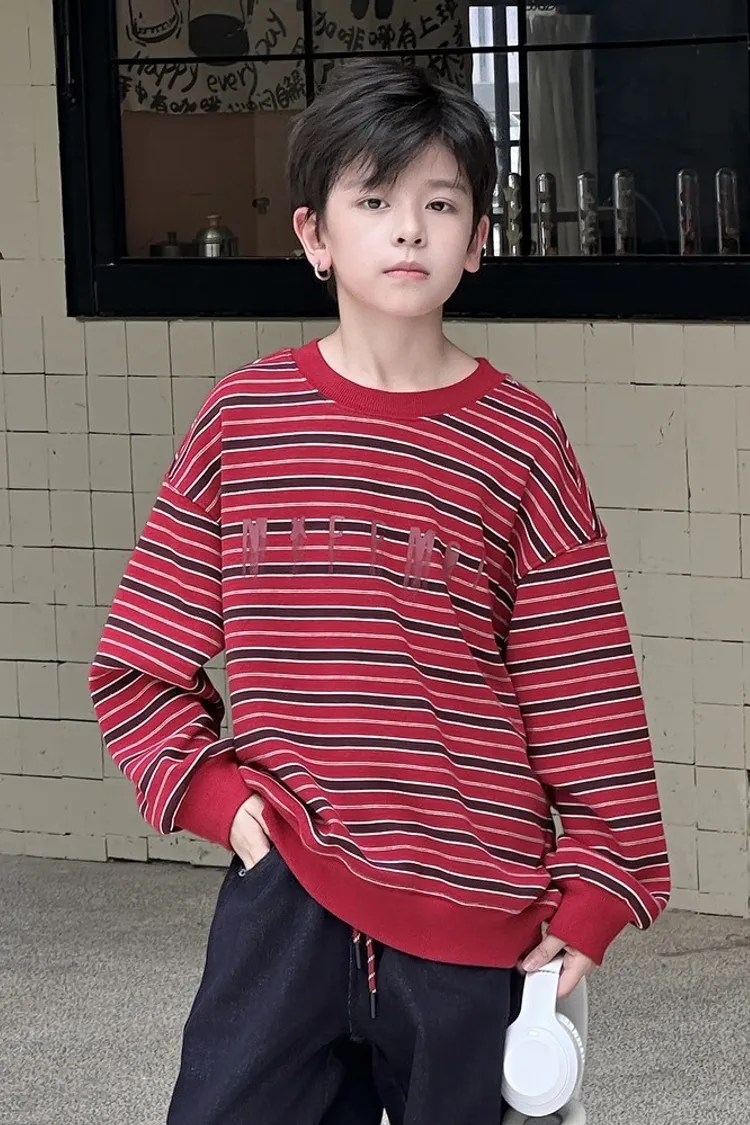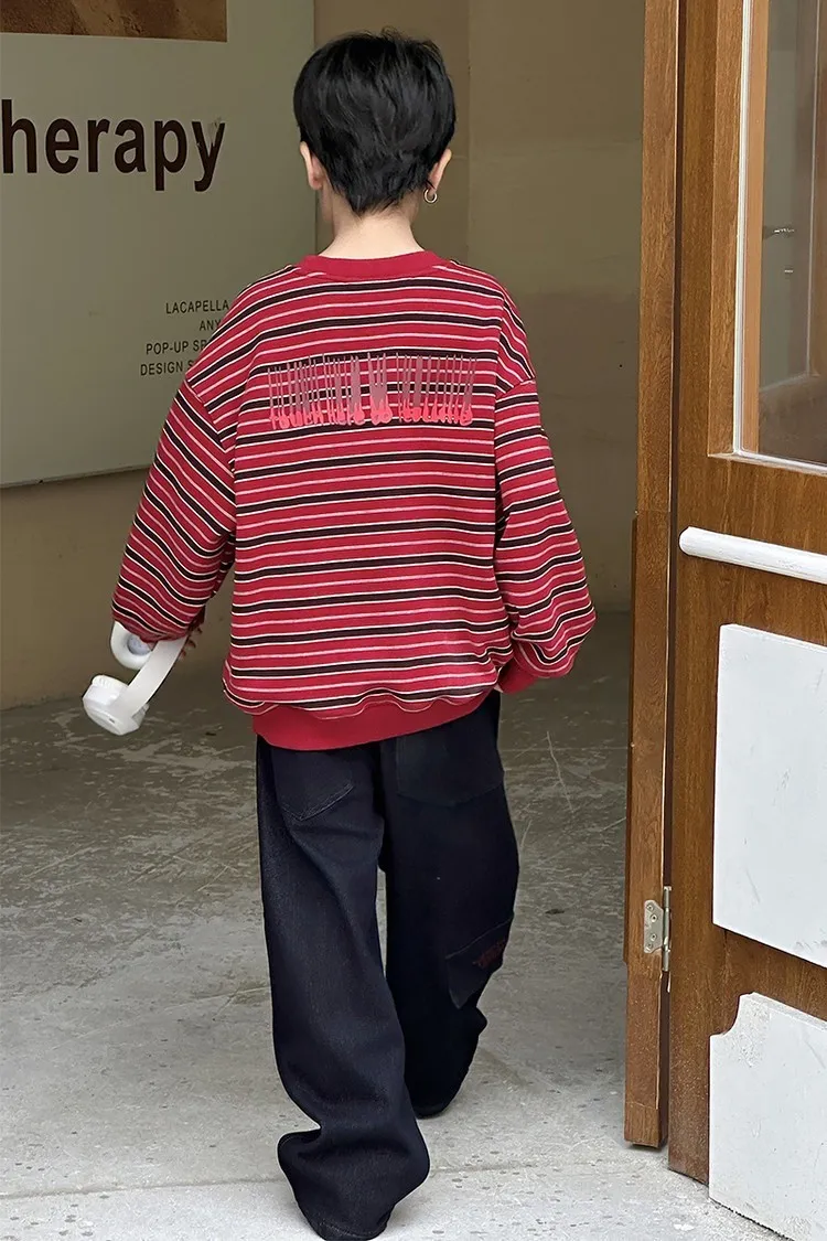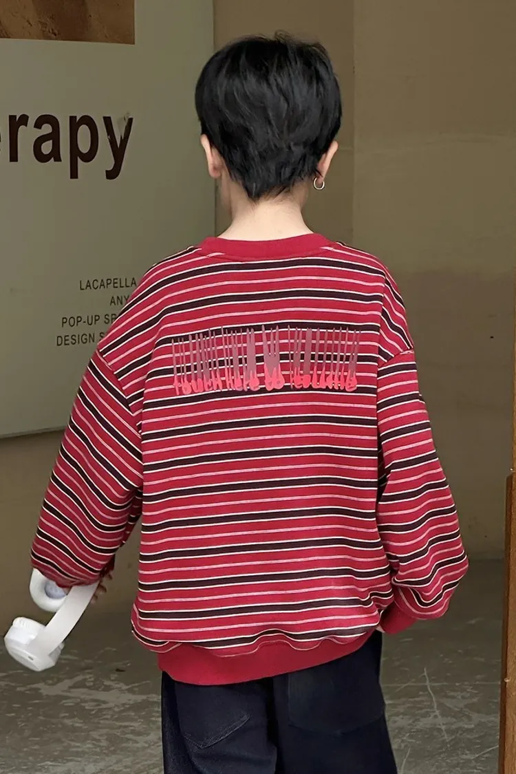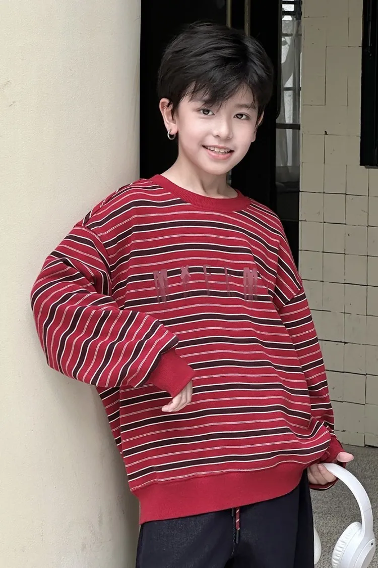 撞色細條紋加絨大學TEE