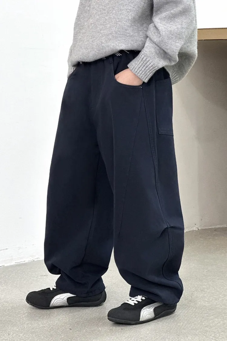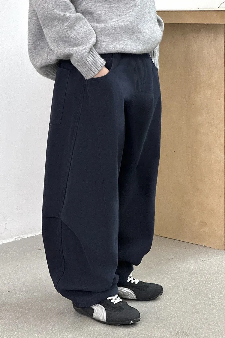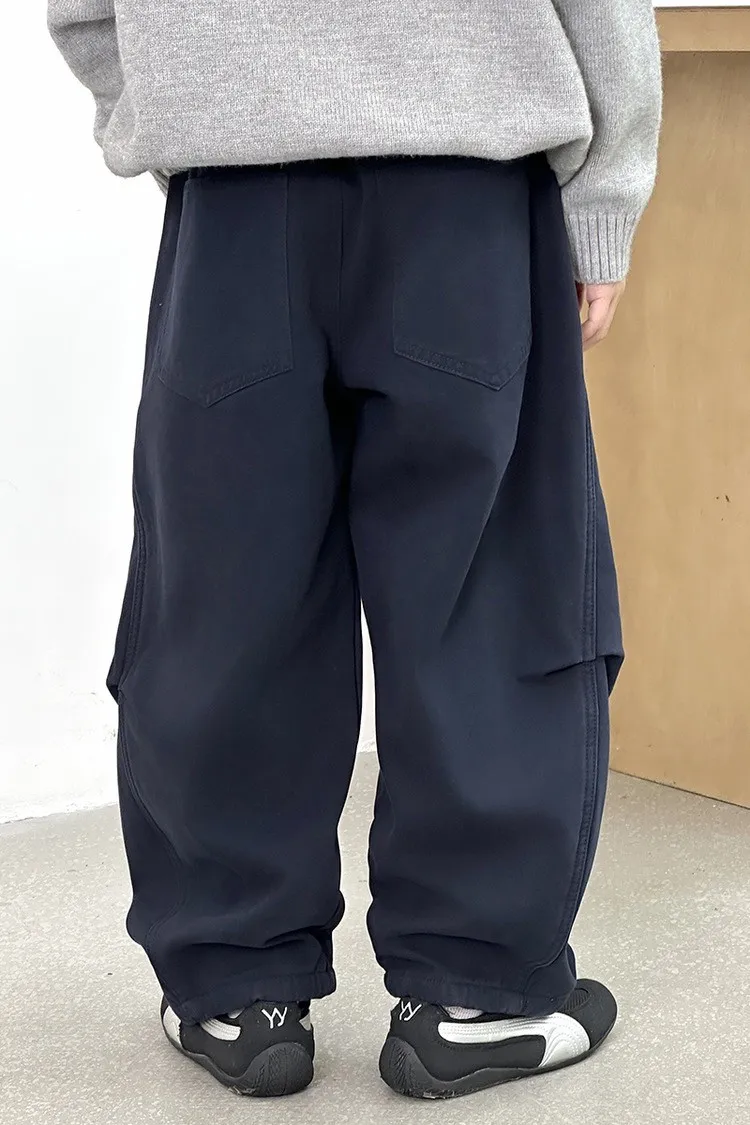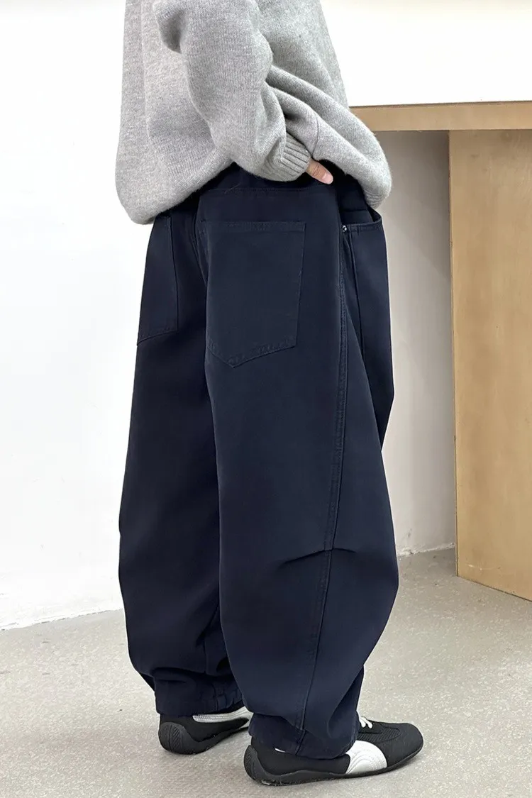 潮感皺褶加絨彎刀休閒褲