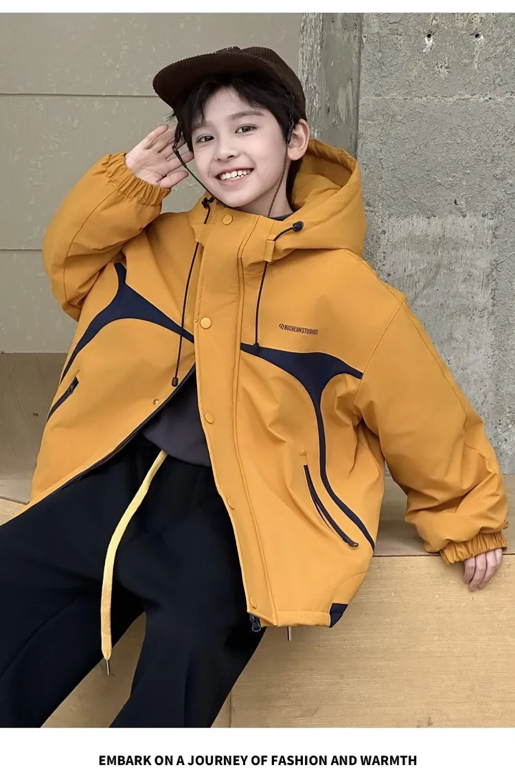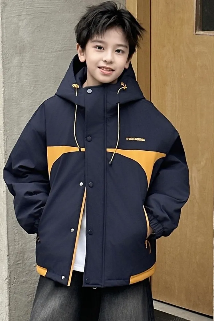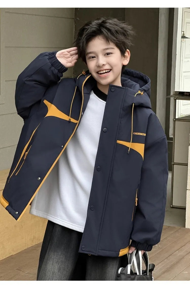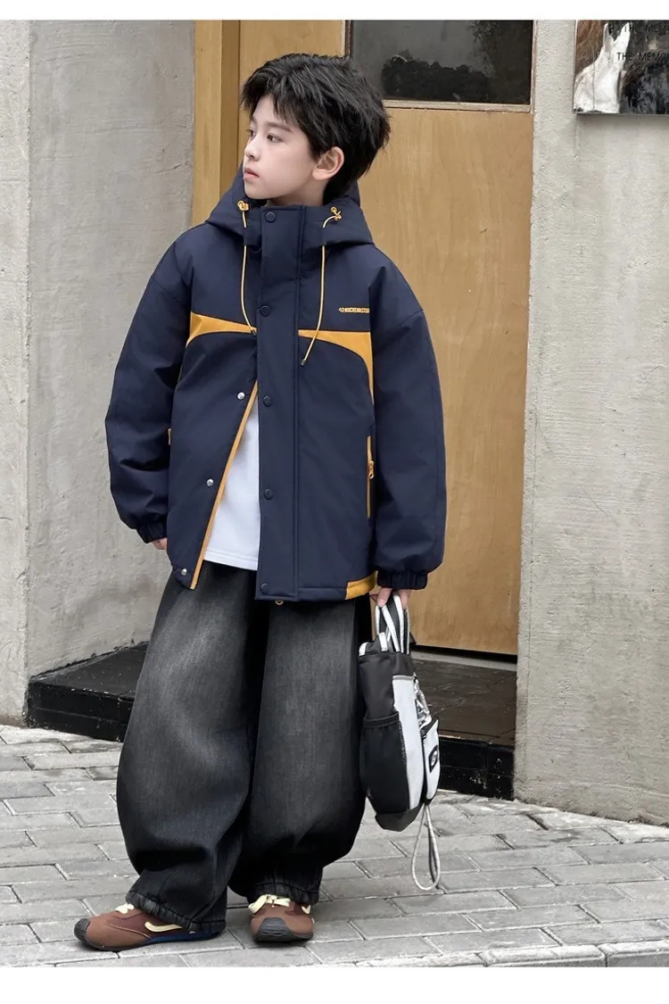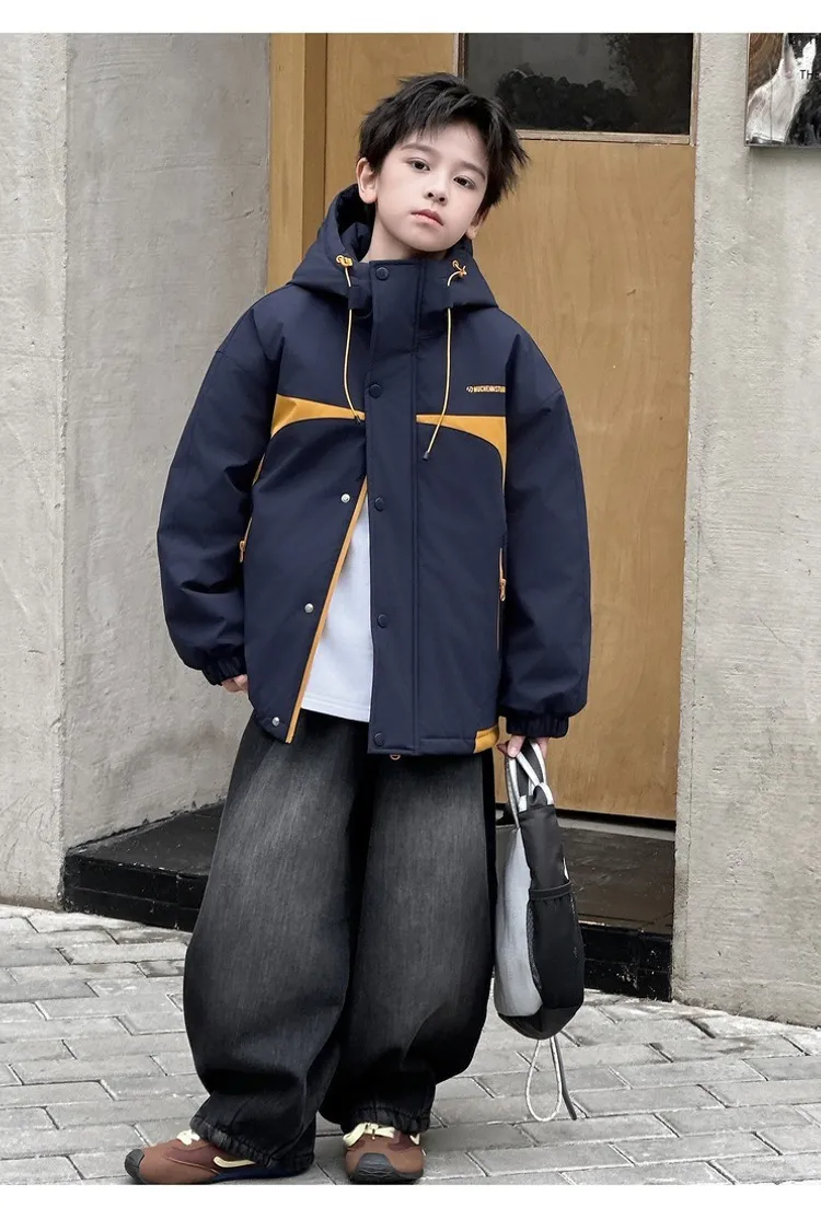 潮酷拼色夾棉加厚衝鋒外套