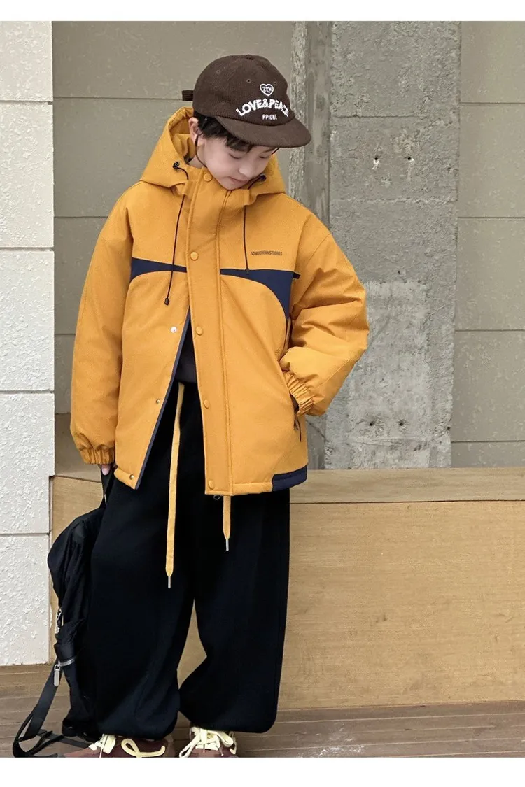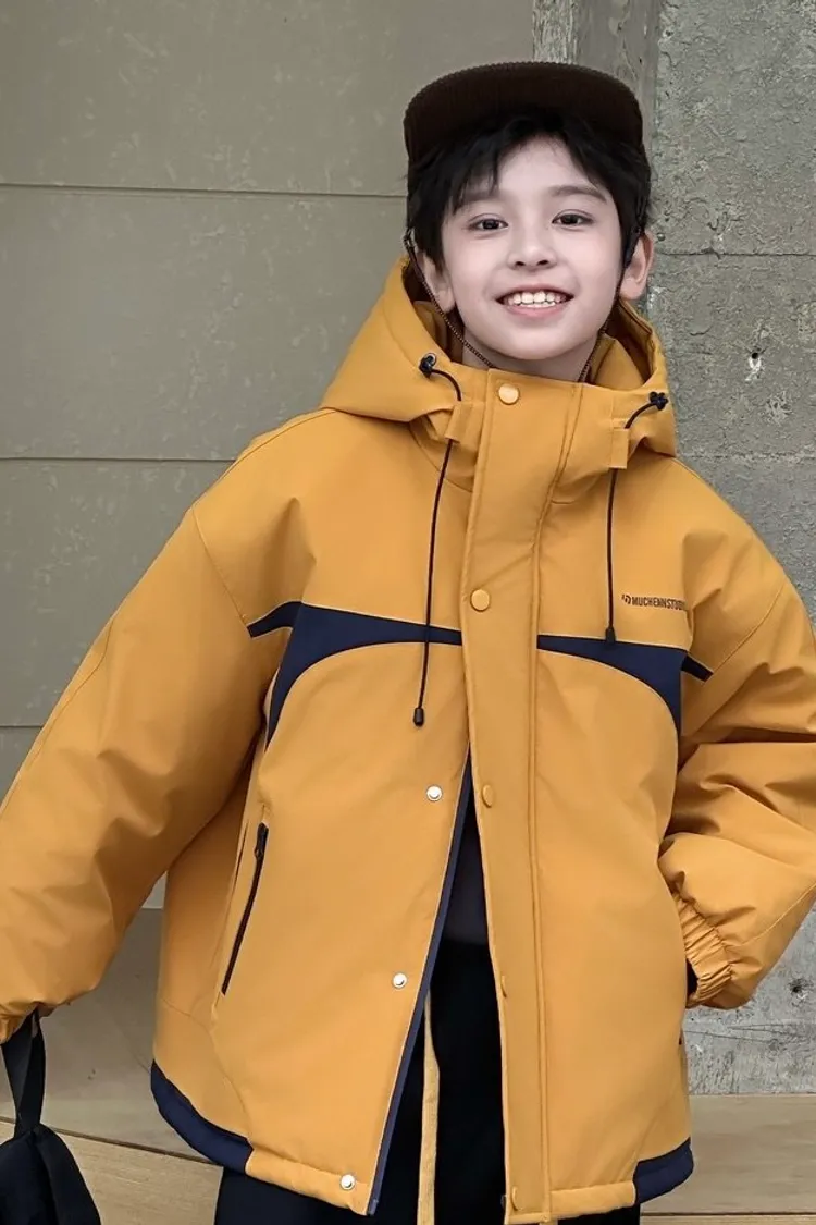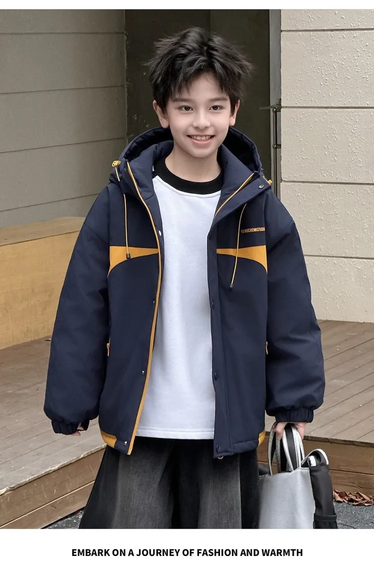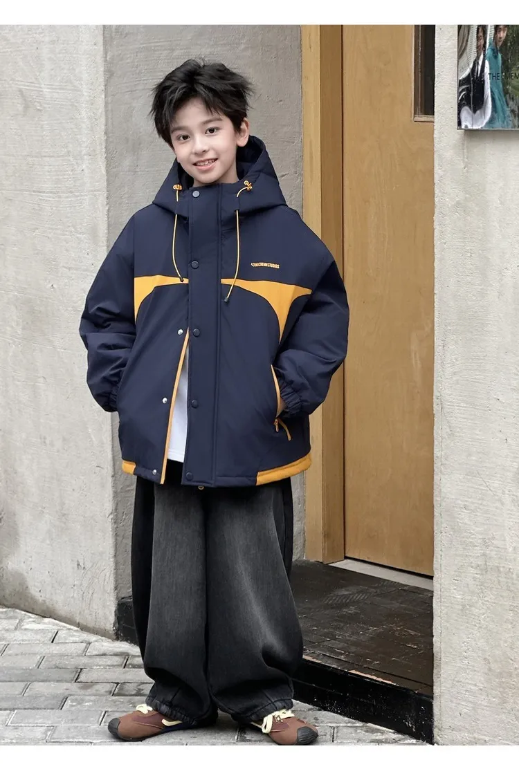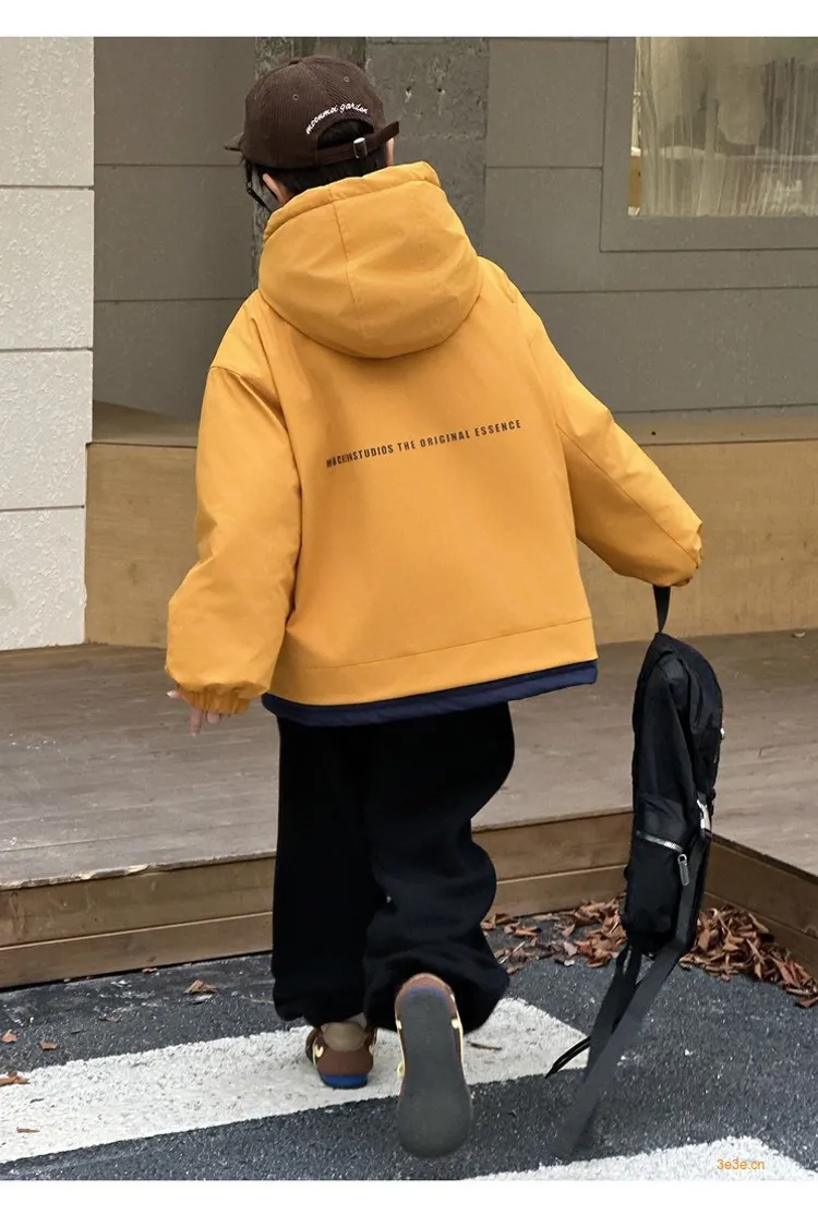 潮酷拼色夾棉加厚衝鋒外套